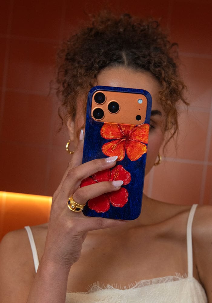 Hibiscus Deep Blue by BG. Studio pairs perfect with the new bright orange iPhone.
