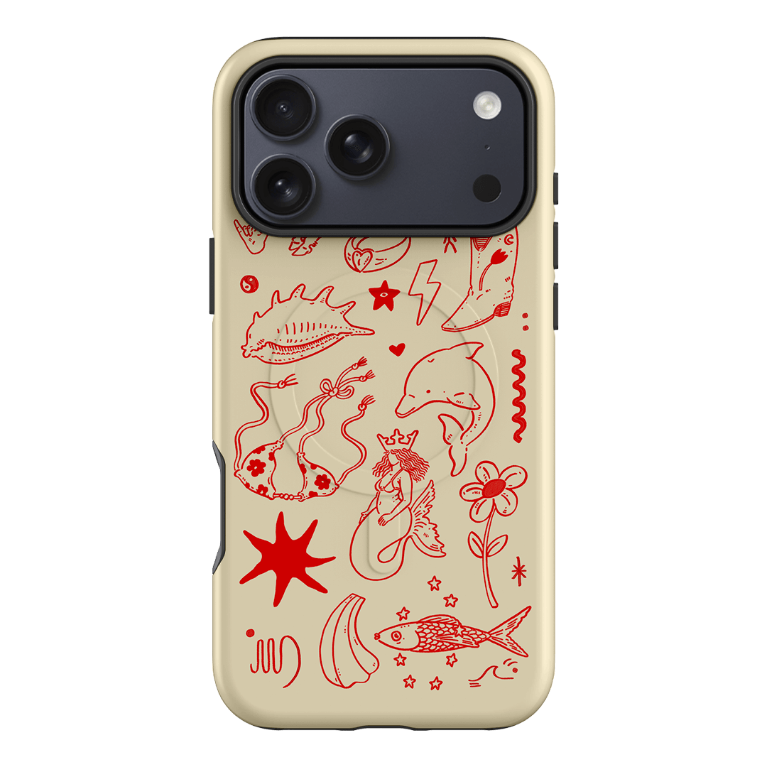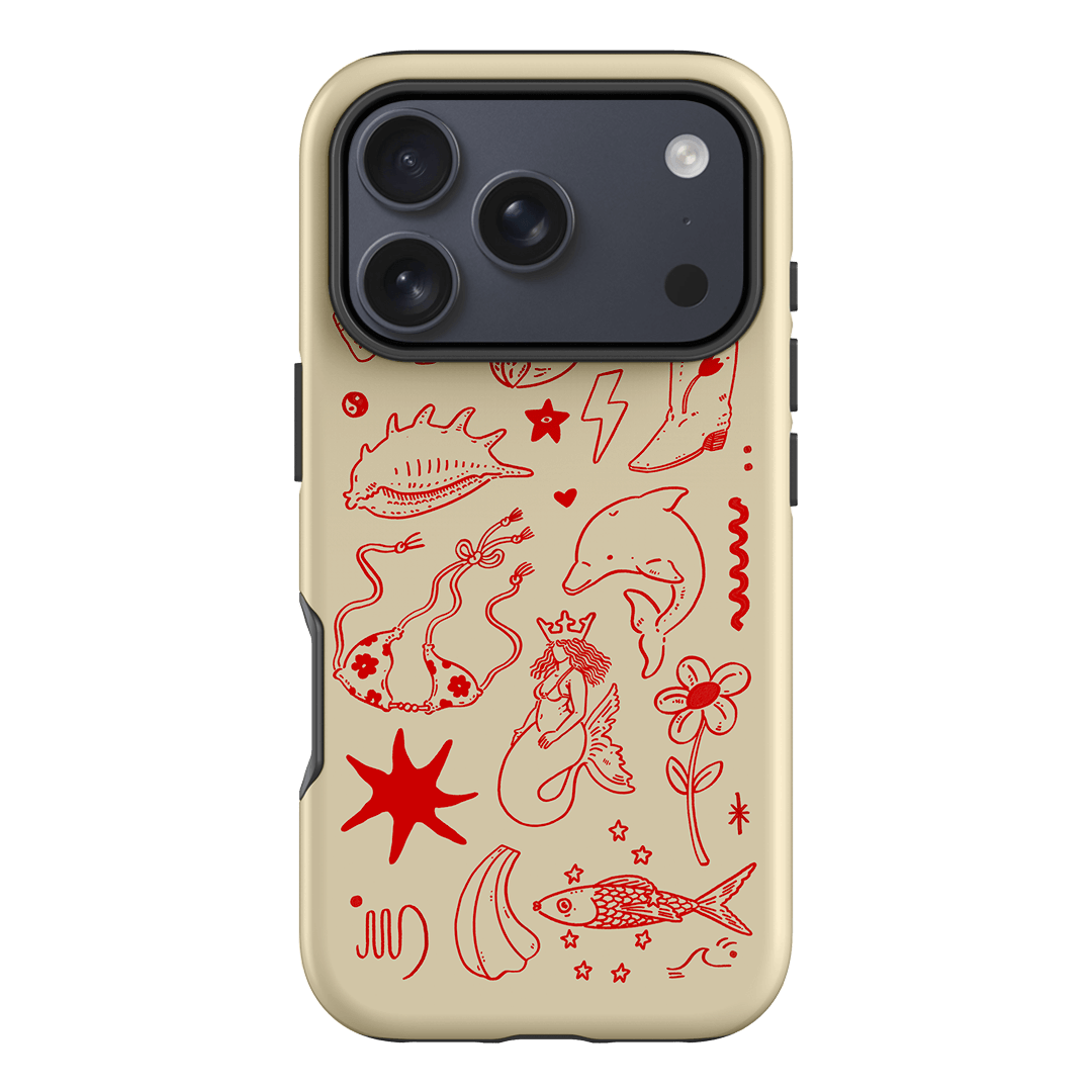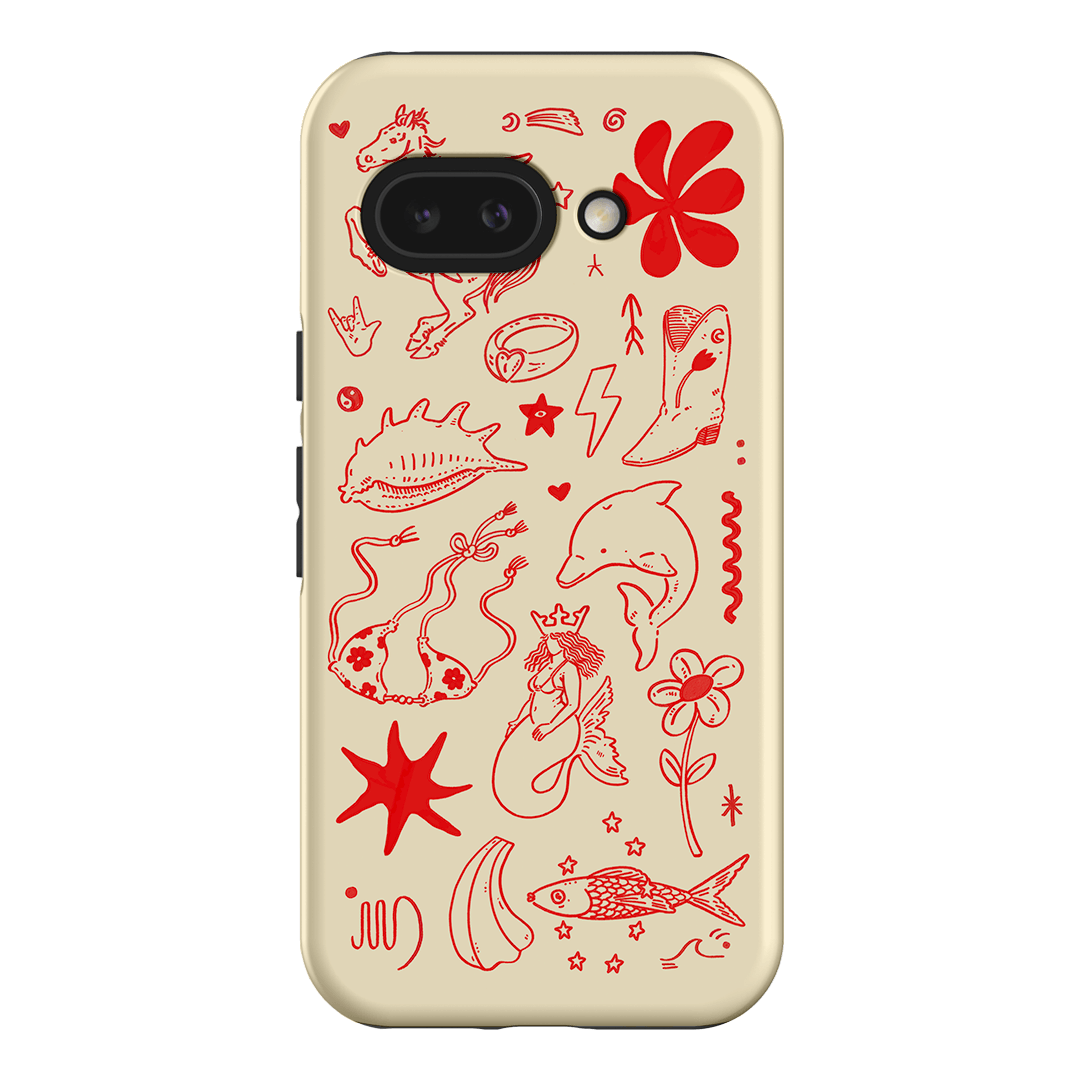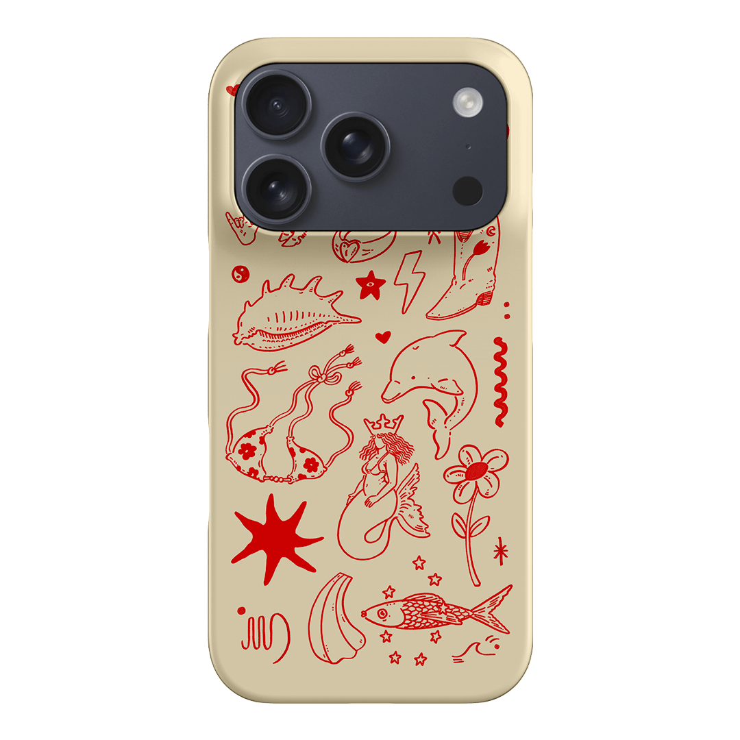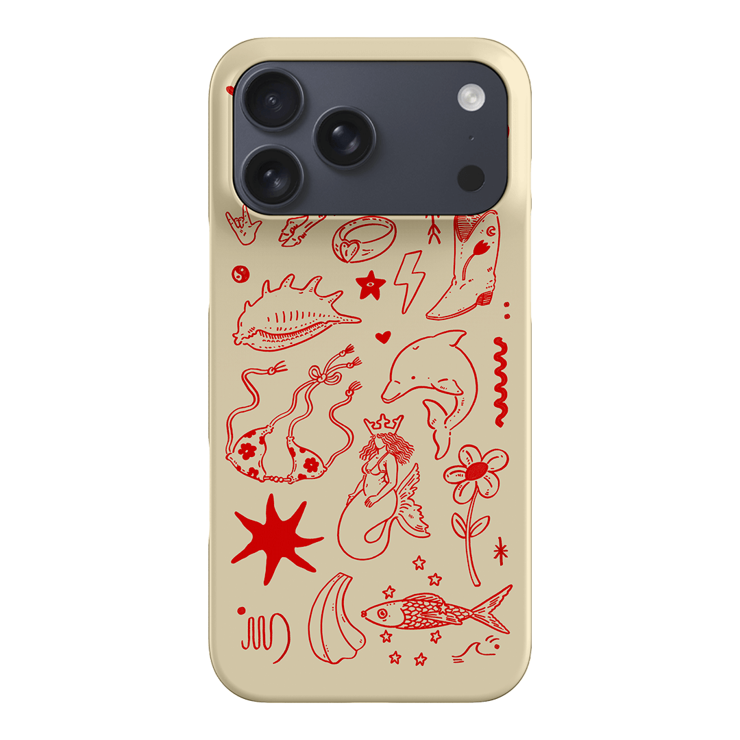 Looking for a pop of red? This phone case is perfect for you! Featuring everything you’d be served in a mixed nuts bowl at your favourite local dive. Including a lucky signet ring, a cheeky dolphin, a mermaid queen and more.