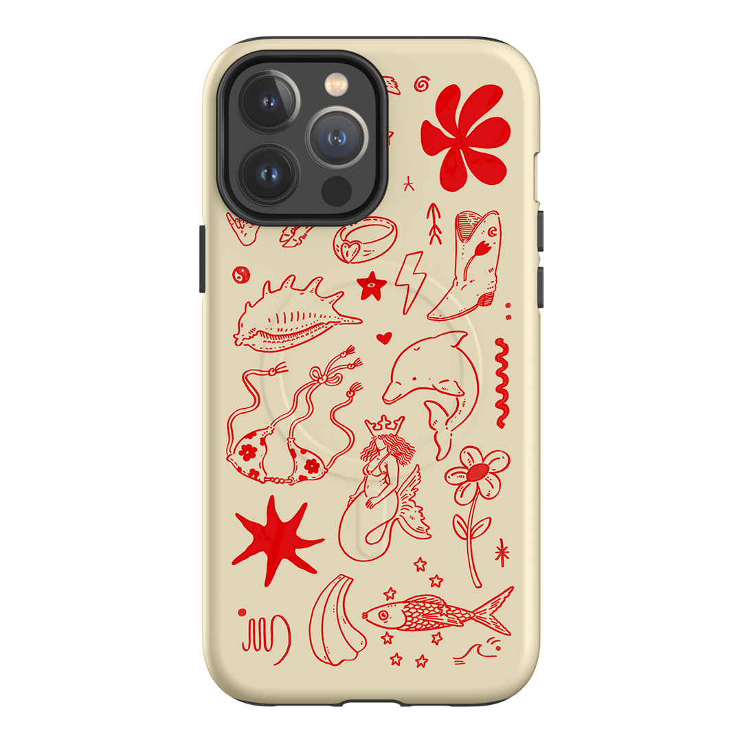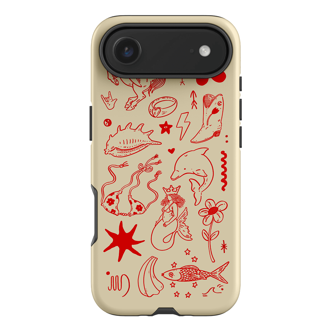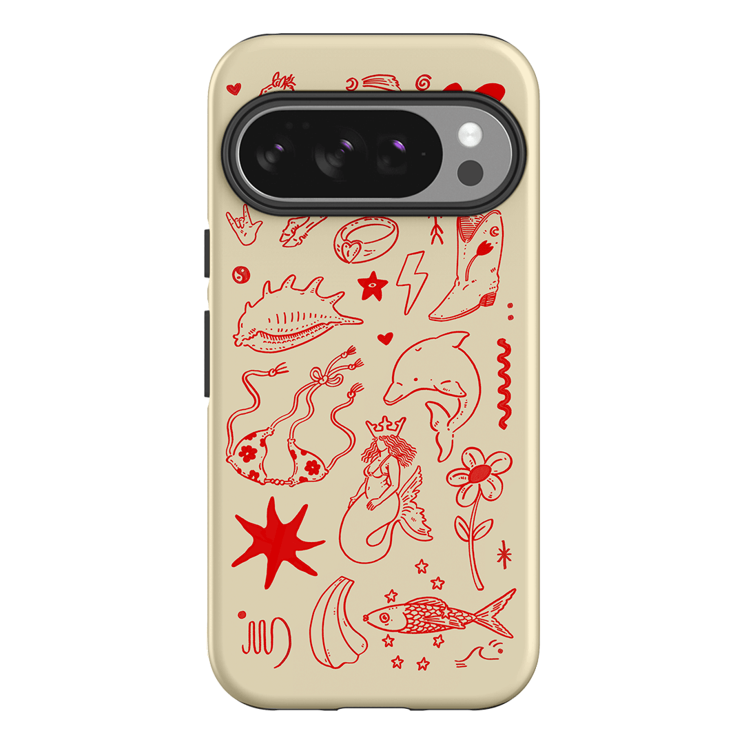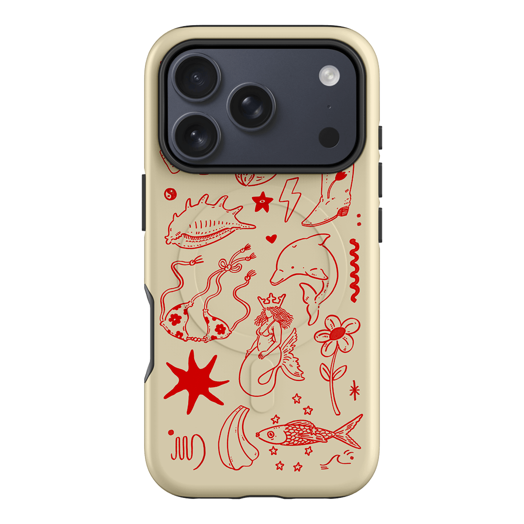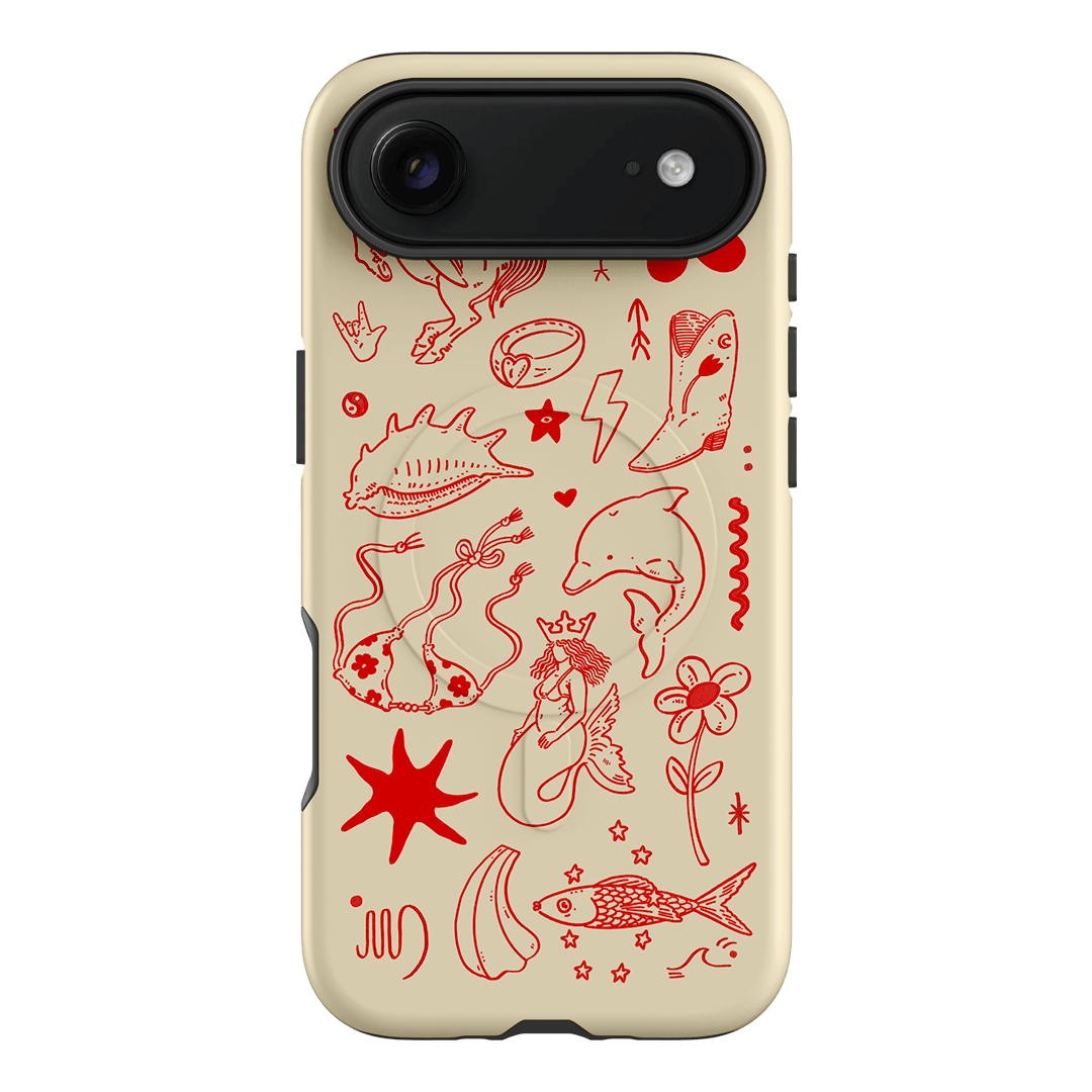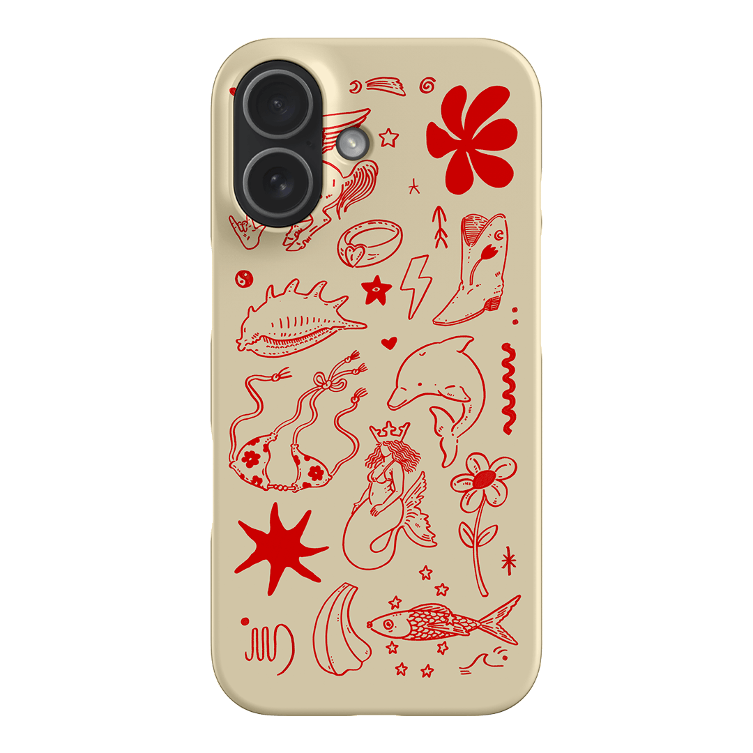 Looking for a pop of red? This phone case is perfect for you! Featuring everything you’d be served in a mixed nuts bowl at your favourite local dive. Including a lucky signet ring, a cheeky dolphin, a mermaid queen and more.