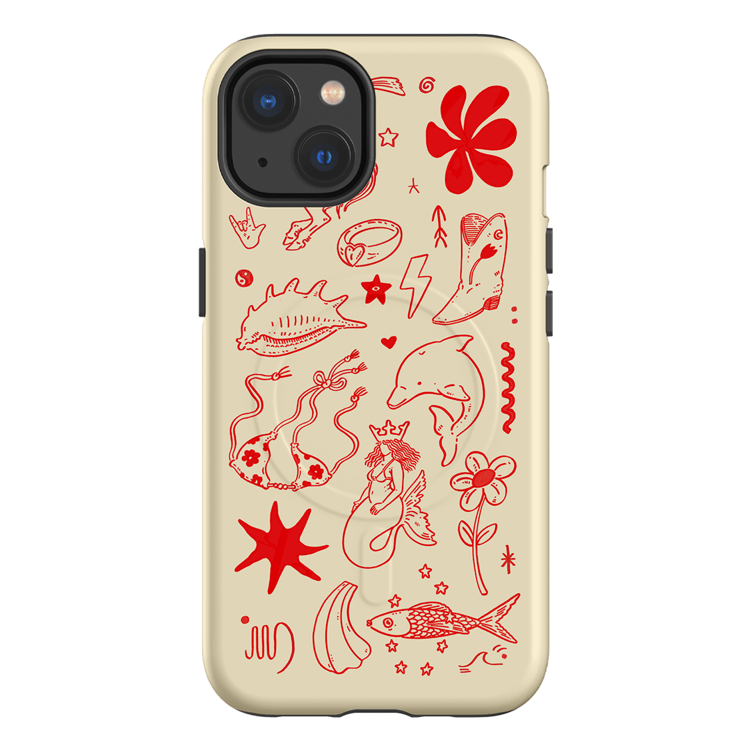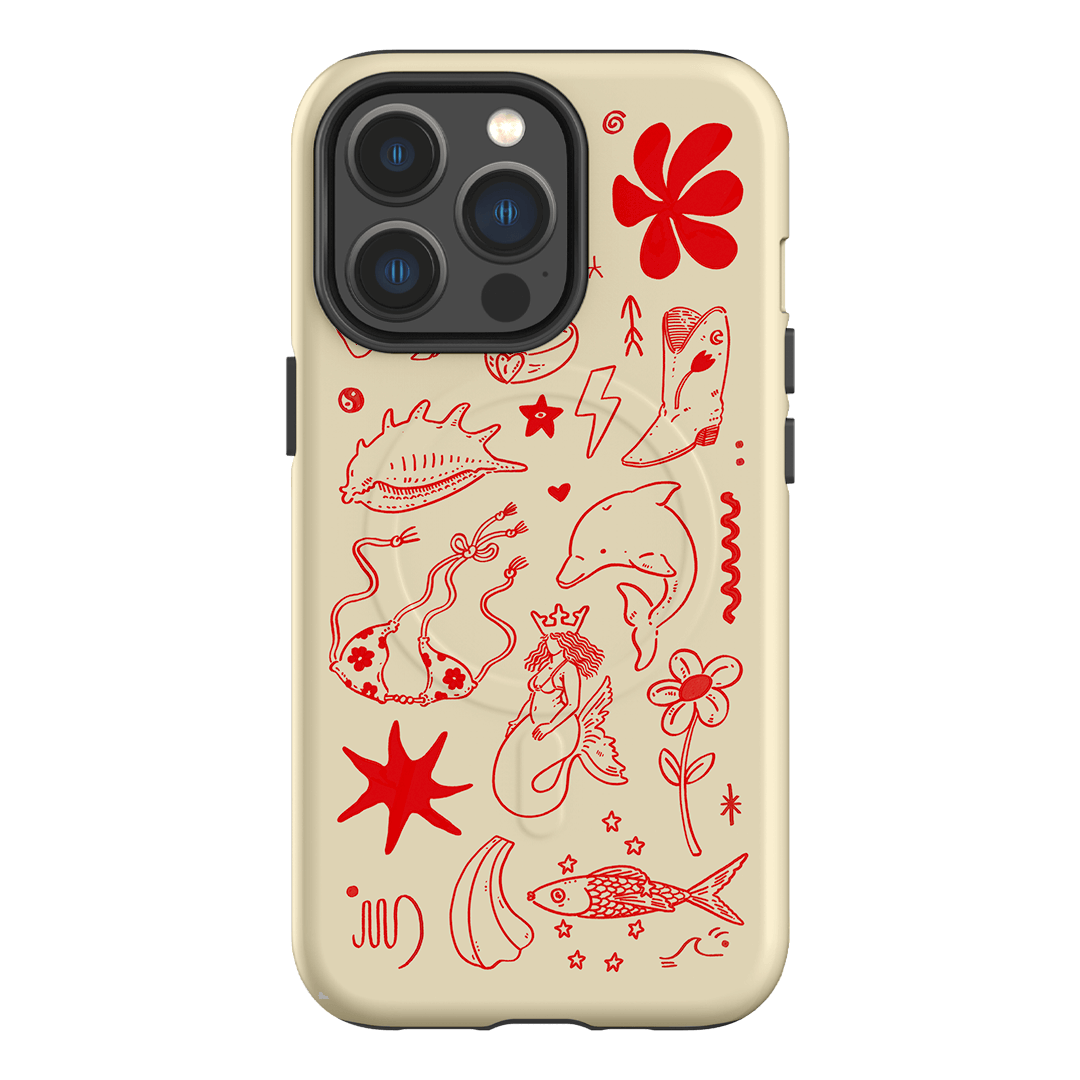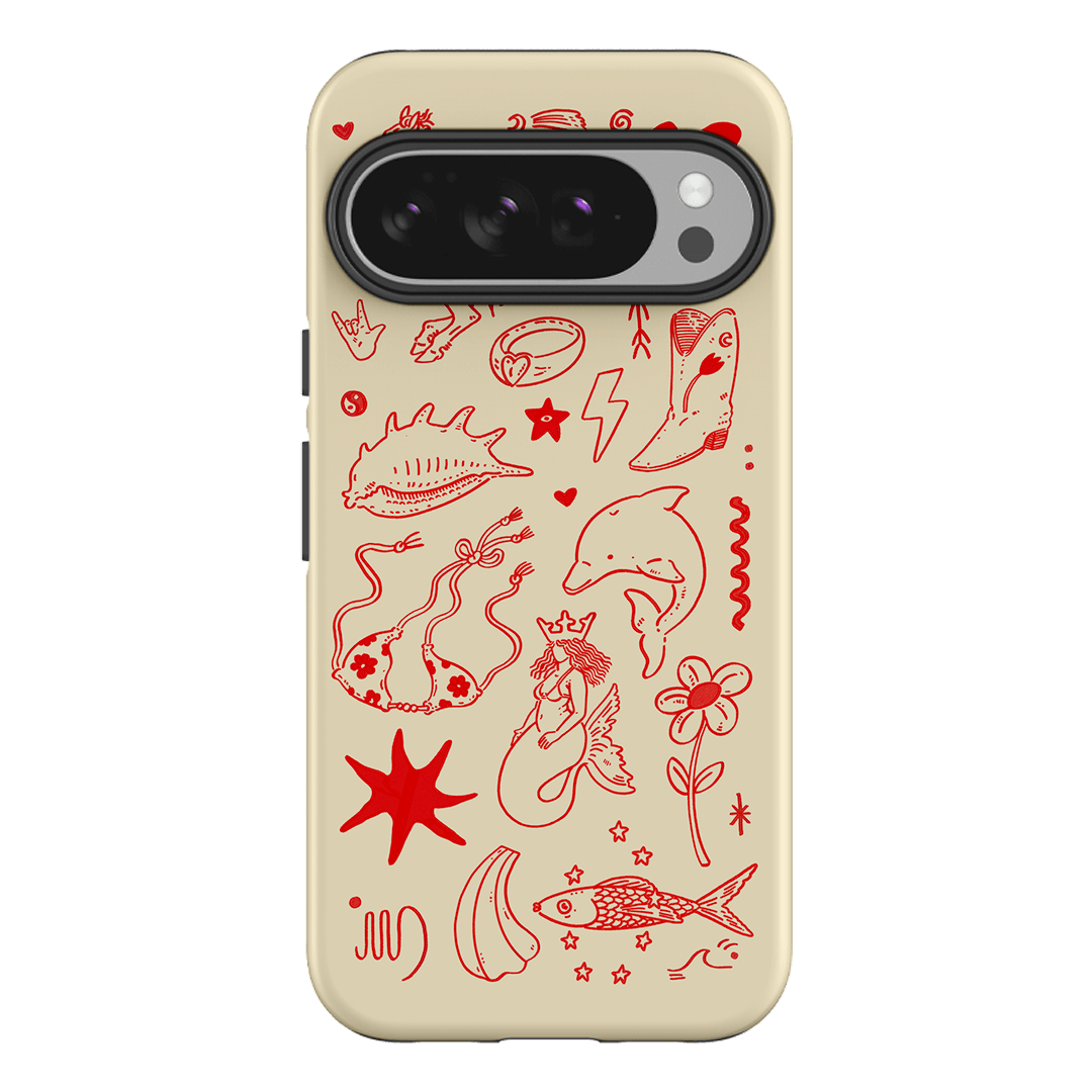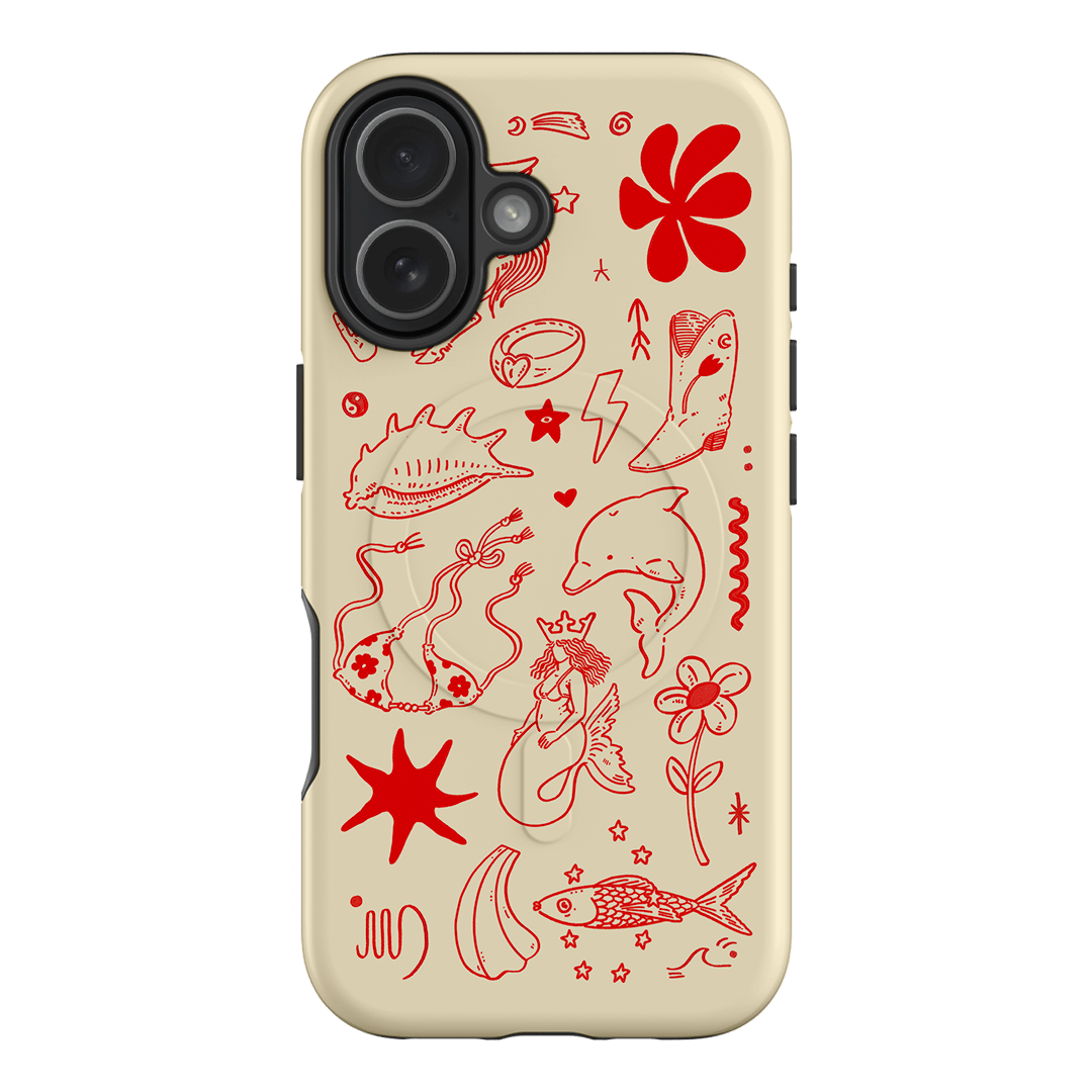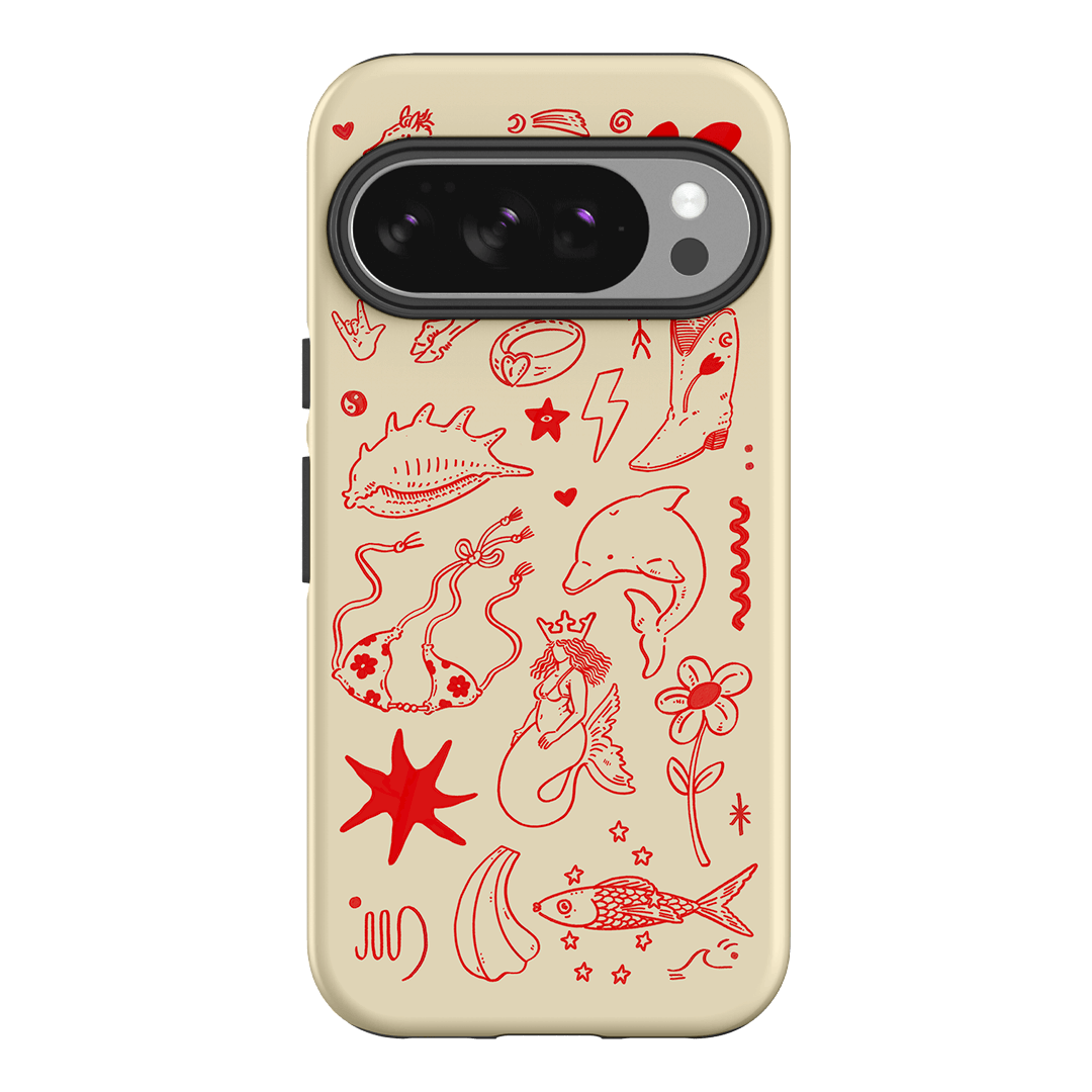 Looking for a pop of red? This phone case is perfect for you! Featuring everything you’d be served in a mixed nuts bowl at your favourite local dive. Including a lucky signet ring, a cheeky dolphin, a mermaid queen and more.
