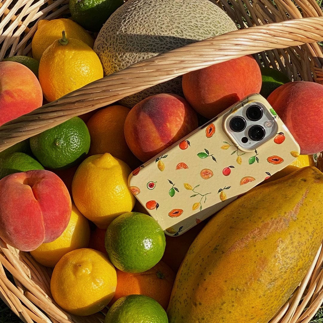 Golden Fruits is a bright, fun fruit-inspired phone case. This case's artwork was influenced by a day in the European sun, strolling along the old brick lanes and stumbling across a local fruit market for some fresh produce like lemons, limes, and summer fruits.