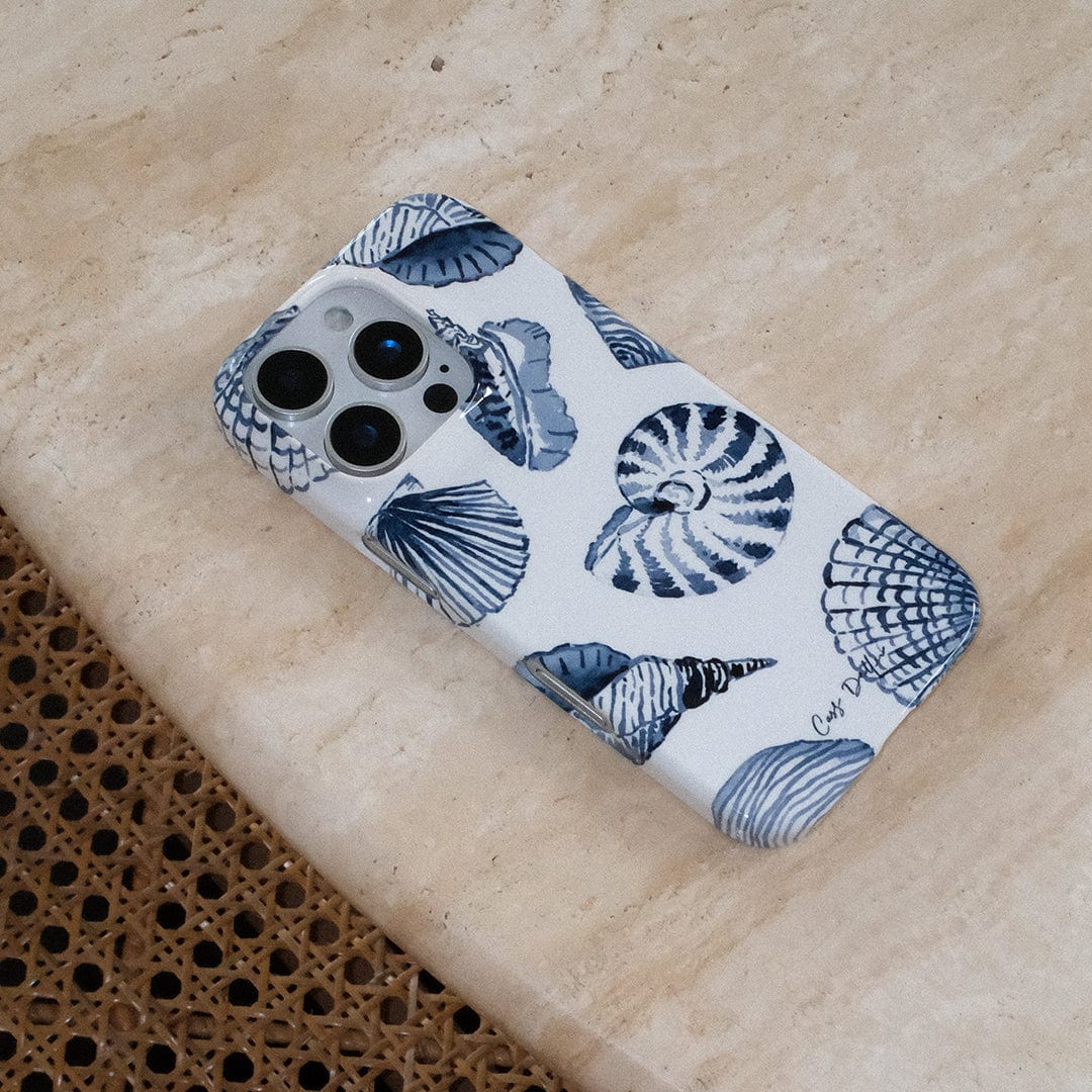 She sells sea shells by the sea shore... blue ones. This beautiful illustrated phone case by Cass Deller has a standout blue sea shell design that brings summer to your phone all year round. Shop this cute and stylish phone cover for your iPhone, Samsung Galaxy and Google Pixel.