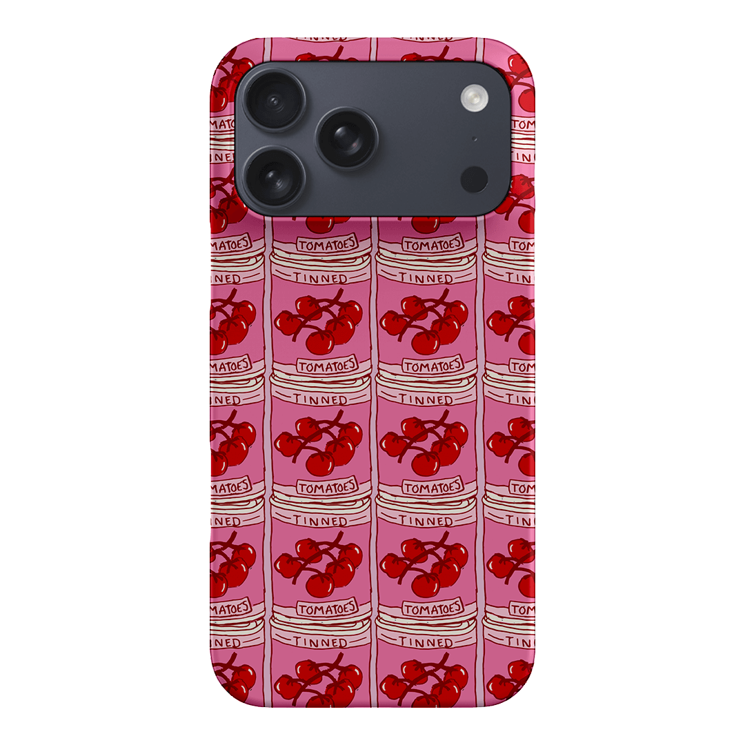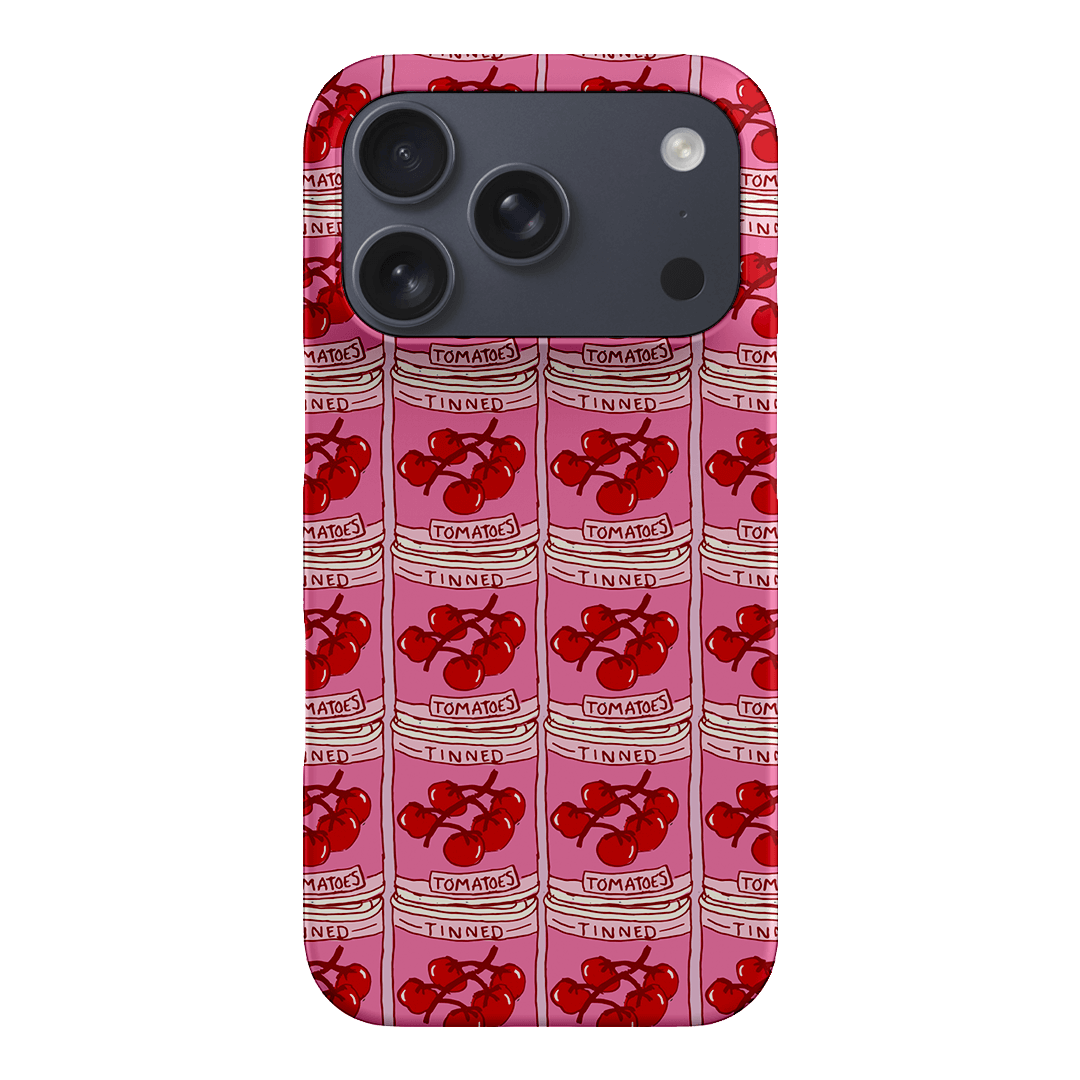 Introducing the Tinned Tomatoes phone case, a playful nod to everyone’s favourite pantry staple. Featuring a fun, step-and-repeat pattern of illustrated tomato cans in vibrant pink and red, this case is perfect for tomato dish lovers and foodies alike. Equal parts cute and quirky, it brings a dash of charm to your tech with retro vibes and delicious flair. Add some flavour to your everyday style.