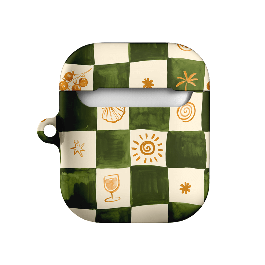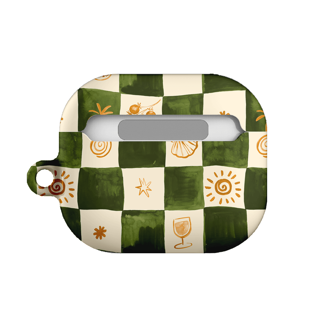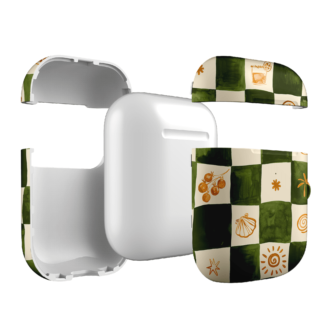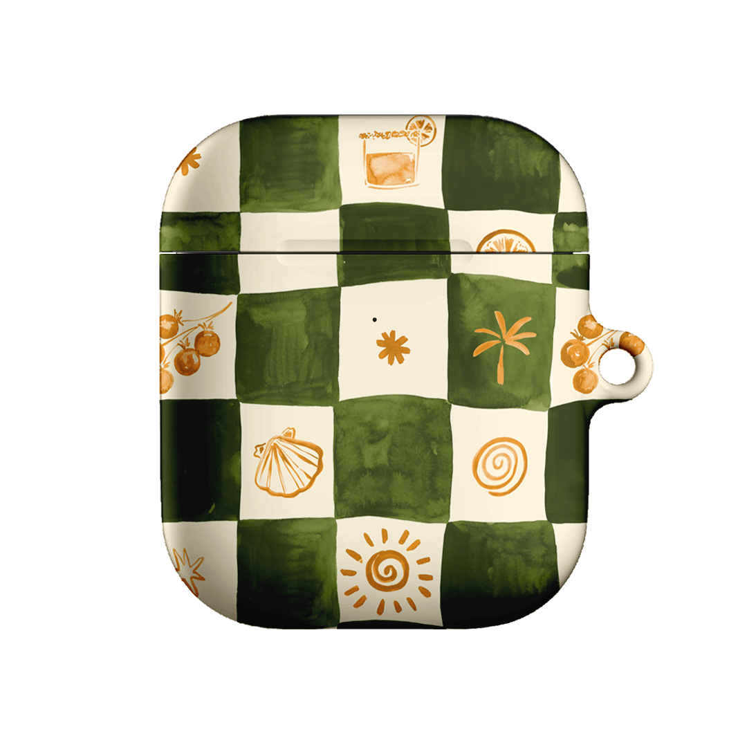 Savour laid-back coastal vibes with the Afternoon Mezze AirPods case from the Life of the Sun collection by Charlie Taylor. Infused with the essence of breezy beachside moments, this design features a soft green and cream checkerboard pattern adorned with delicate seaside-inspired details. It captures a relaxed, nostalgic charm that feels both timeless and playful, perfect for long lunches, sunlit strolls, and summer reverie.