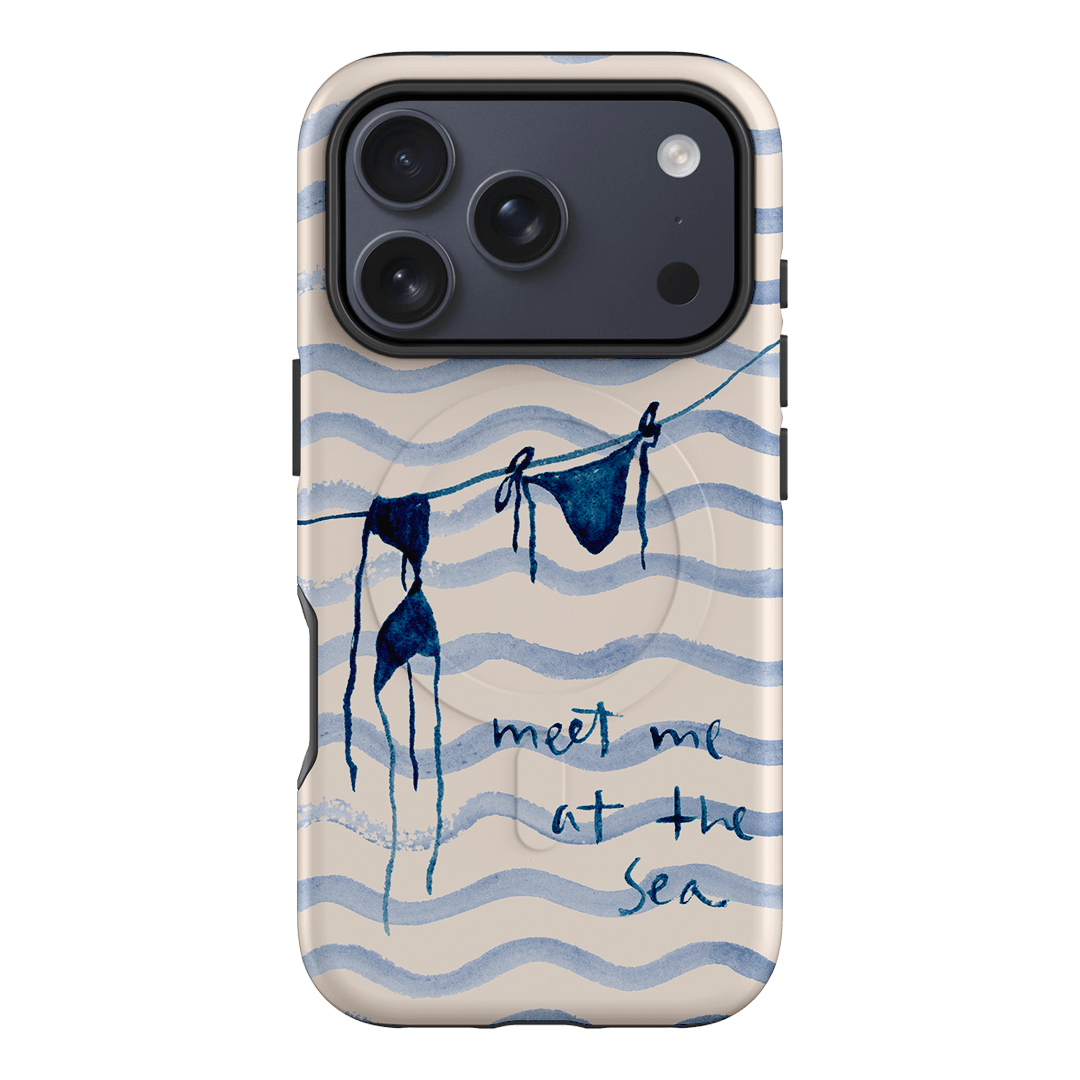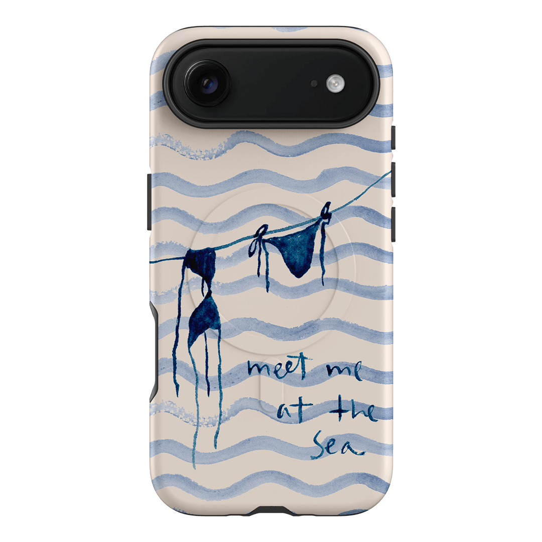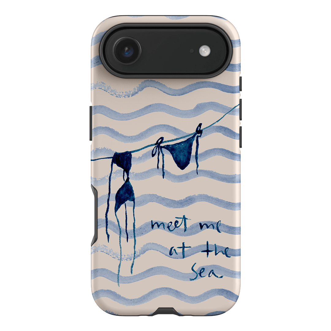 Embrace the carefree vibes of the seaside with the Bikini phone case by artist Cass Deller. This charming design features a watercolour illustration of a blue bikini hanging to dry. The hand-painted phrase “meet me at the sea” completes the design, adding a whimsical invitation to coastal adventures.