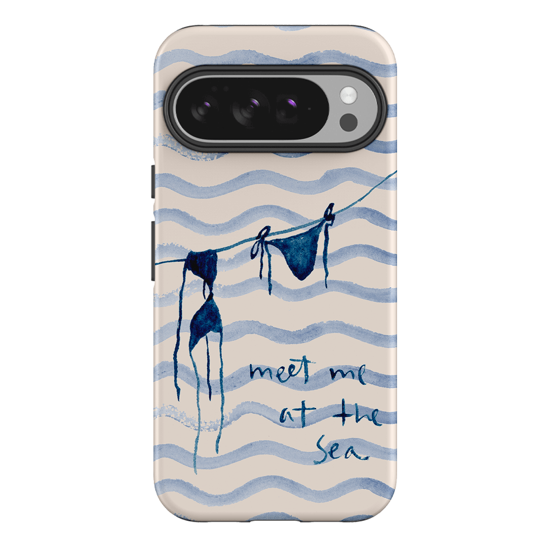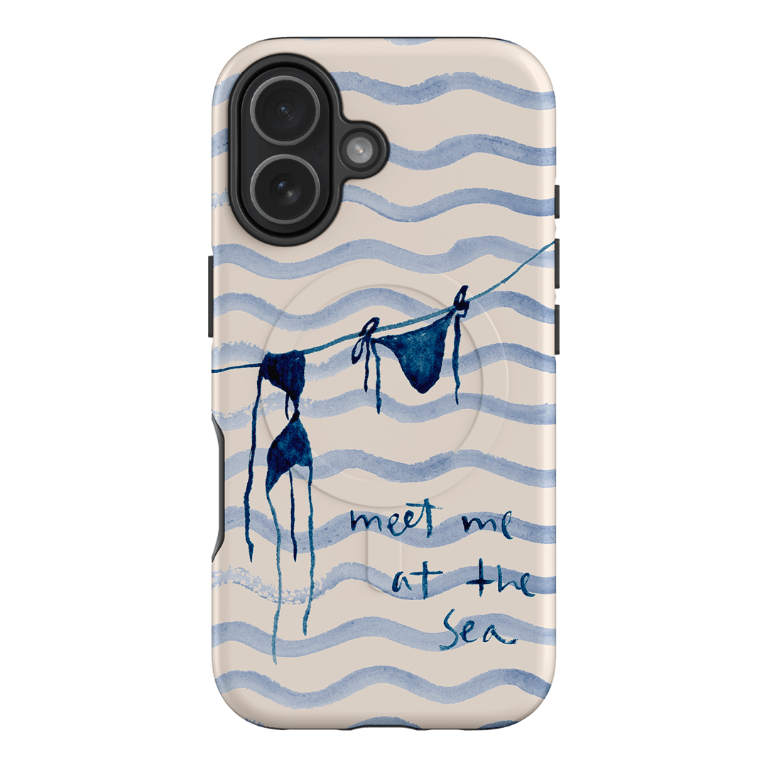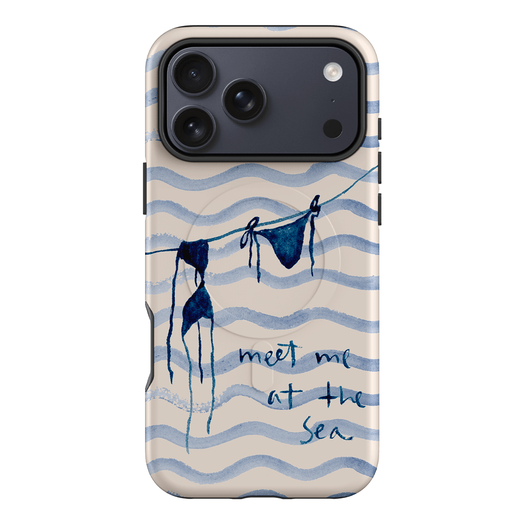 Embrace the carefree vibes of the seaside with the Bikini phone case by artist Cass Deller. This charming design features a watercolour illustration of a blue bikini hanging to dry. The hand-painted phrase “meet me at the sea” completes the design, adding a whimsical invitation to coastal adventures.