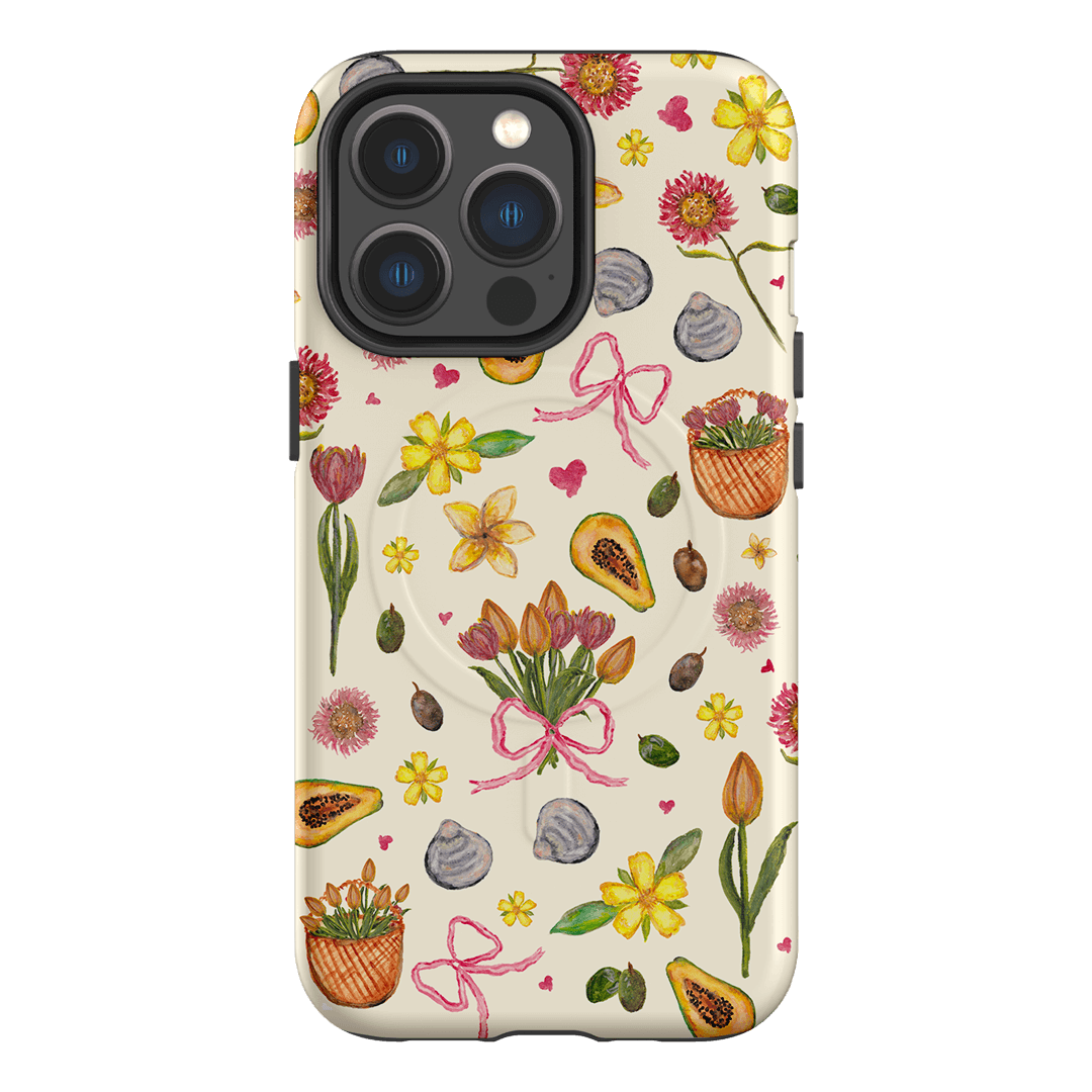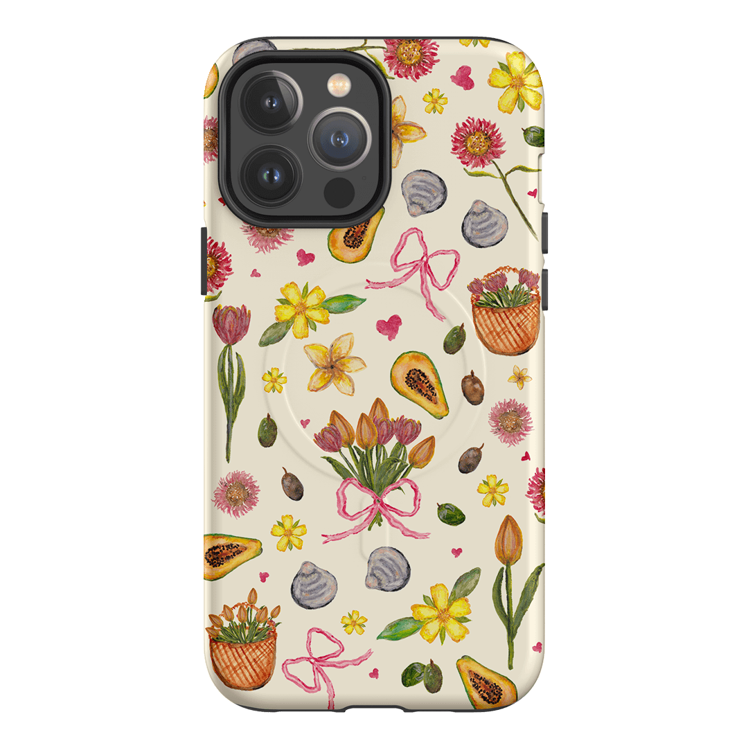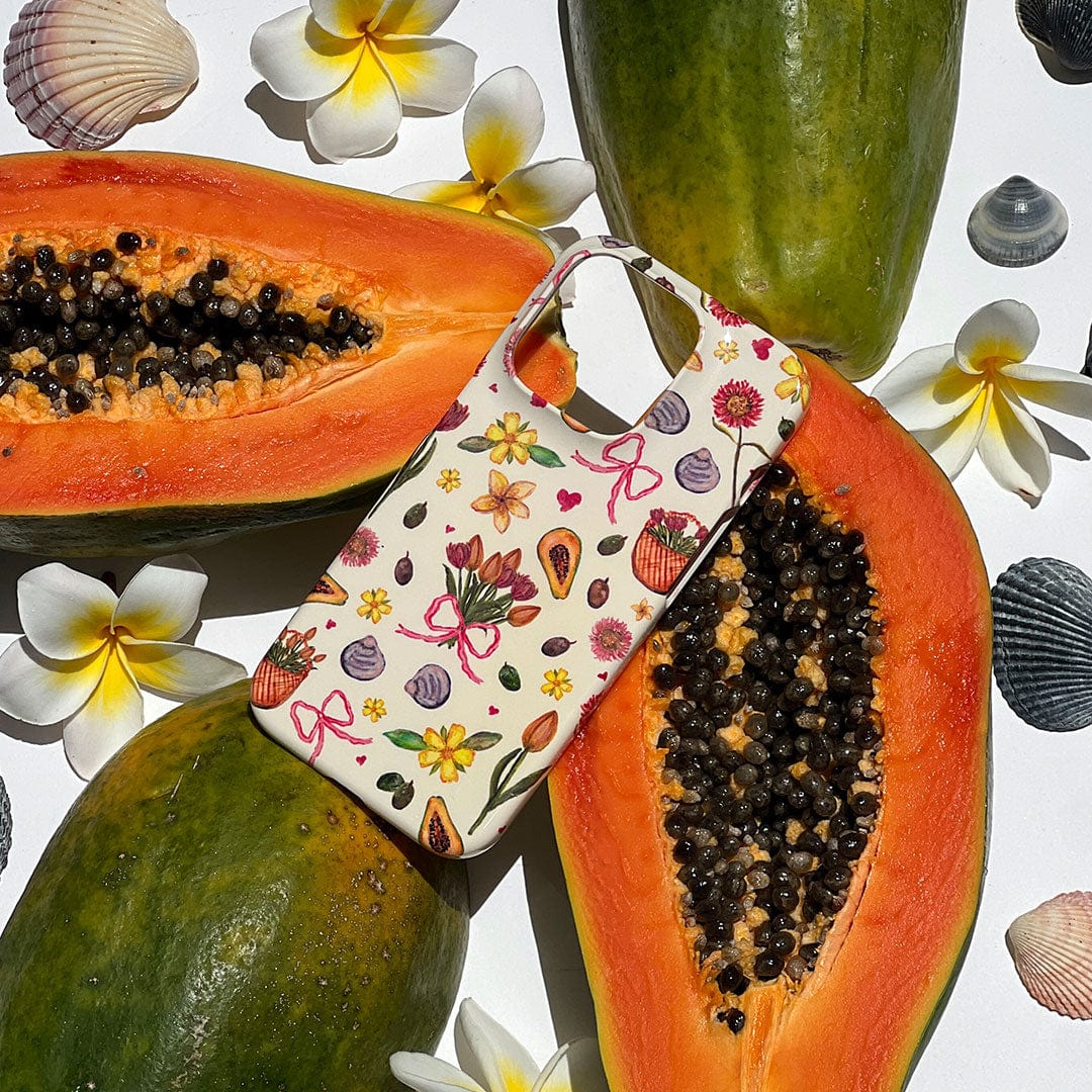 Elevate your summer aesthetic with the Bouquets & Bows phone case by BG Studio x The Dairy. Embrace the season's essence with shells, bows, fruit, and floral designs on this cute and sturdy case. For added peace of mind, consider upgrading to the armoured version for all-around protection.