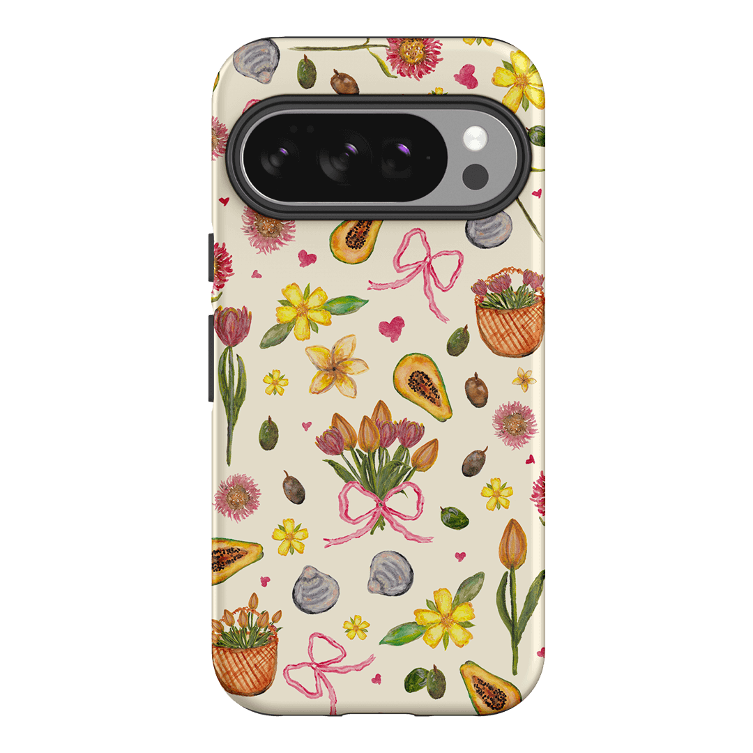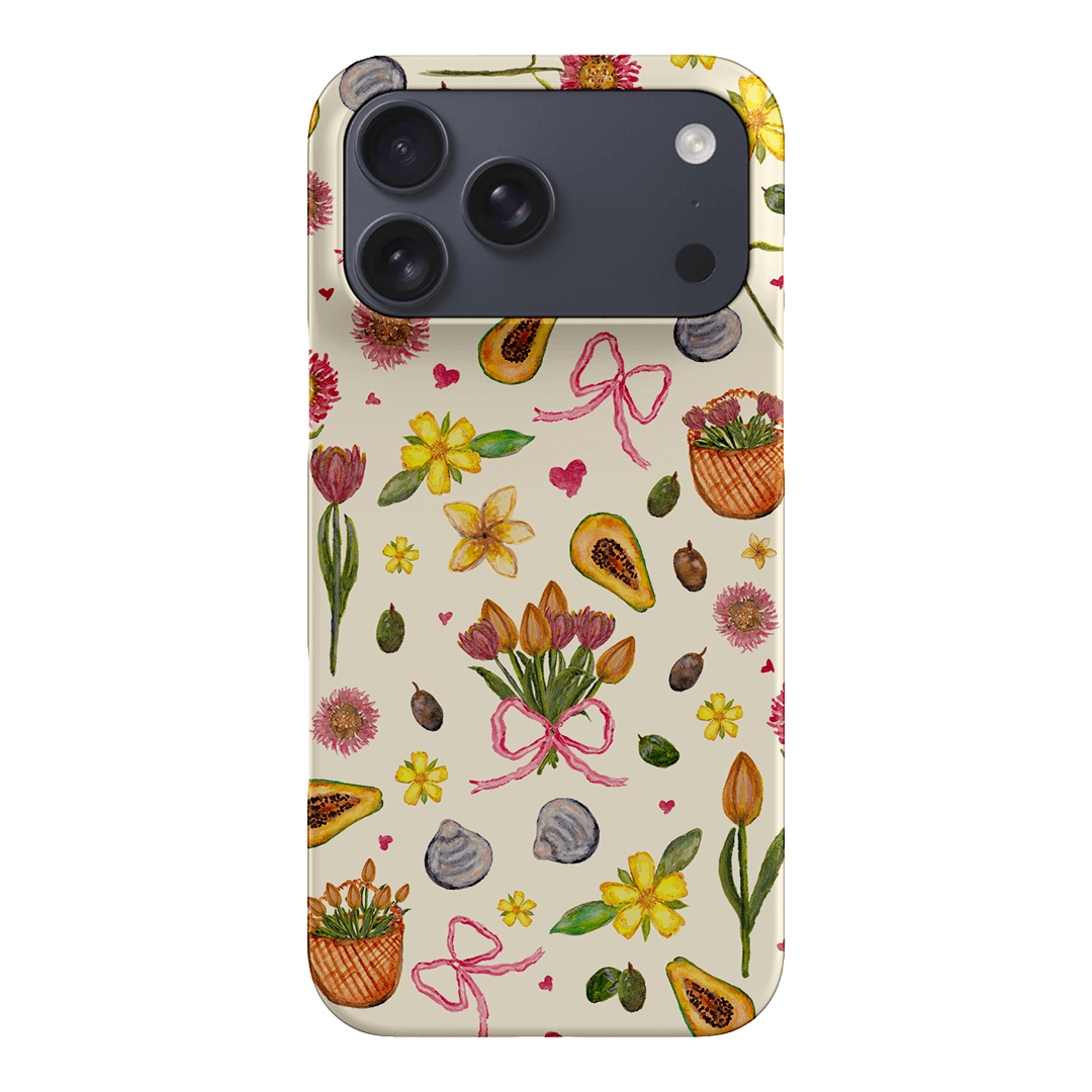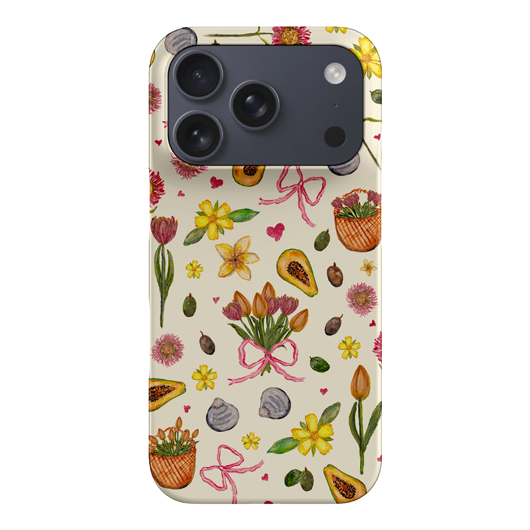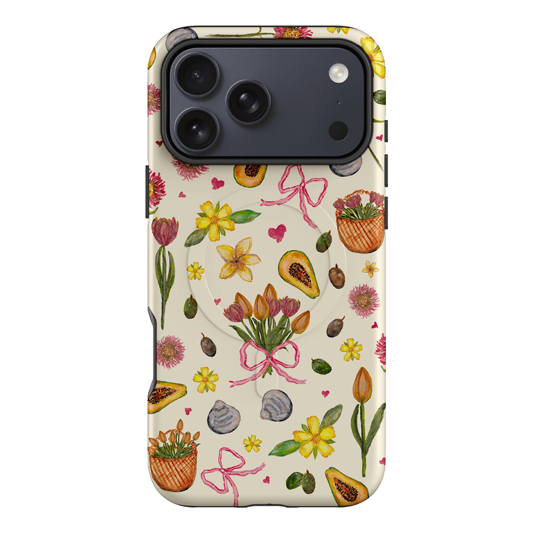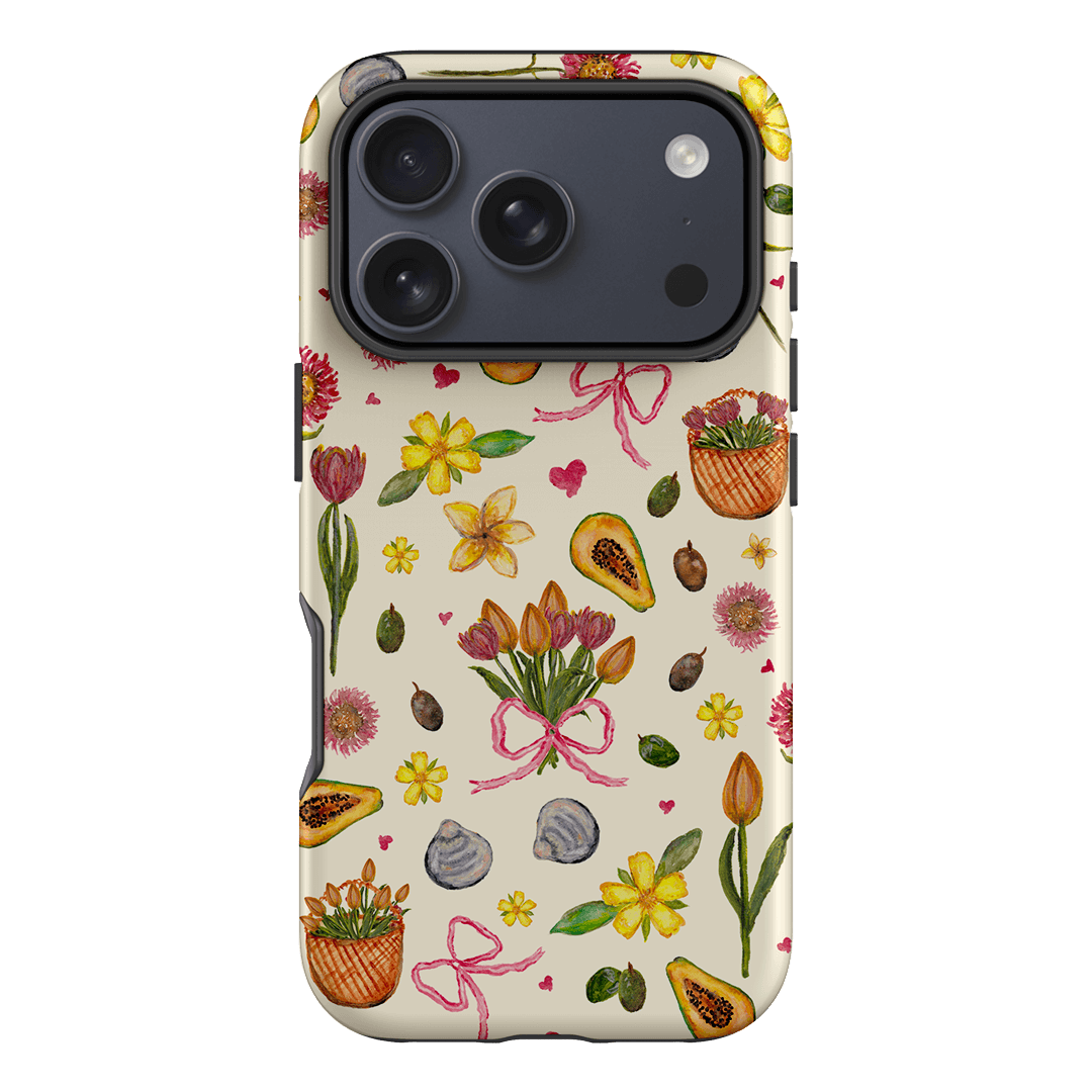 Elevate your summer aesthetic with the Bouquets & Bows phone case by BG Studio x The Dairy. Embrace the season's essence with shells, bows, fruit, and floral designs on this cute and sturdy case. For added peace of mind, consider upgrading to the armoured version for all-around protection.