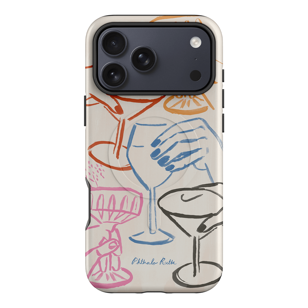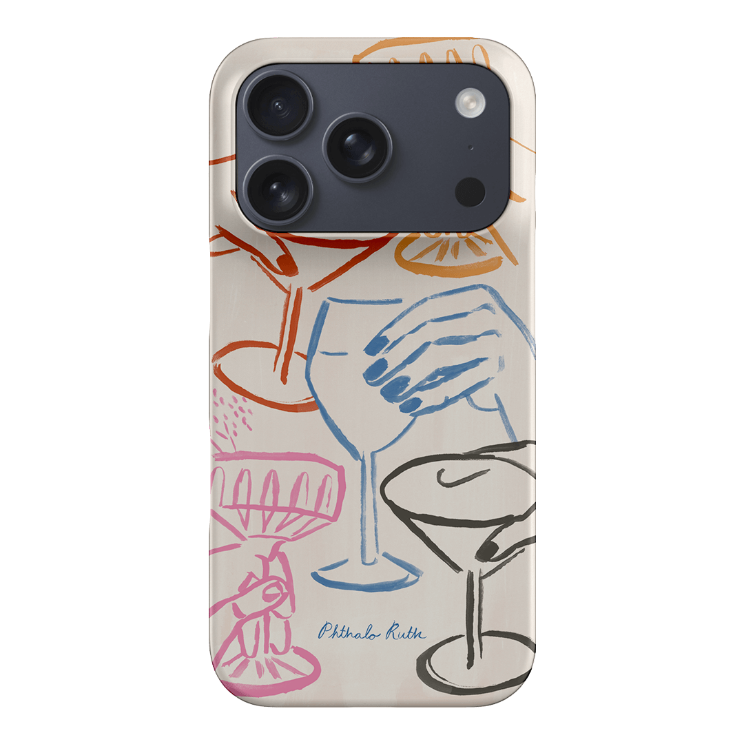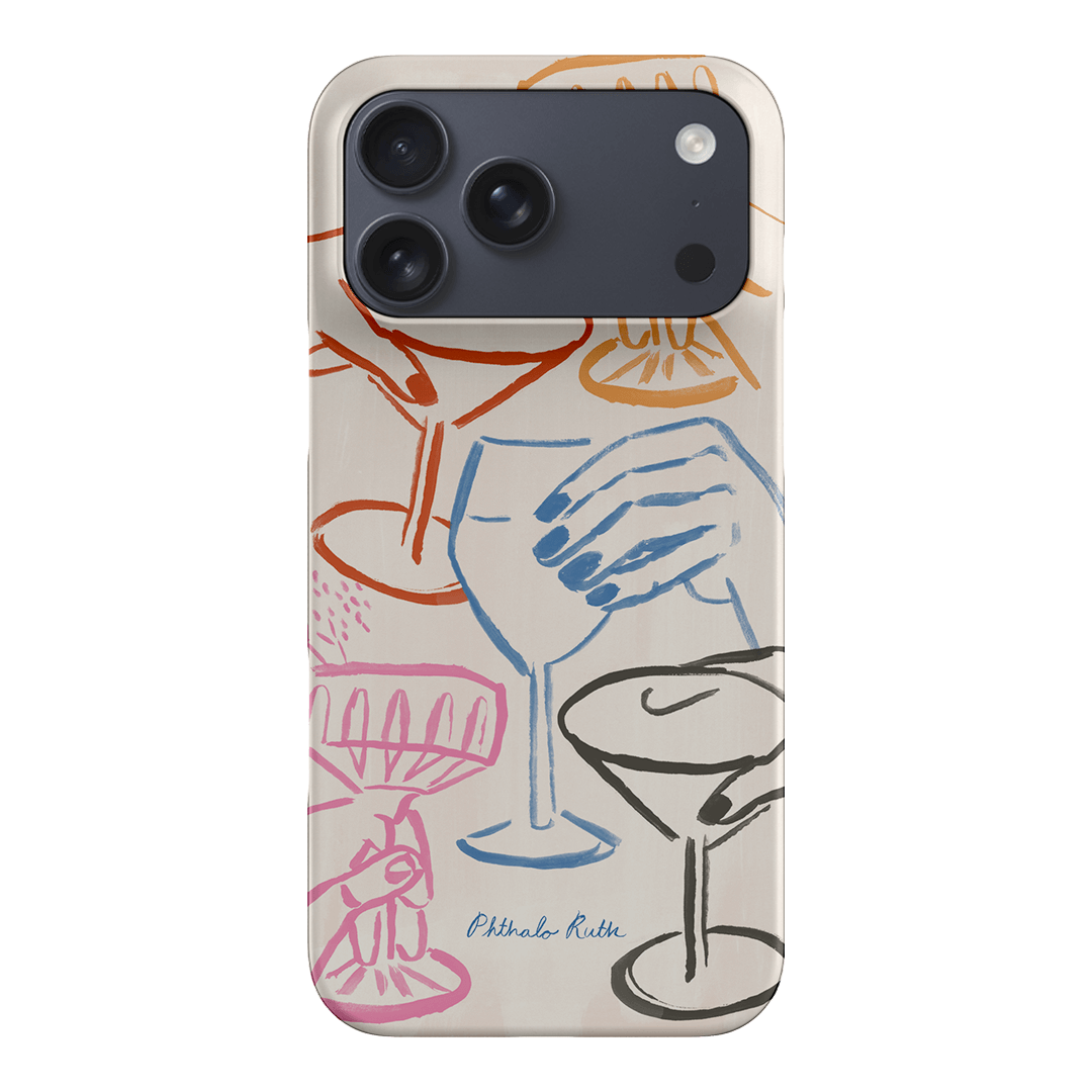 Let this playful artwork inspire you as you toast with your best pals and giggle over cocktails - pick between the green 'Cheers' phone case option or this colourful one. Loosely painted to remind you to celebrate every moment and manifest more little luxuries. We think this design is a must-have for your phone case.