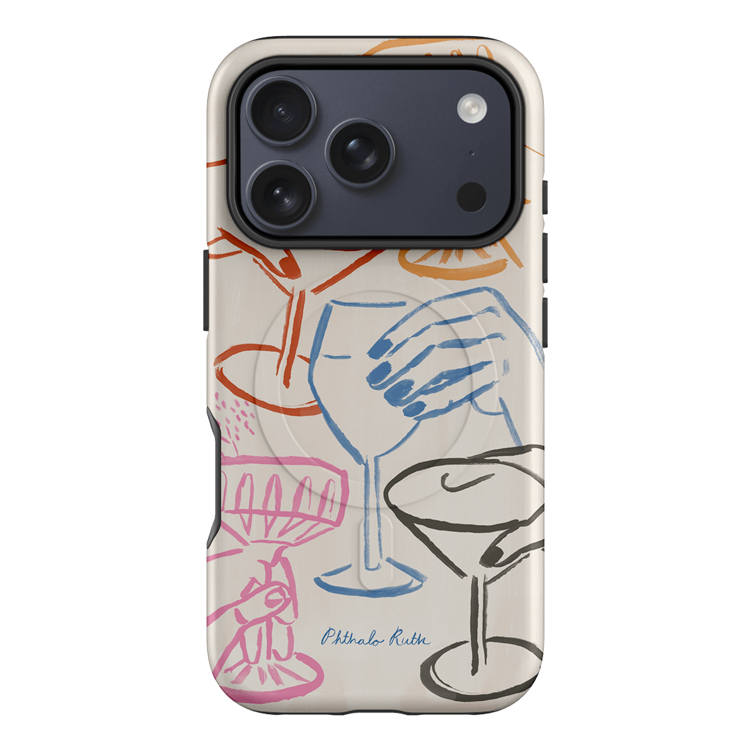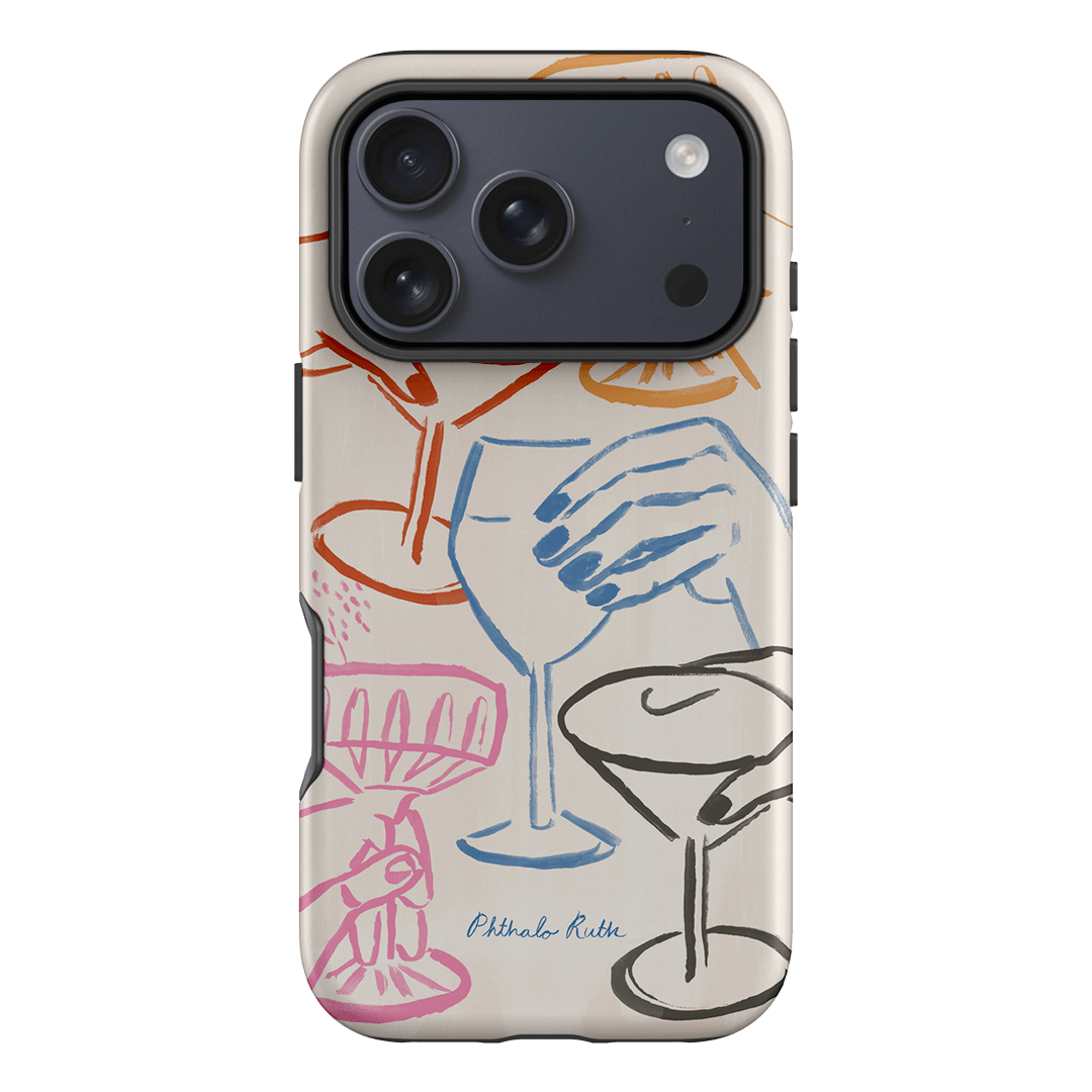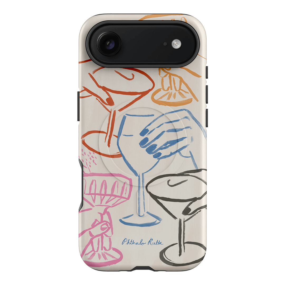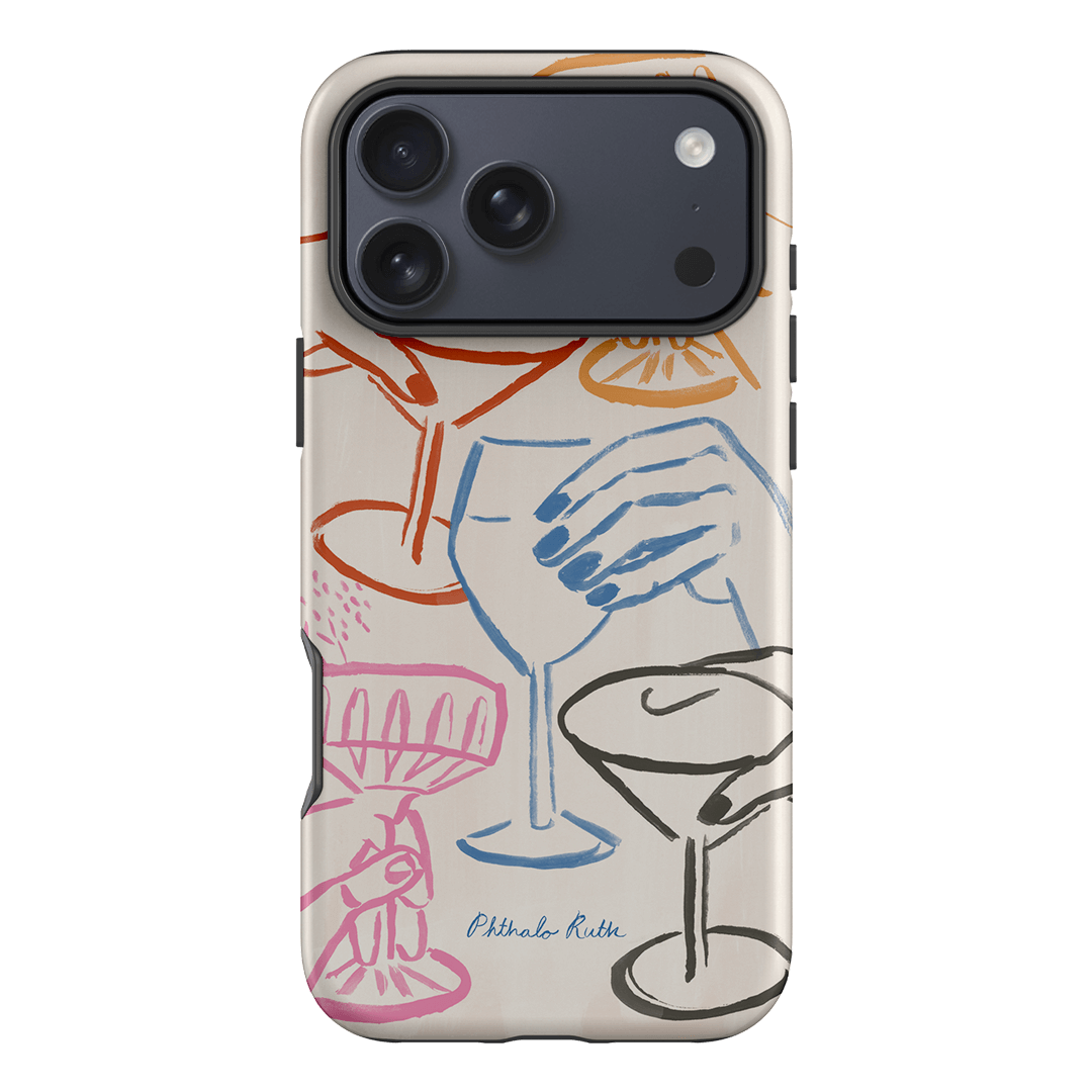 Let this playful artwork inspire you as you toast with your best pals and giggle over cocktails - pick between the green 'Cheers' phone case option or this colourful one. Loosely painted to remind you to celebrate every moment and manifest more little luxuries. We think this design is a must-have for your phone case.