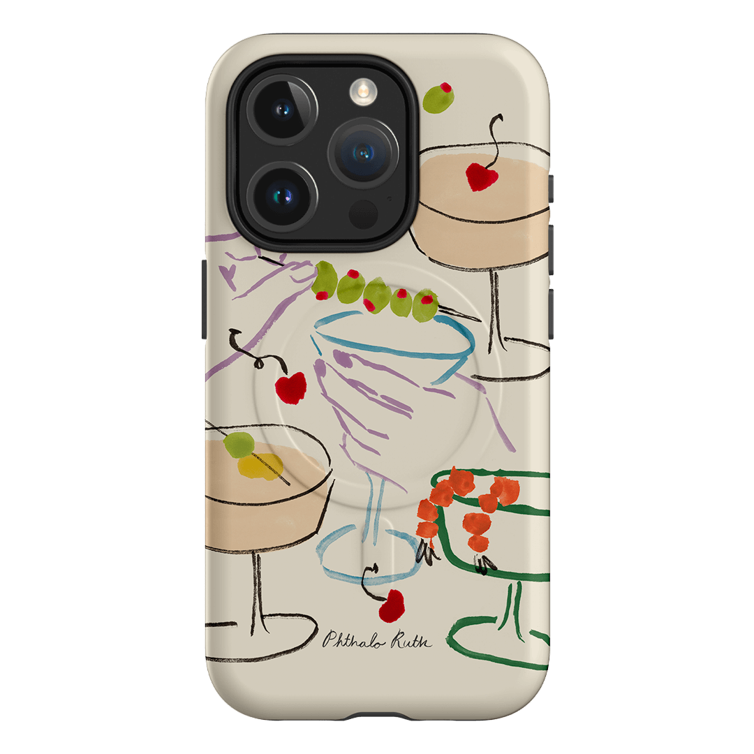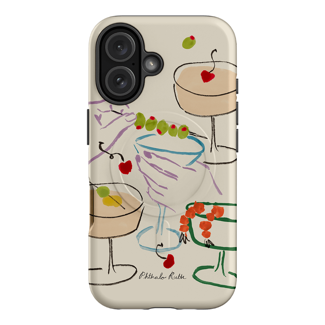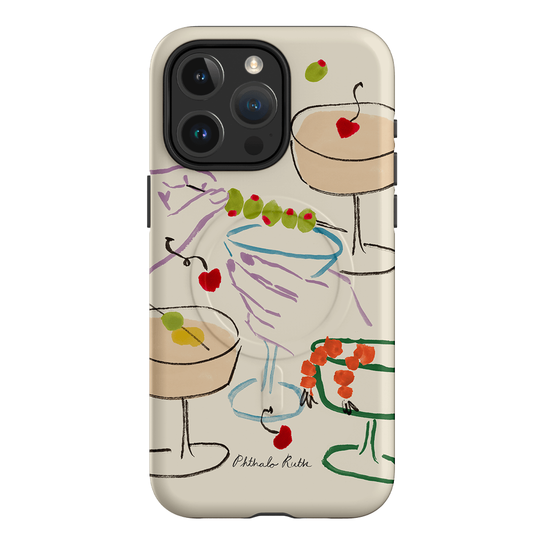 Transform your phone into a vibrant work of art with the Cosmopolitan Dreams phone case, an exquisite design by Phthalo Ruth. Featuring a whimsical medley of multicoloured martinis garnished with olives, pink cosmos, and a cheeky shrimp cocktail, this case is a celebration of fun, flavour, and flair.