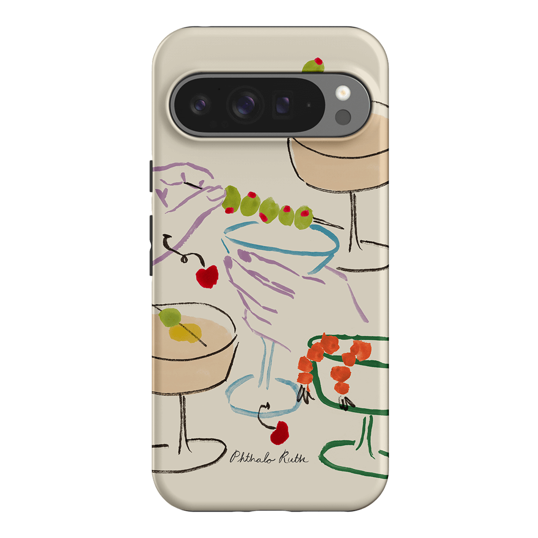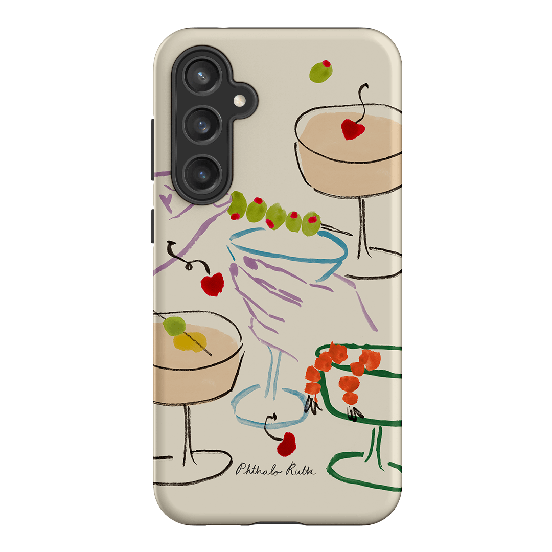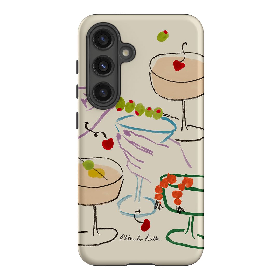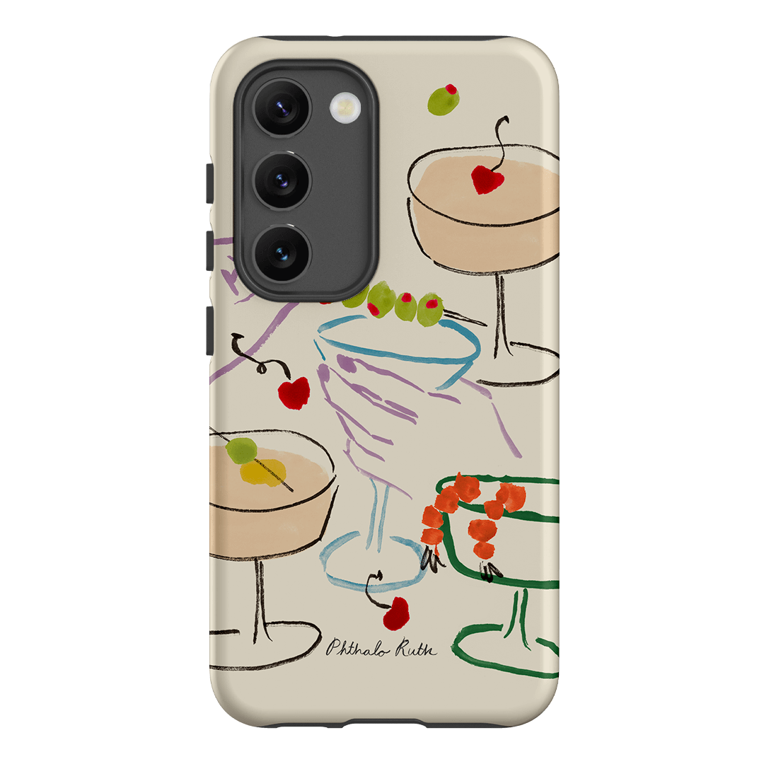 Transform your phone into a vibrant work of art with the Cosmopolitan Dreams phone case, an exquisite design by Phthalo Ruth. Featuring a whimsical medley of multicoloured martinis garnished with olives, pink cosmos, and a cheeky shrimp cocktail, this case is a celebration of fun, flavour, and flair.