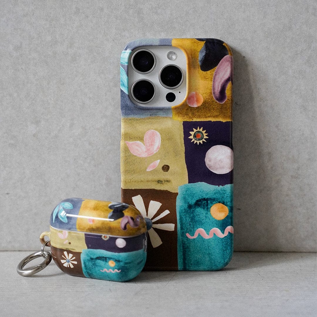 Elevate your AirPod Pros with the Elemental case, a stunning creation by artist Ree Hodge. This case combines style, creativity, and functionality with a unique patchwork design.