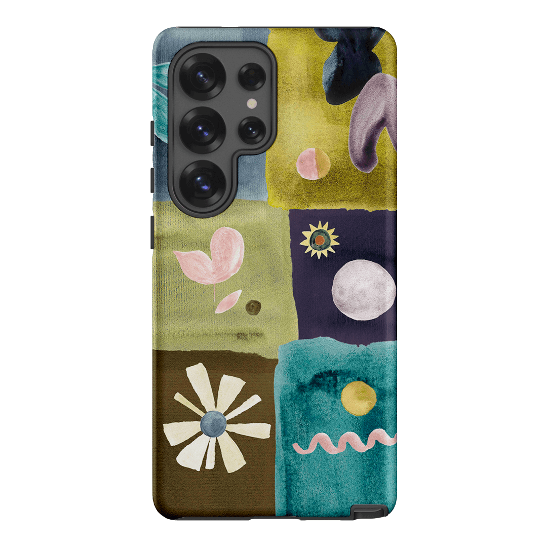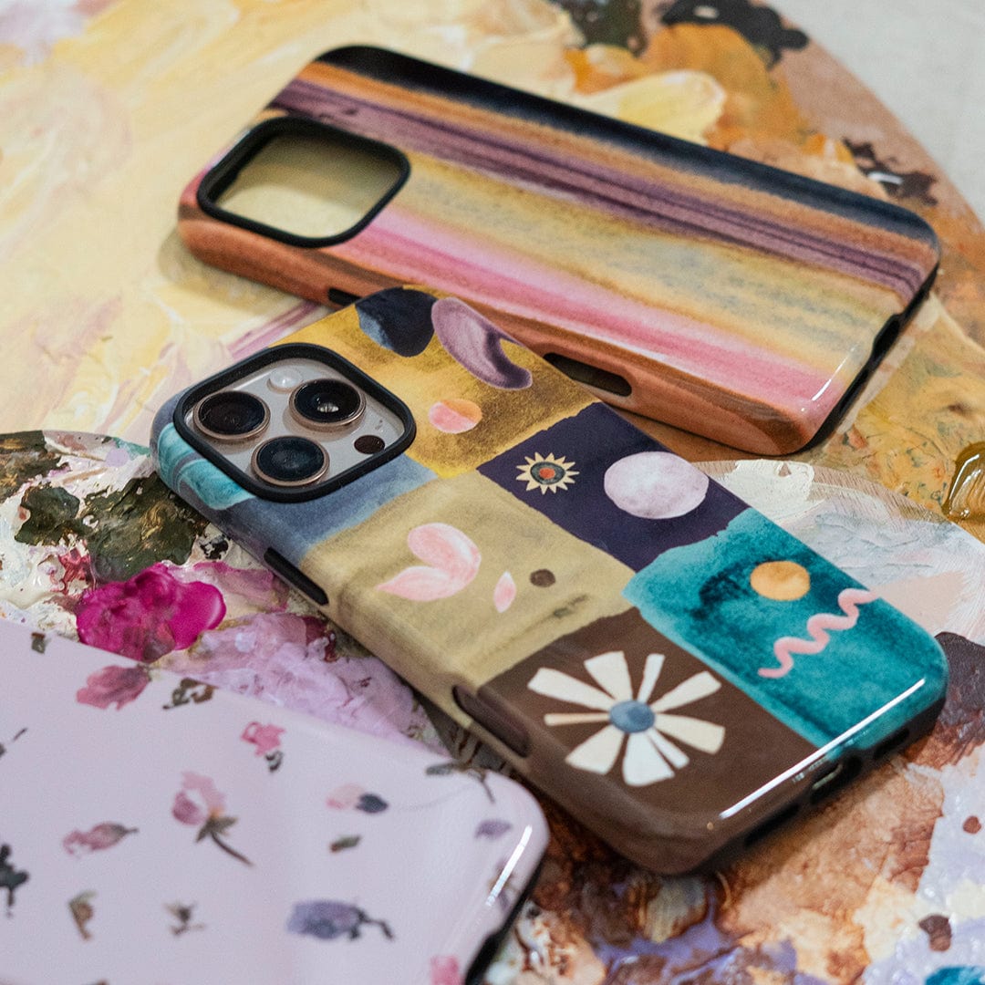 Discover the Elemental phone case, a stunning work of art by artist Ree Hodge. This case blends style, creativity, and functionality, featuring a unique patchwork design.