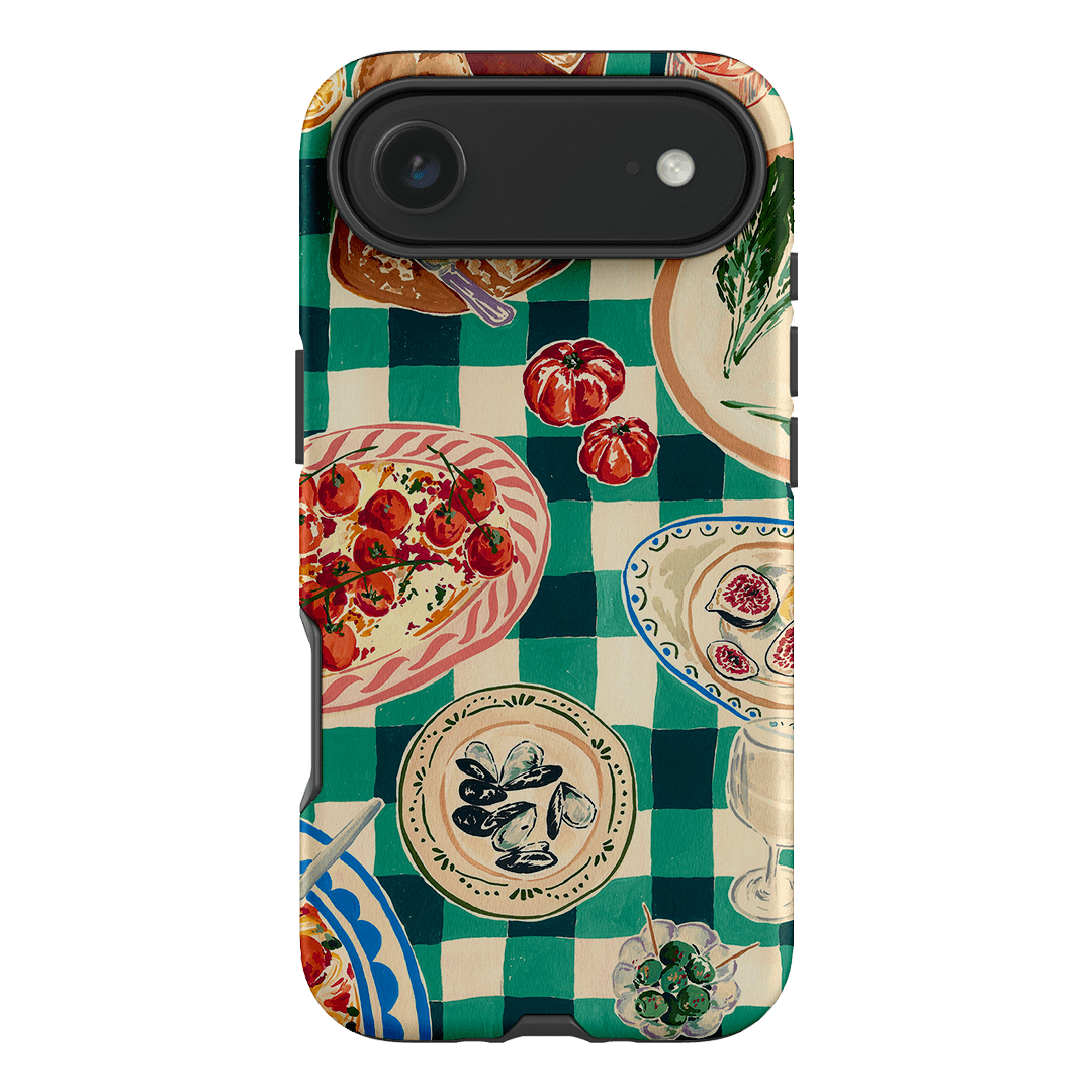 Transport yourself to a cozy Italian evening with our Evening Alfresco phone case. Featuring a charming, abstract illustration of a dreamy dinner setting, complete with a green checkered tablecloth and the lively colours of fresh ingredients, this case brings the warmth of Italy to your everyday. Not only is it cute and stylish, but it's designed with durable materials to protect your phone from life's little mishaps. For the dreamers, travellers, and those who savour life’s simple pleasures, Evening Alfresco is the perfect companion.
