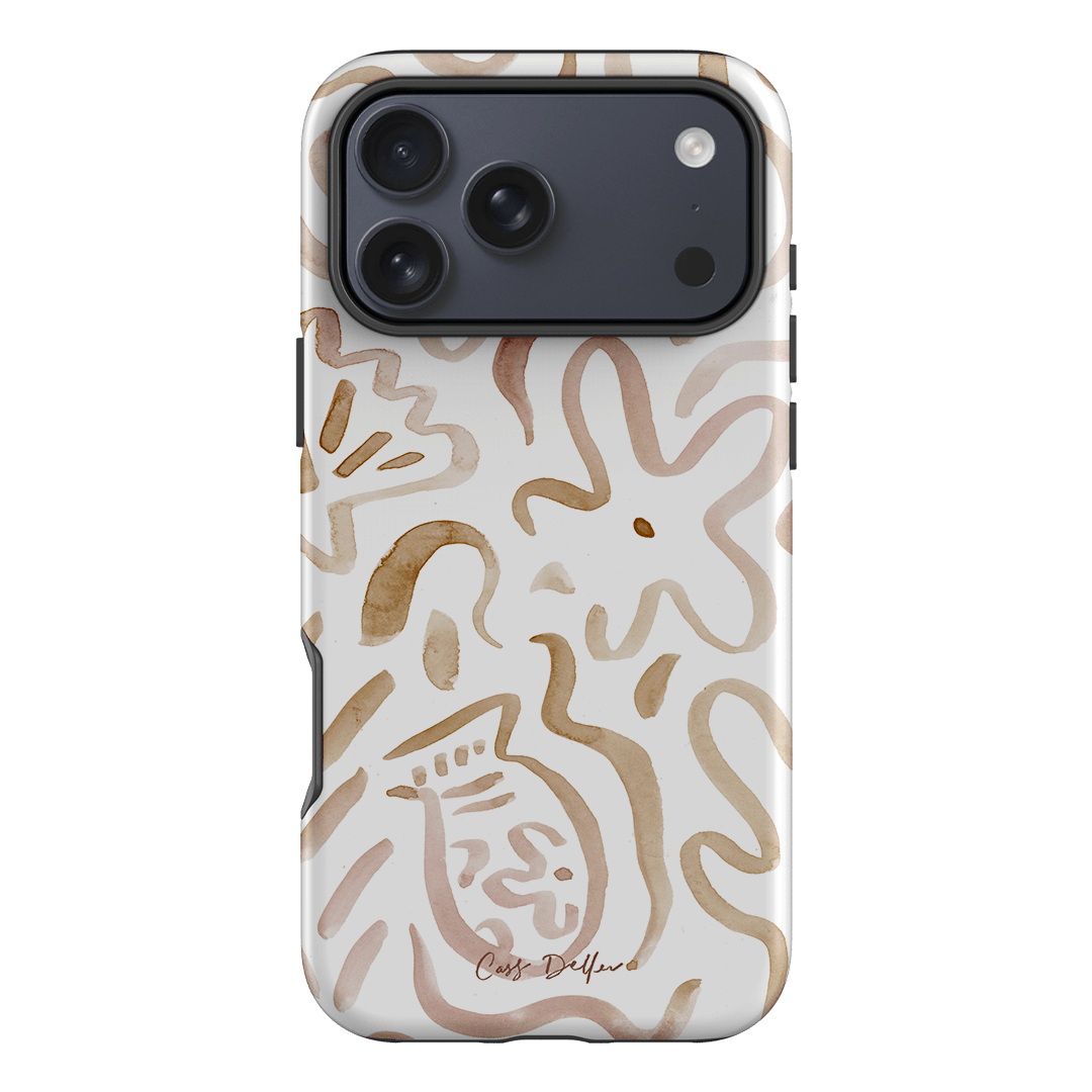 A beautiful neutral phone case by Cass Deller. The 'Flow' design features watercolour strokes with abstract florals, line features and ancient vases. Let your imagination run wild with this beautiful phone cover for your iPhone, Samsung Galaxy and Google Pixel phone.