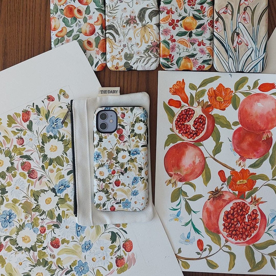 The Garden Strawberries case adds a burst of freshness, colour, and joy to your everyday essentials.