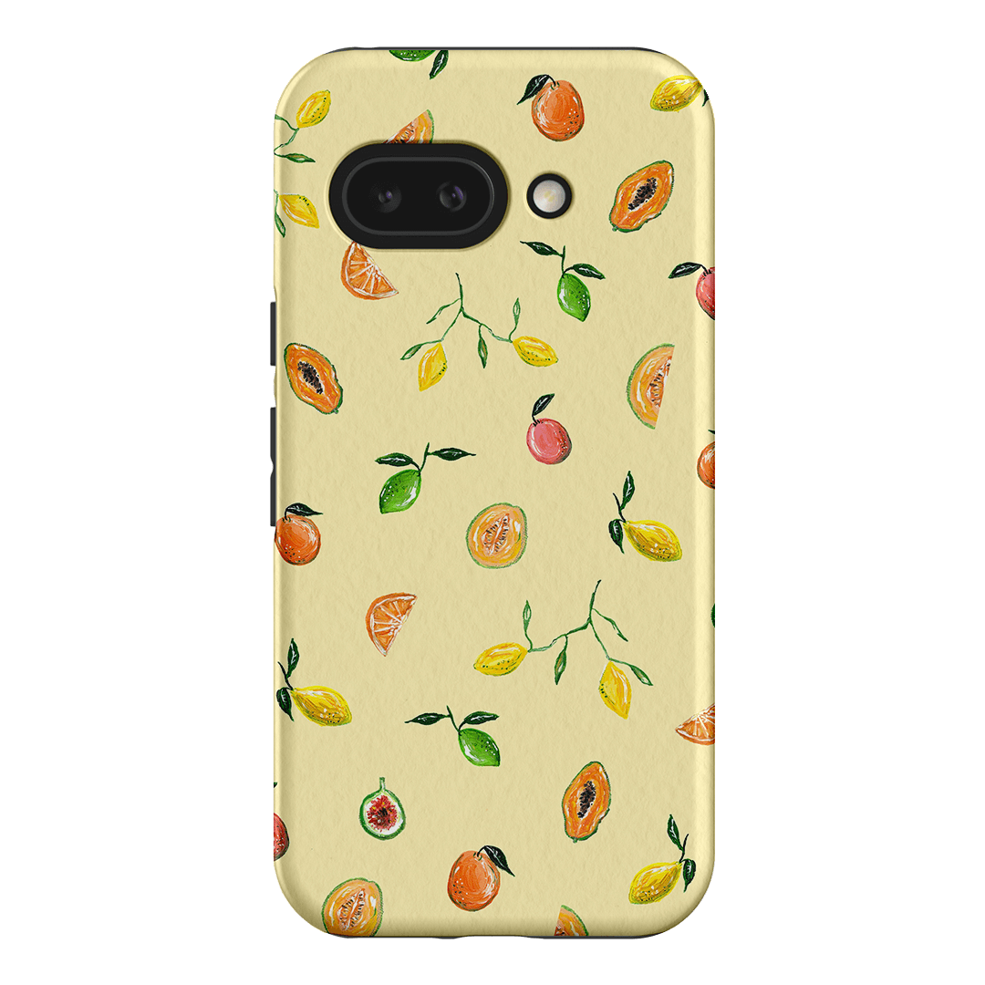 Golden Fruits is a bright, fun fruit-inspired phone case. This case's artwork was influenced by a day in the European sun, strolling along the old brick lanes and stumbling across a local fruit market for some fresh produce like lemons, limes, and summer fruits.