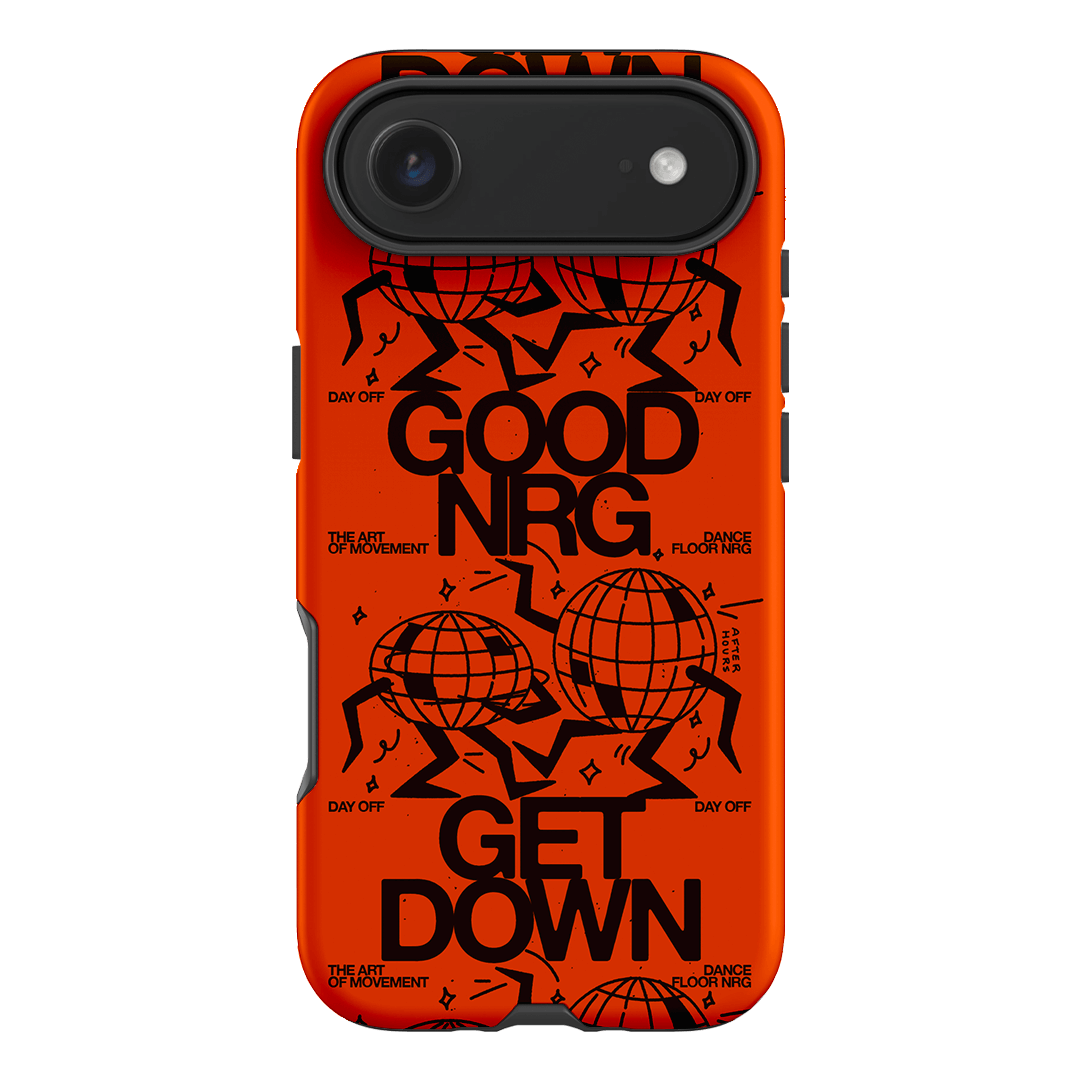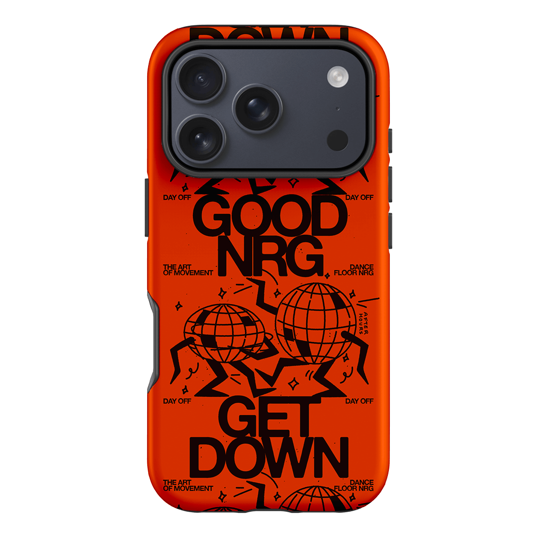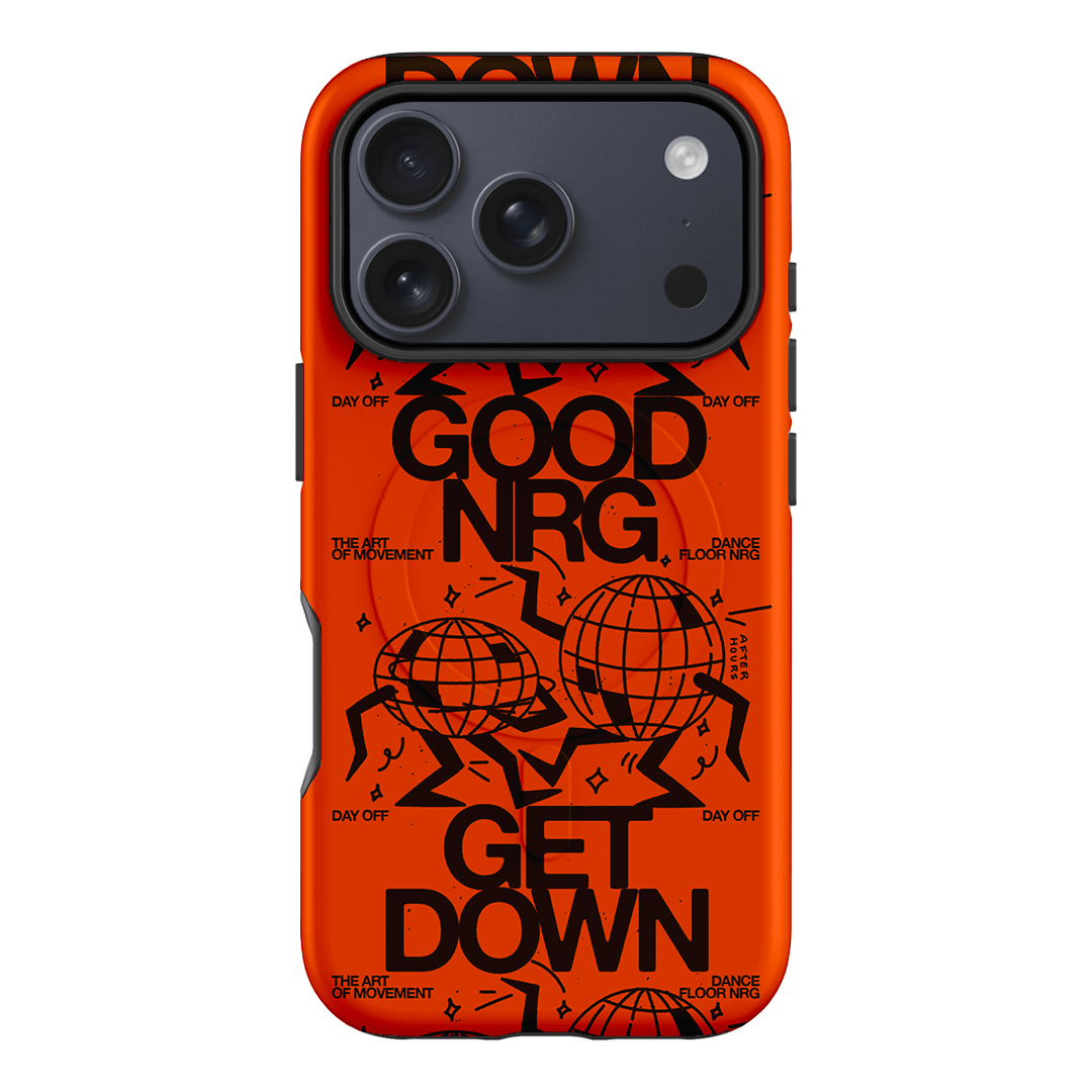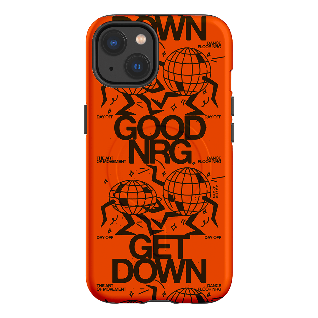Enter your rave era. The Good Energy Case embraces high vibrations and good energy, taking inspiration from house rave posters of the 90s. Everyone deserves a little boogie on their day off, now captured forever on your phone. Safety orange can be spotted from a mile away, so you’ll never lose your phone on the dance floor again.