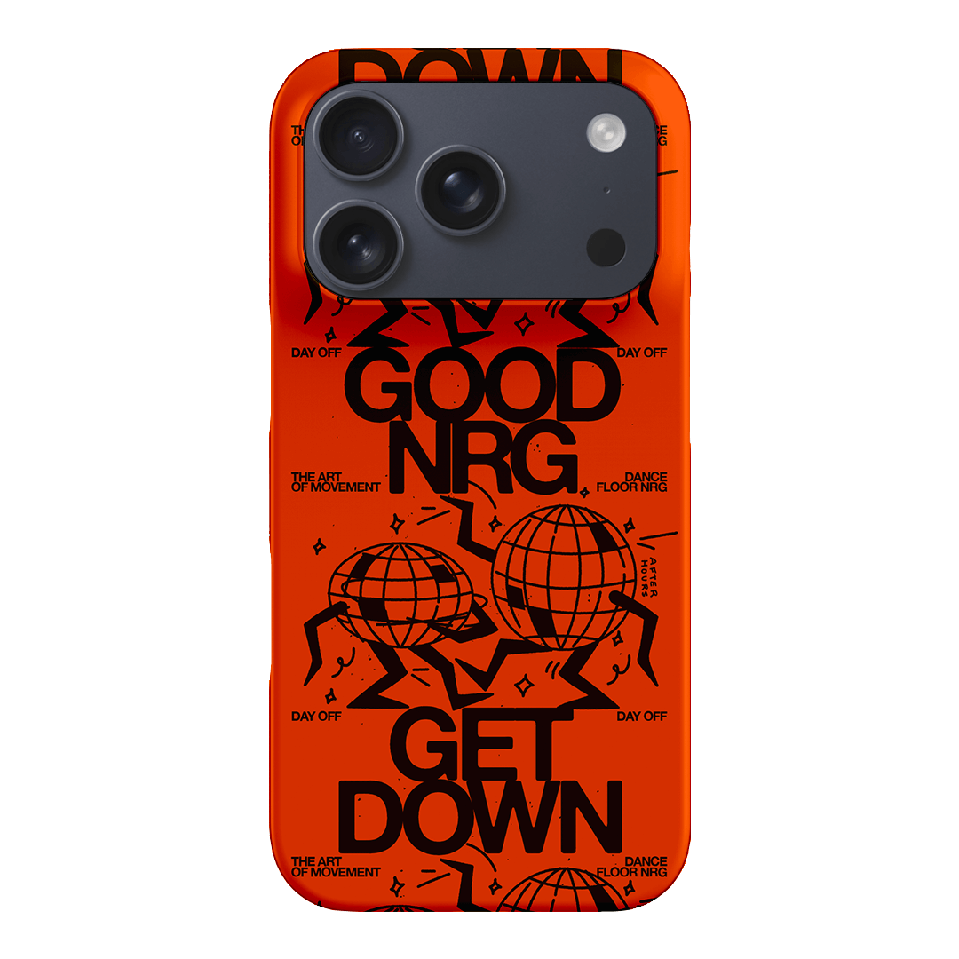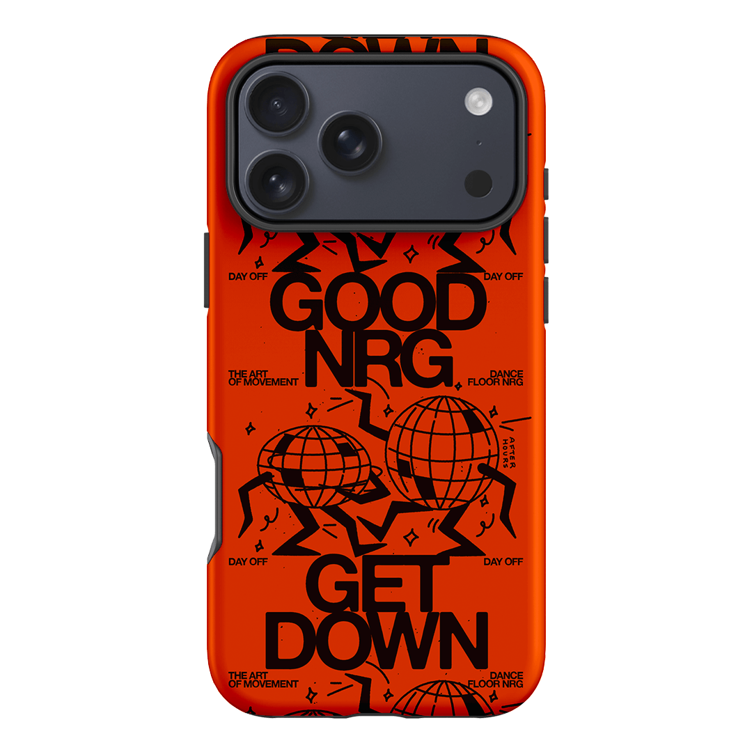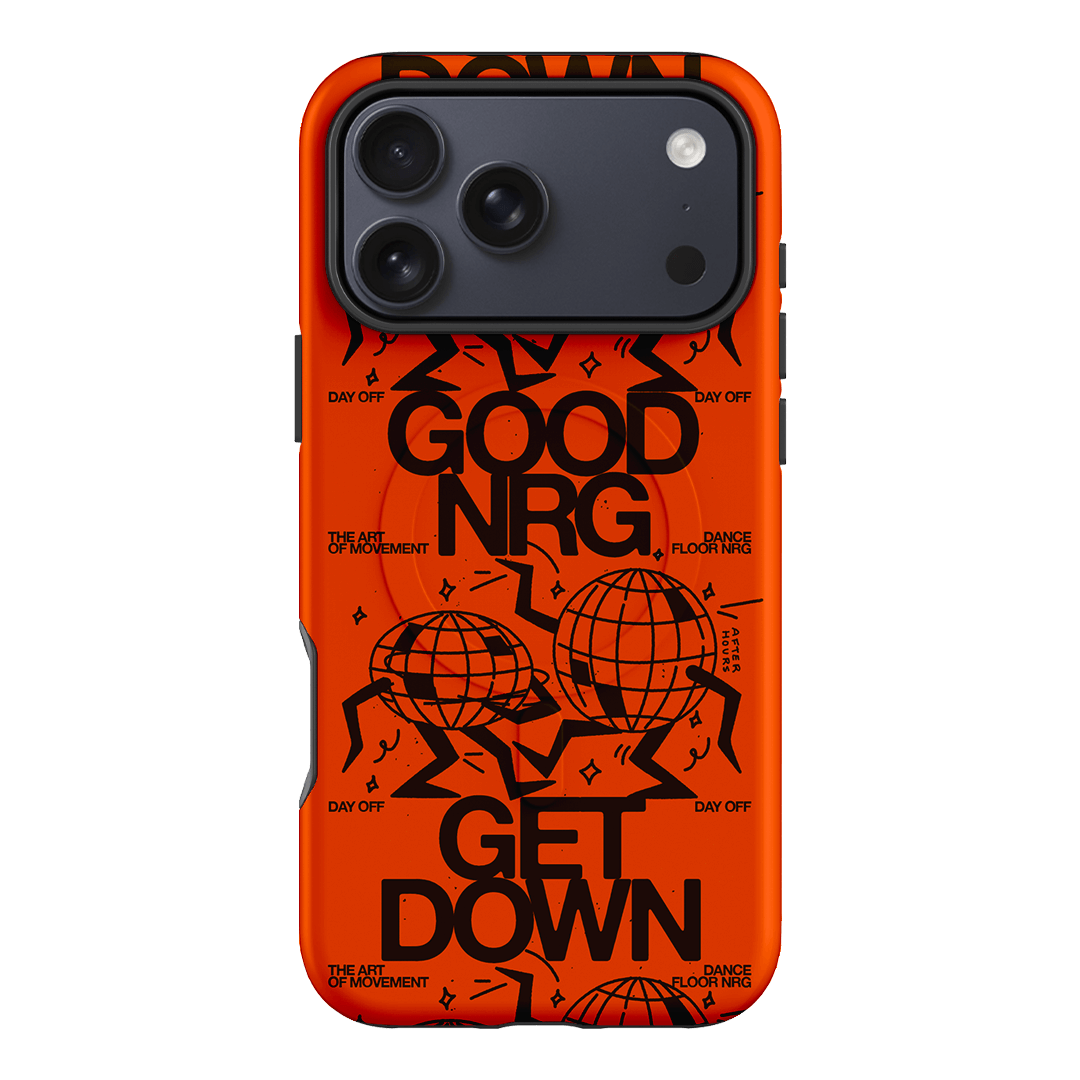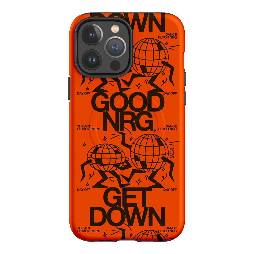 Enter your rave era. The Good Energy Case embraces high vibrations and good energy, taking inspiration from house rave posters of the 90s. Everyone deserves a little boogie on their day off, now captured forever on your phone. Safety orange can be spotted from a mile away, so you’ll never lose your phone on the dance floor again.