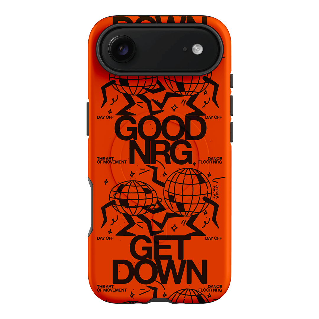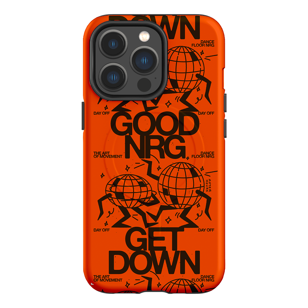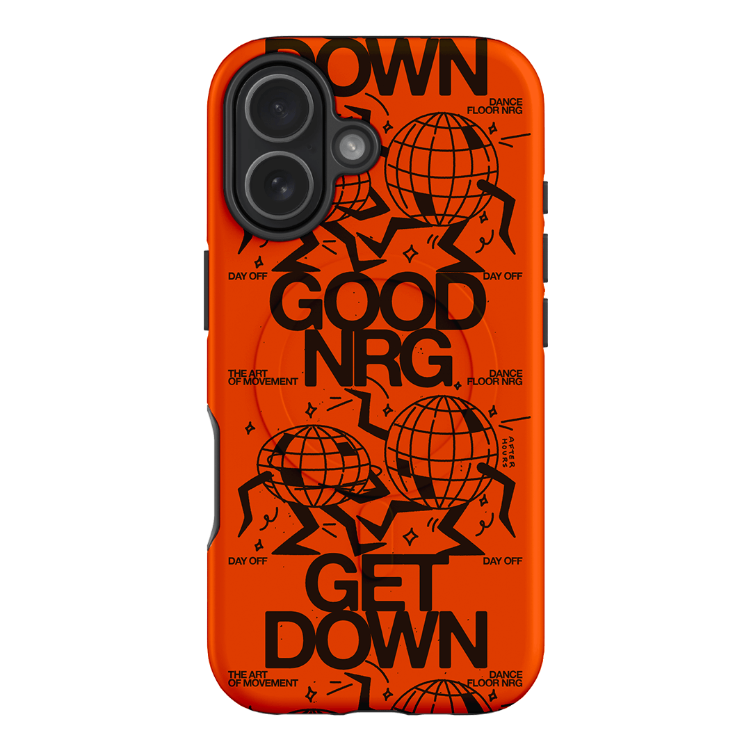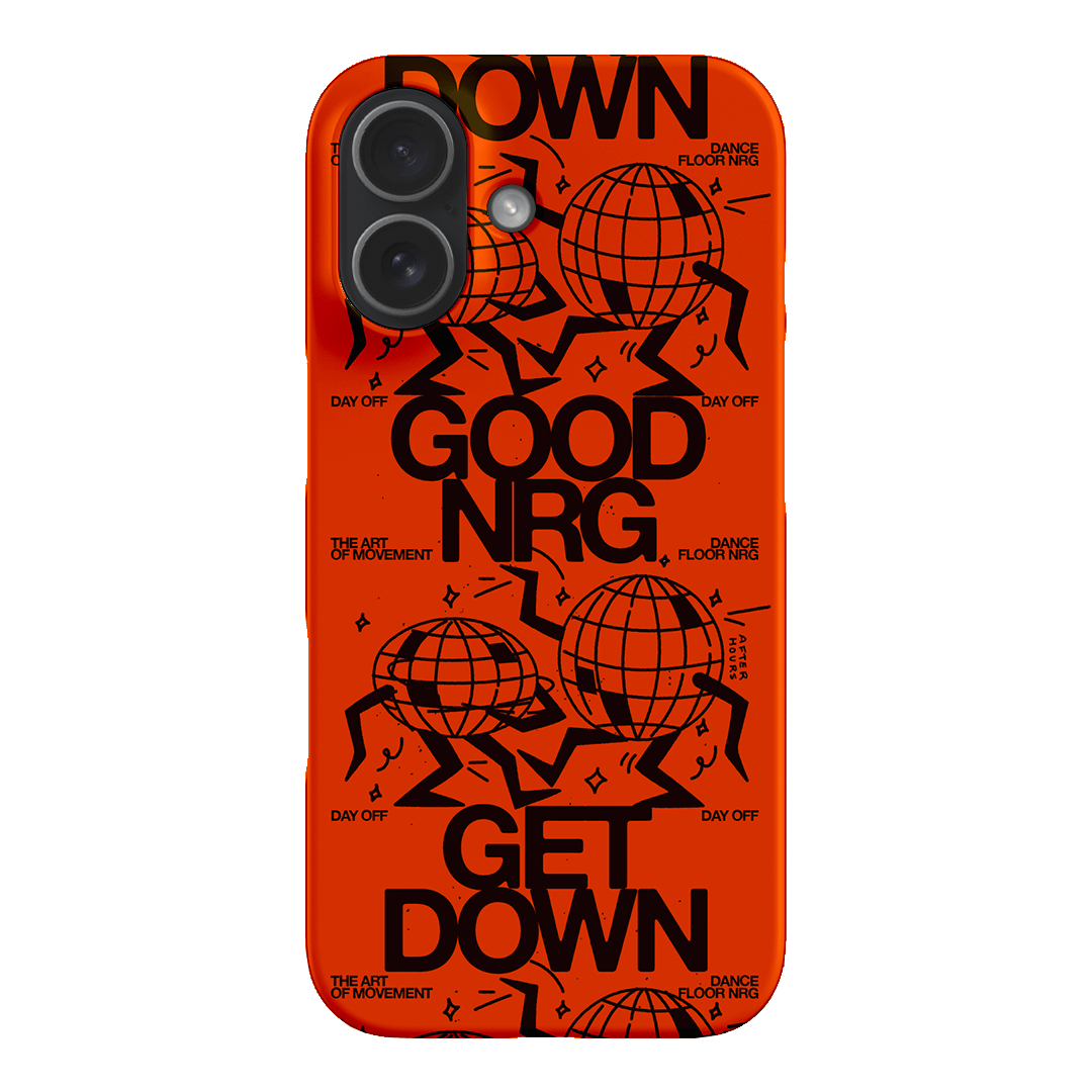 Enter your rave era. The Good Energy Case embraces high vibrations and good energy, taking inspiration from house rave posters of the 90s. Everyone deserves a little boogie on their day off, now captured forever on your phone. Safety orange can be spotted from a mile away, so you’ll never lose your phone on the dance floor again.
