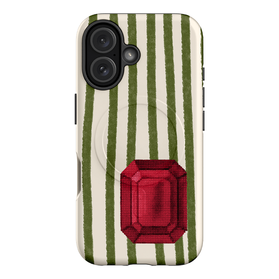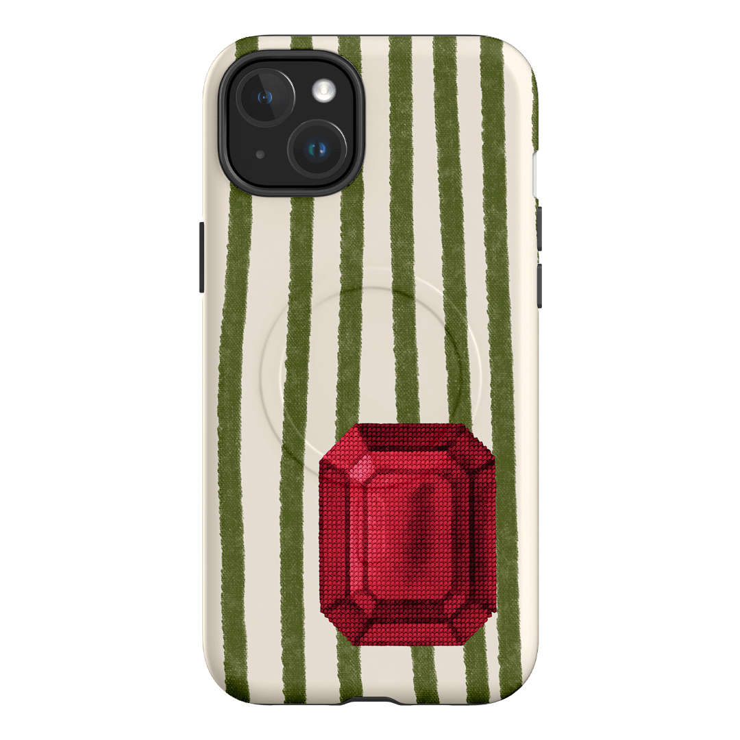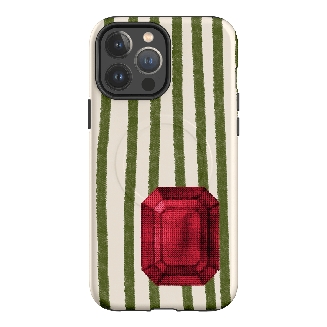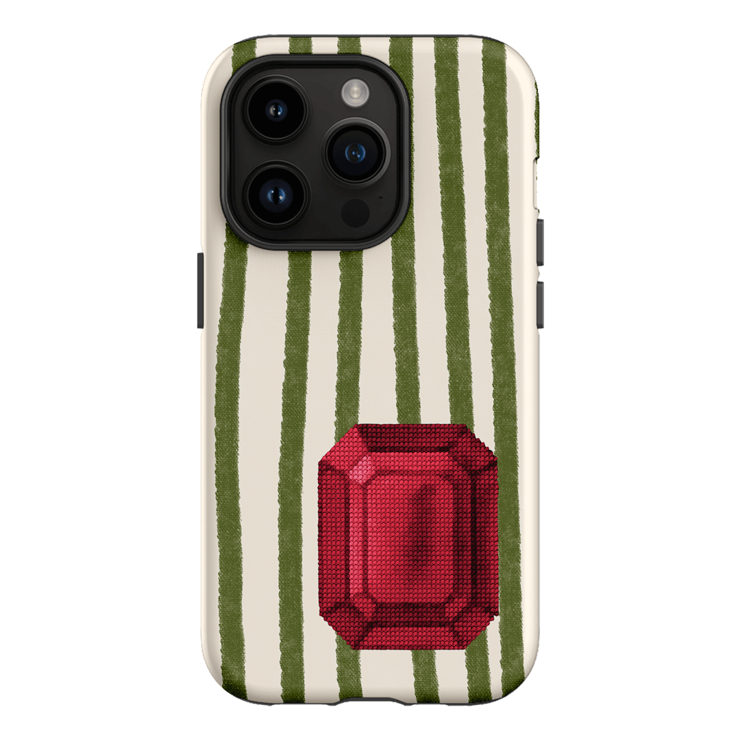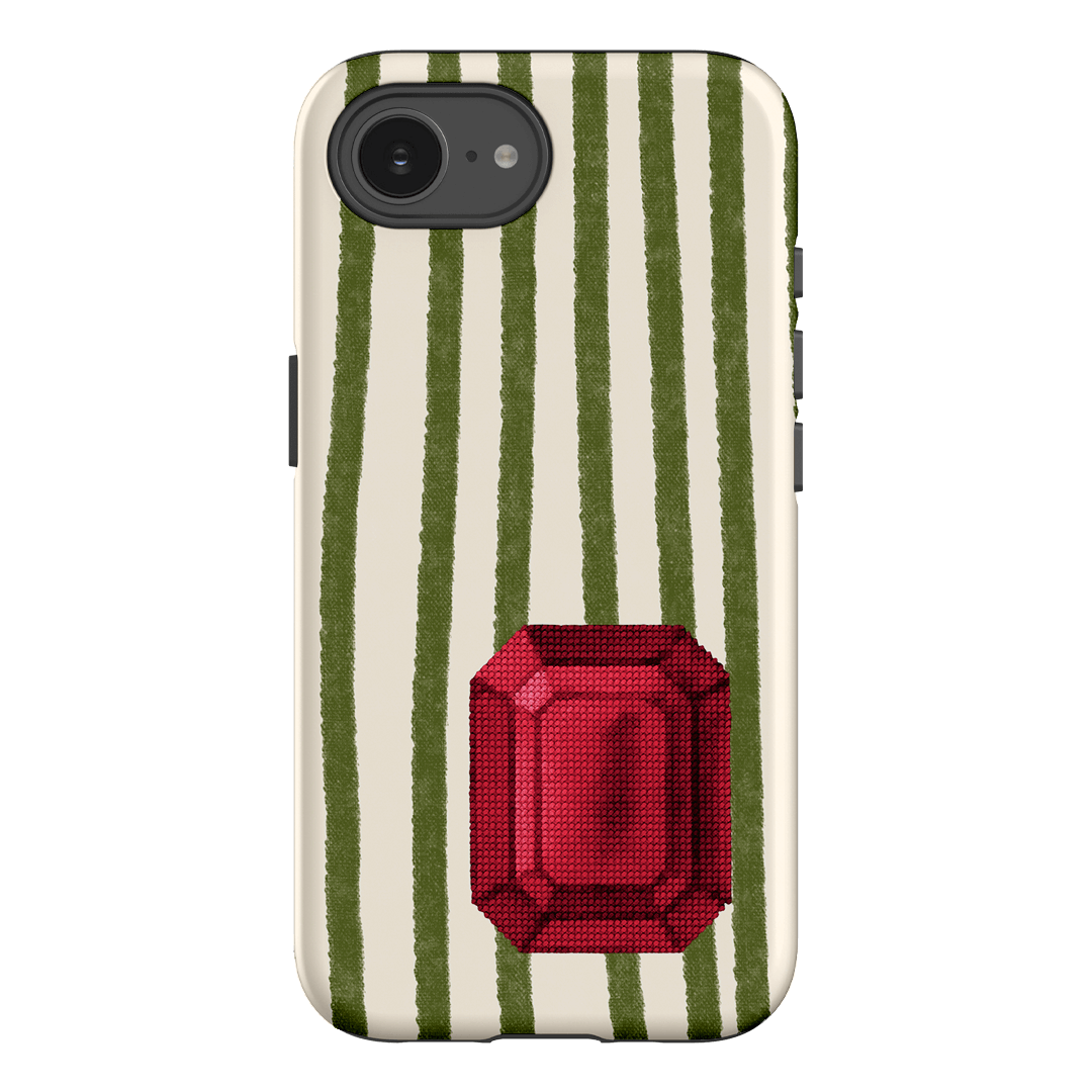 Part of the Birthstone Phone Case Collection, this design is made to celebrate your month, your mood, or simply your impeccable taste. Featuring a bold green striped background and a vibrant illustrated Ruby front and centre, it’s the perfect mix of passion and polish, like a summer fling that never ends.