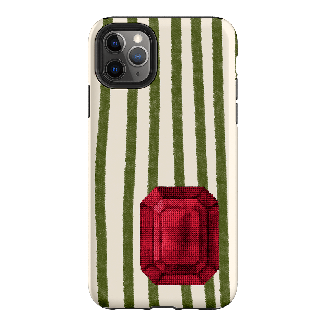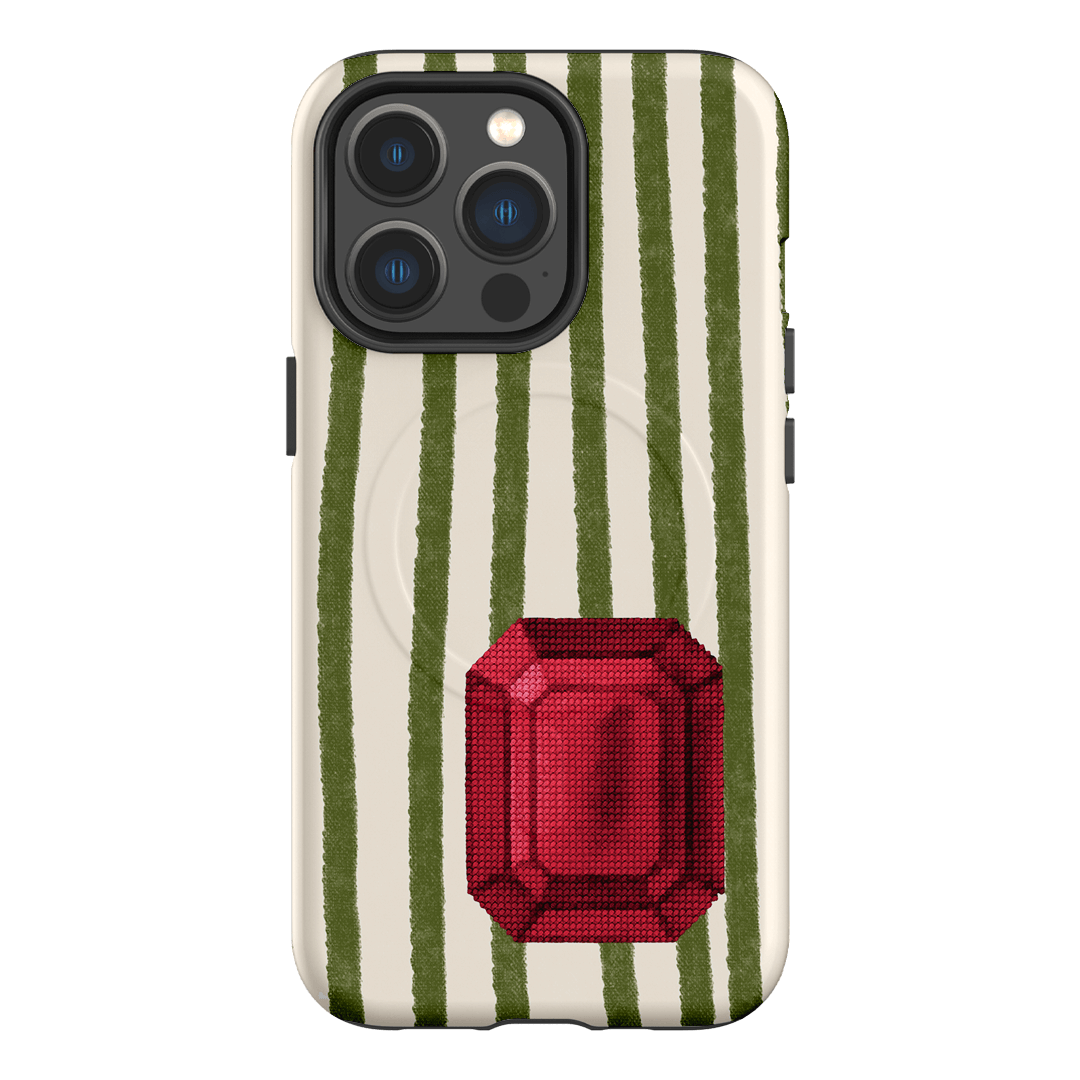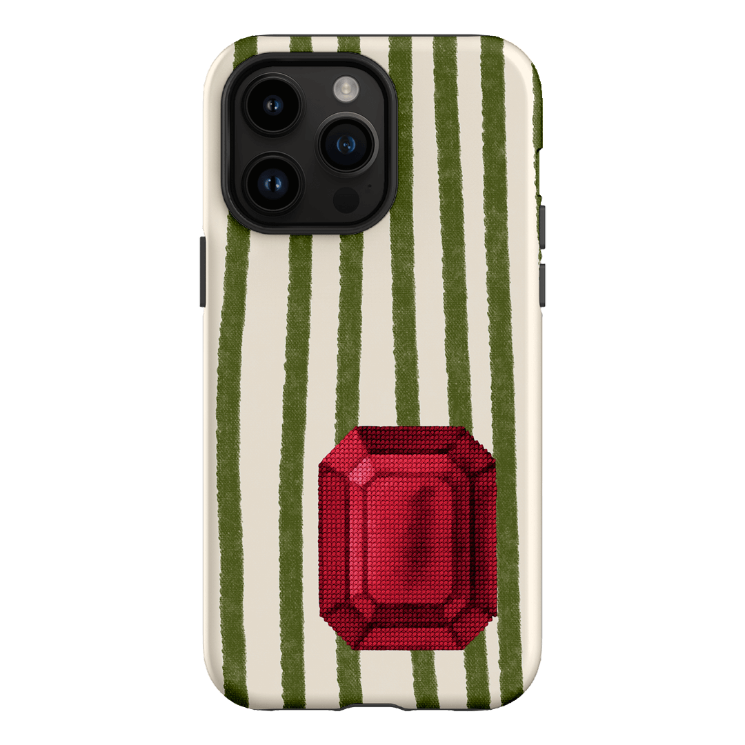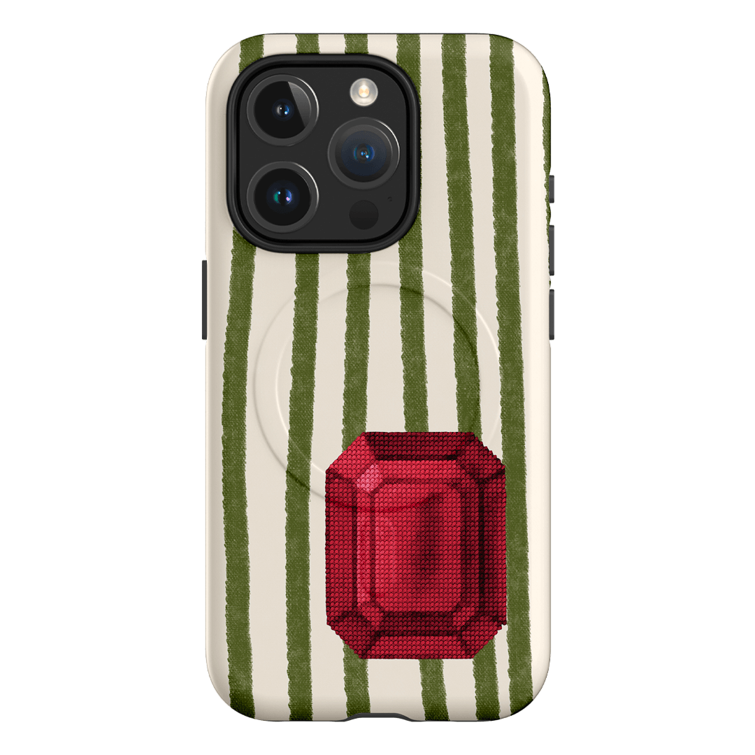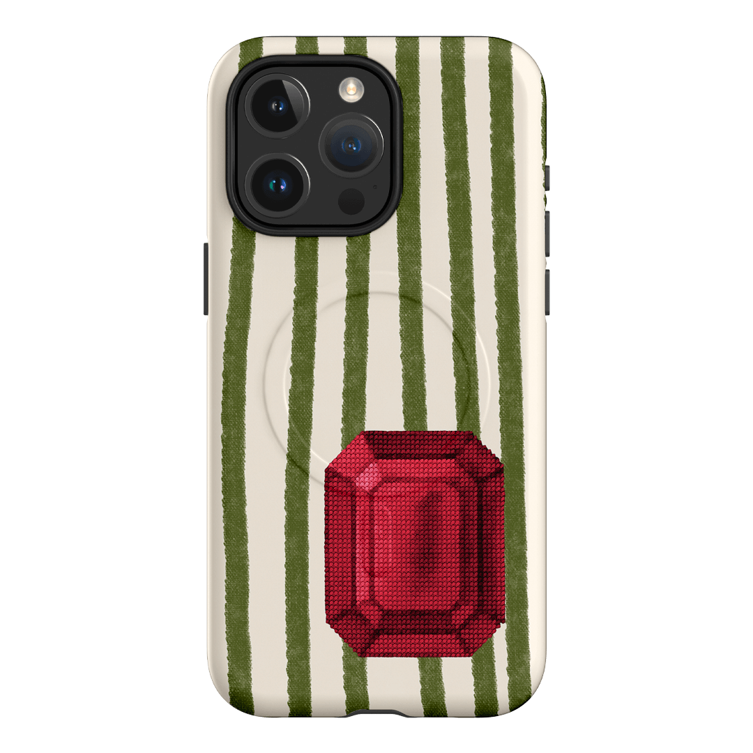 Part of the Birthstone Phone Case Collection, this design is made to celebrate your month, your mood, or simply your impeccable taste. Featuring a bold green striped background and a vibrant illustrated Ruby front and centre, it’s the perfect mix of passion and polish, like a summer fling that never ends.