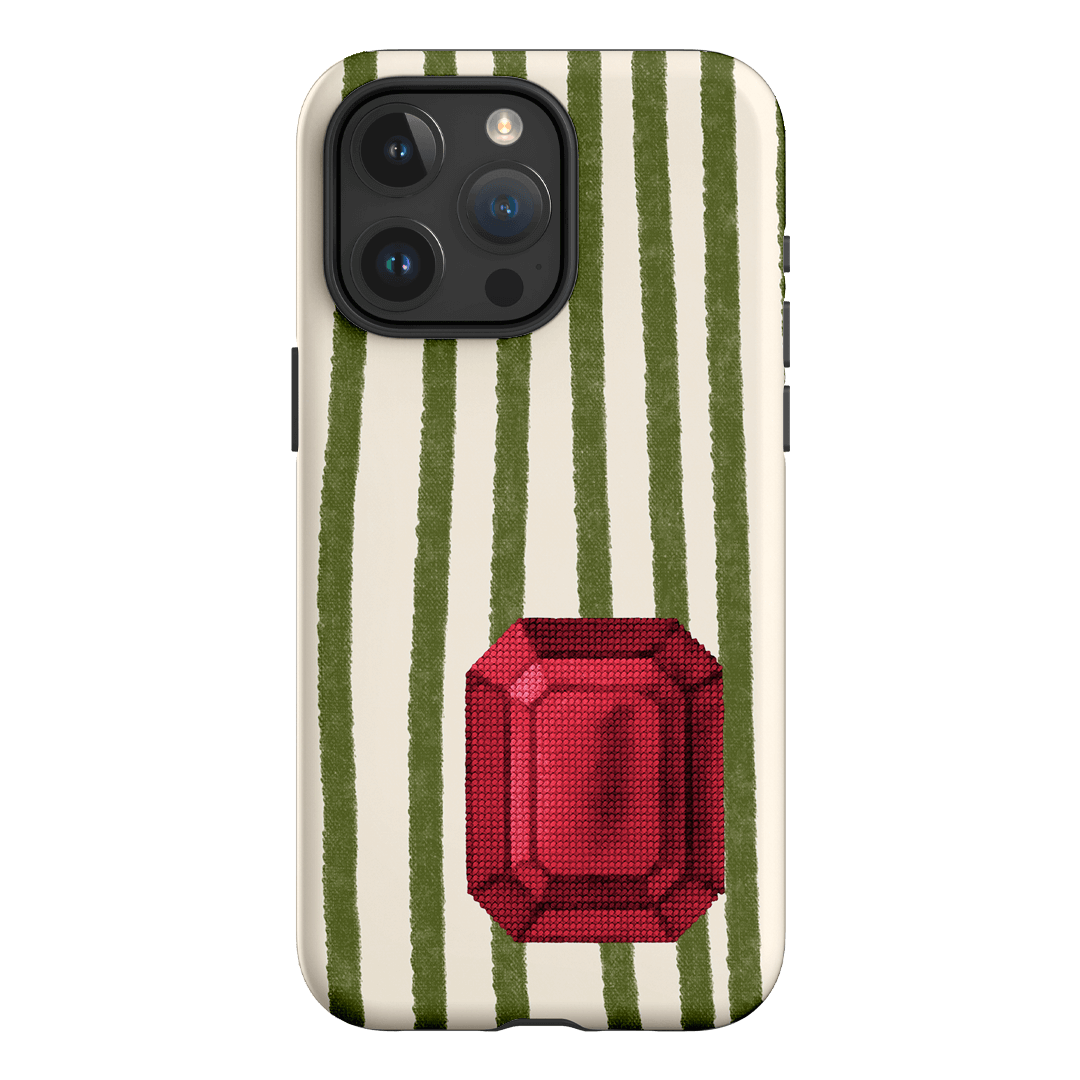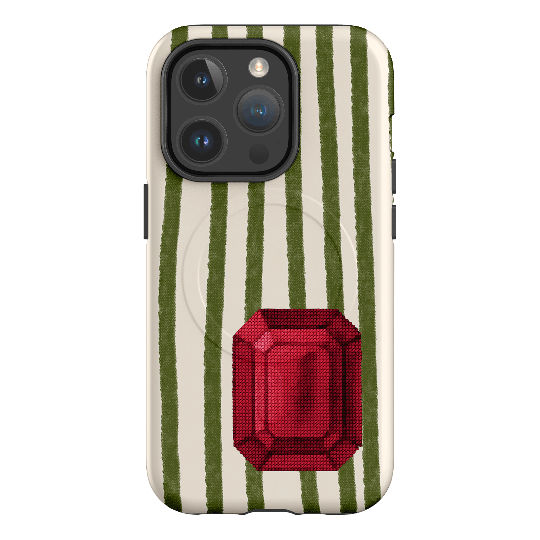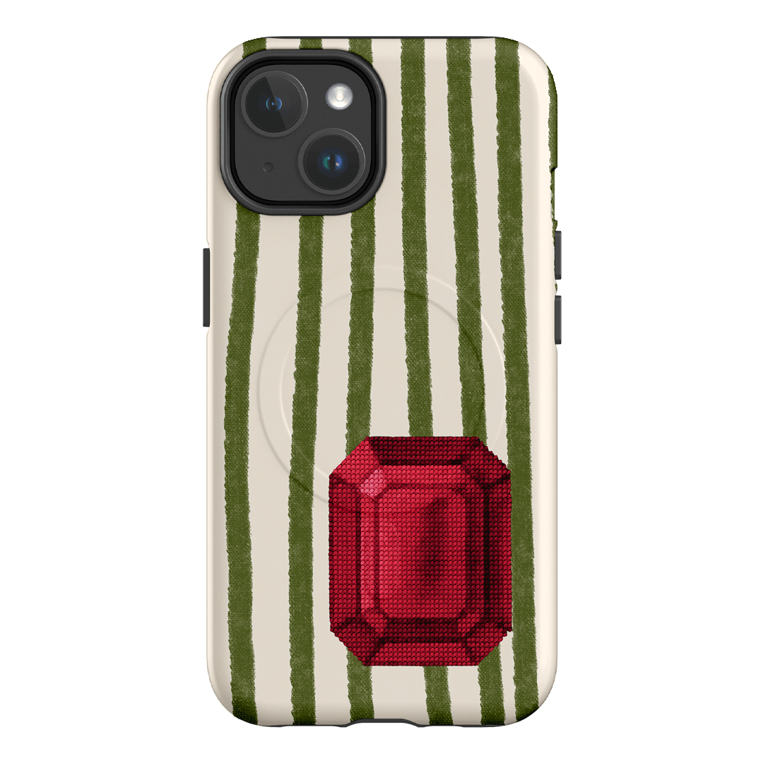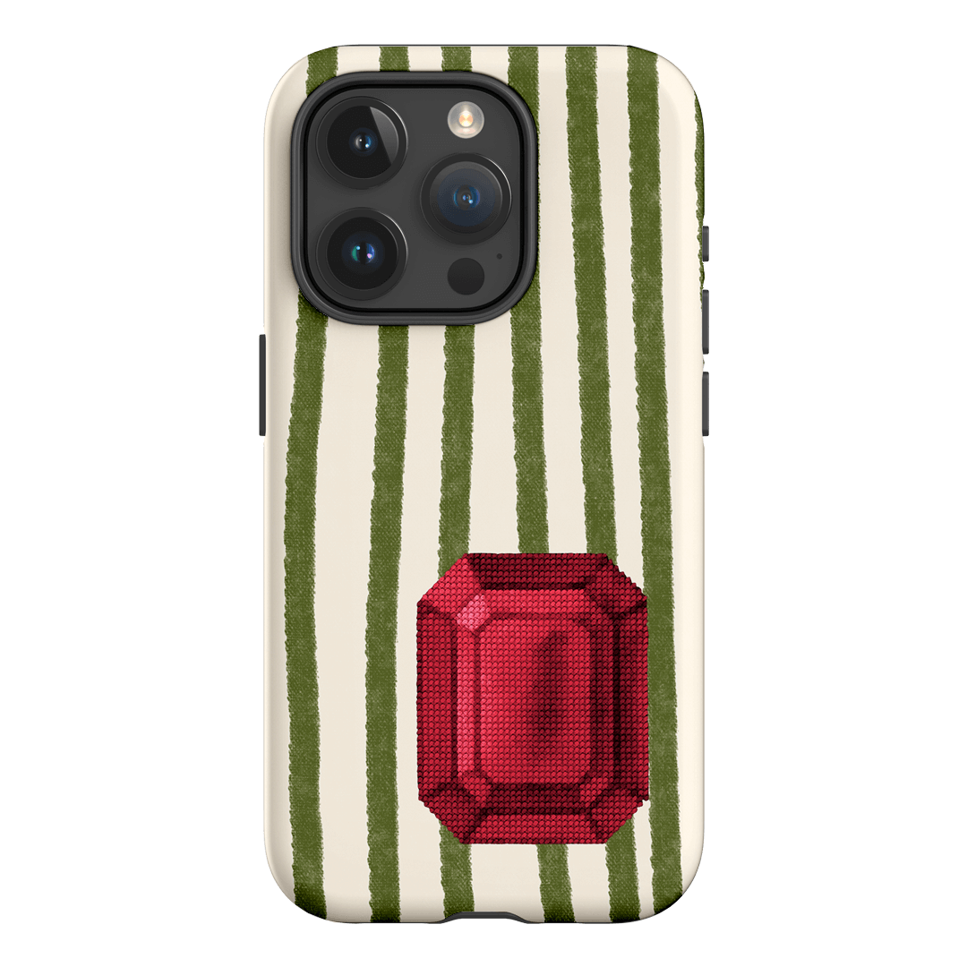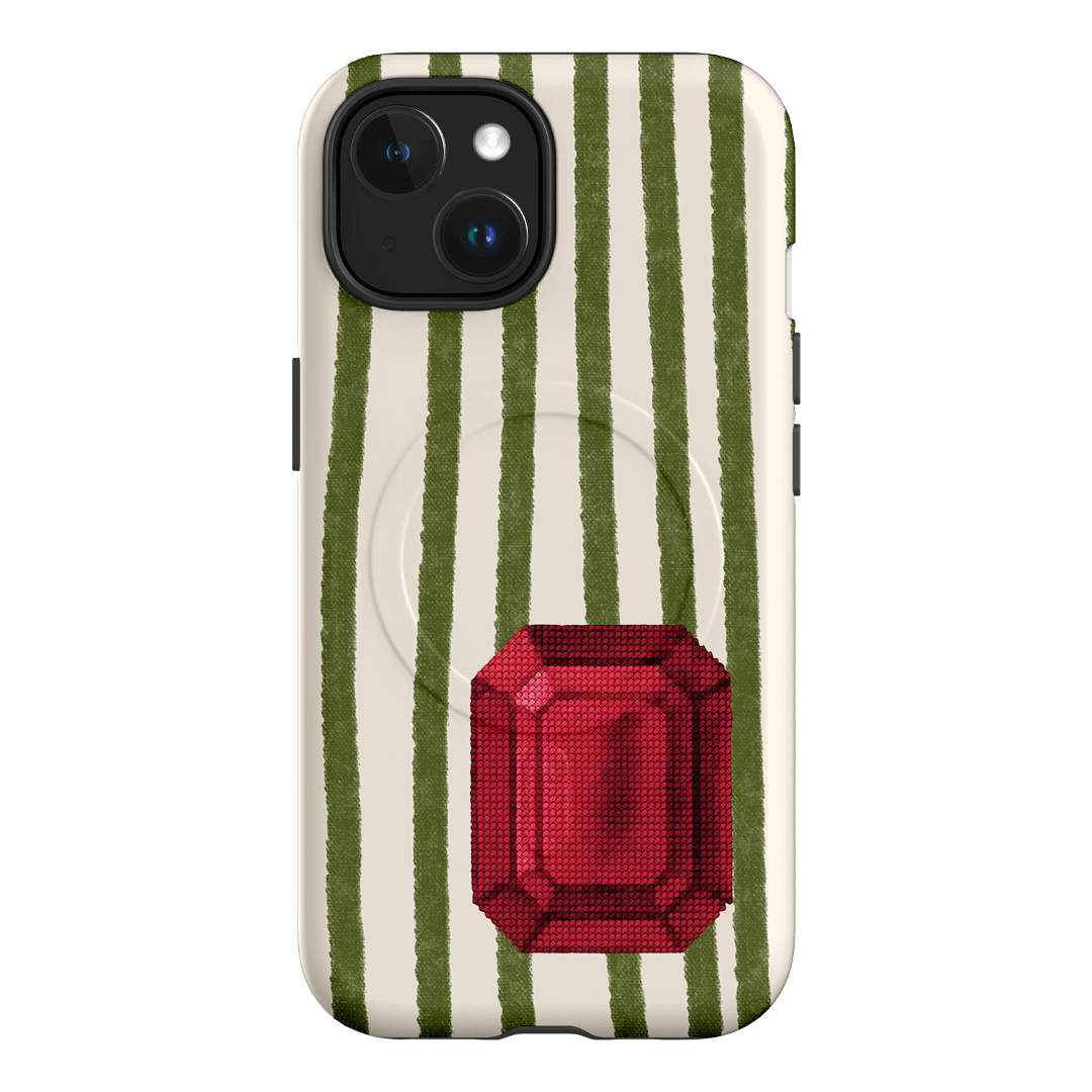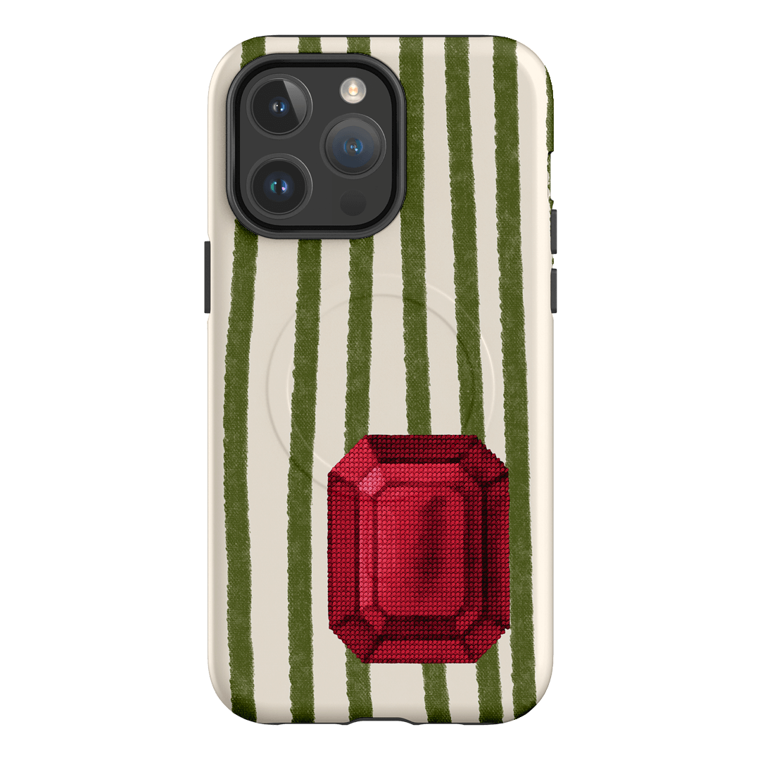 Part of the Birthstone Phone Case Collection, this design is made to celebrate your month, your mood, or simply your impeccable taste. Featuring a bold green striped background and a vibrant illustrated Ruby front and centre, it’s the perfect mix of passion and polish, like a summer fling that never ends.