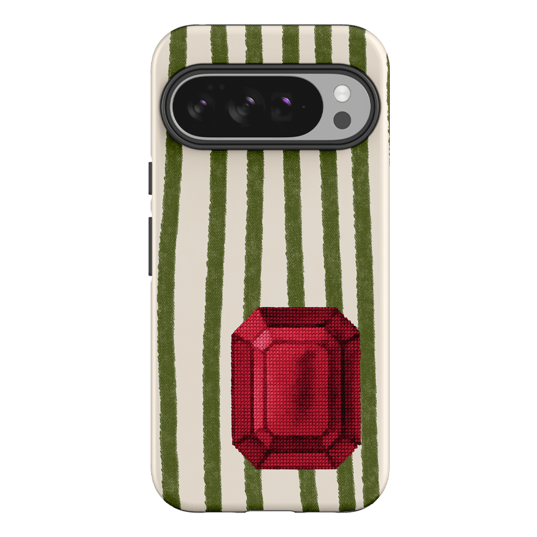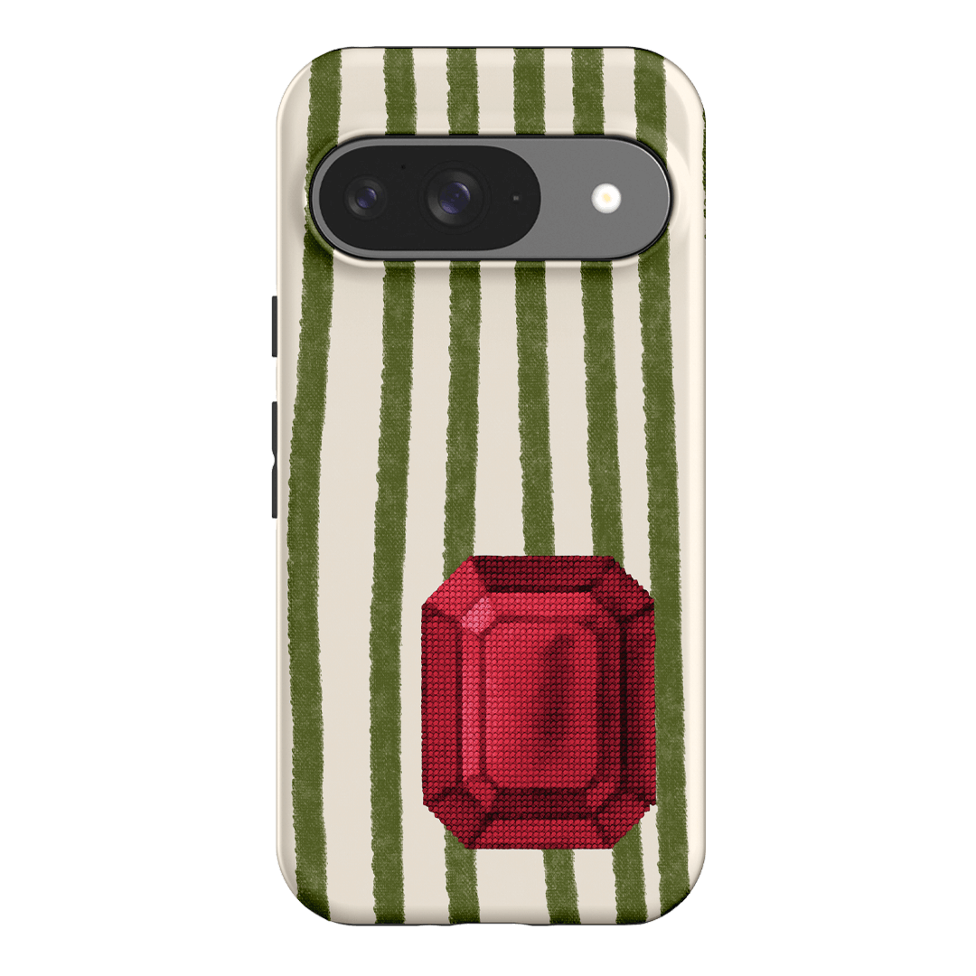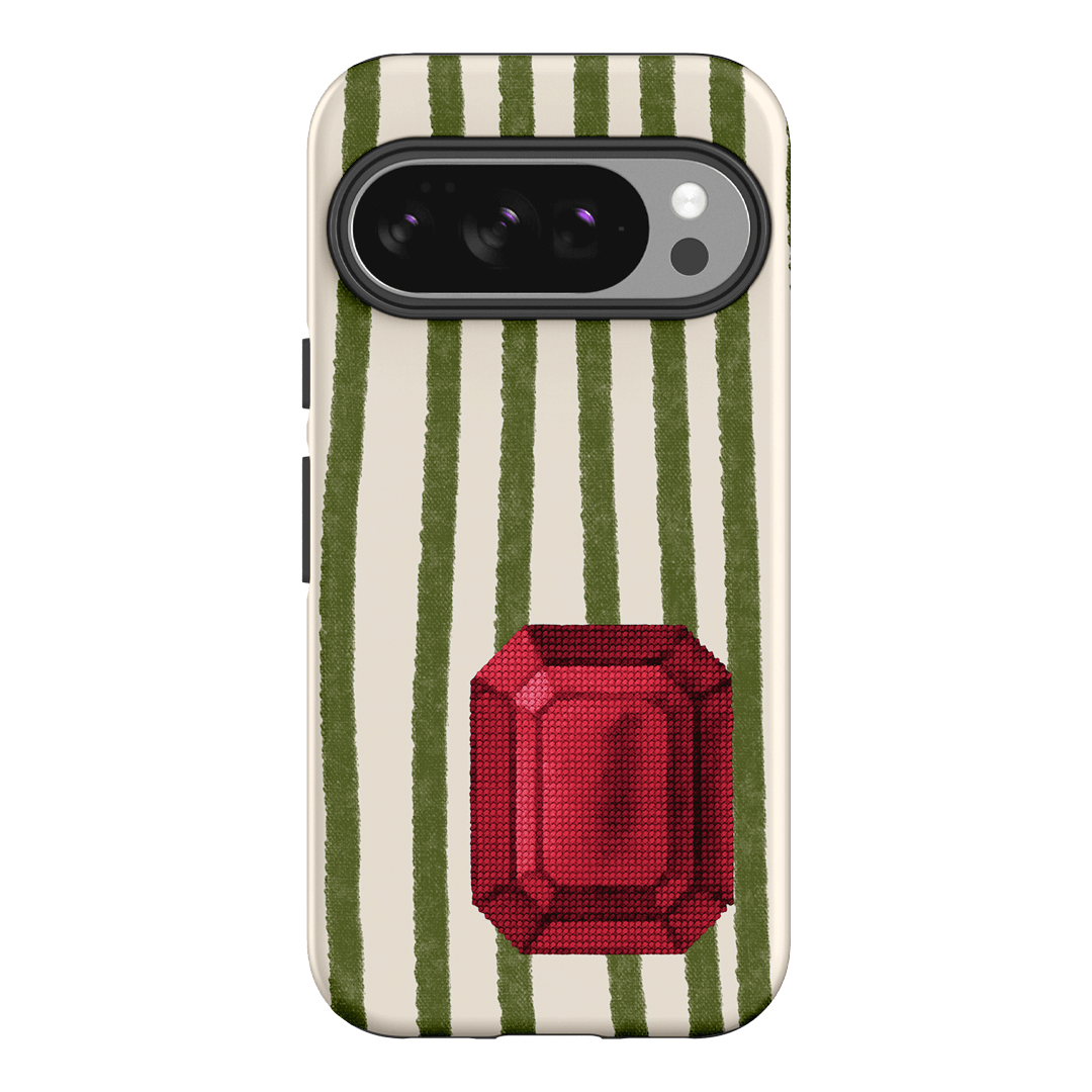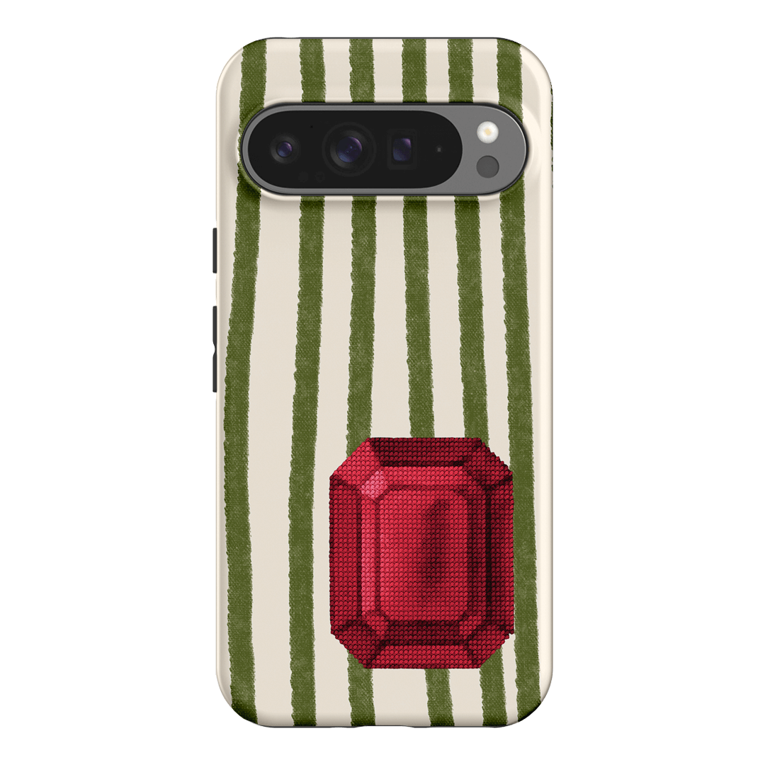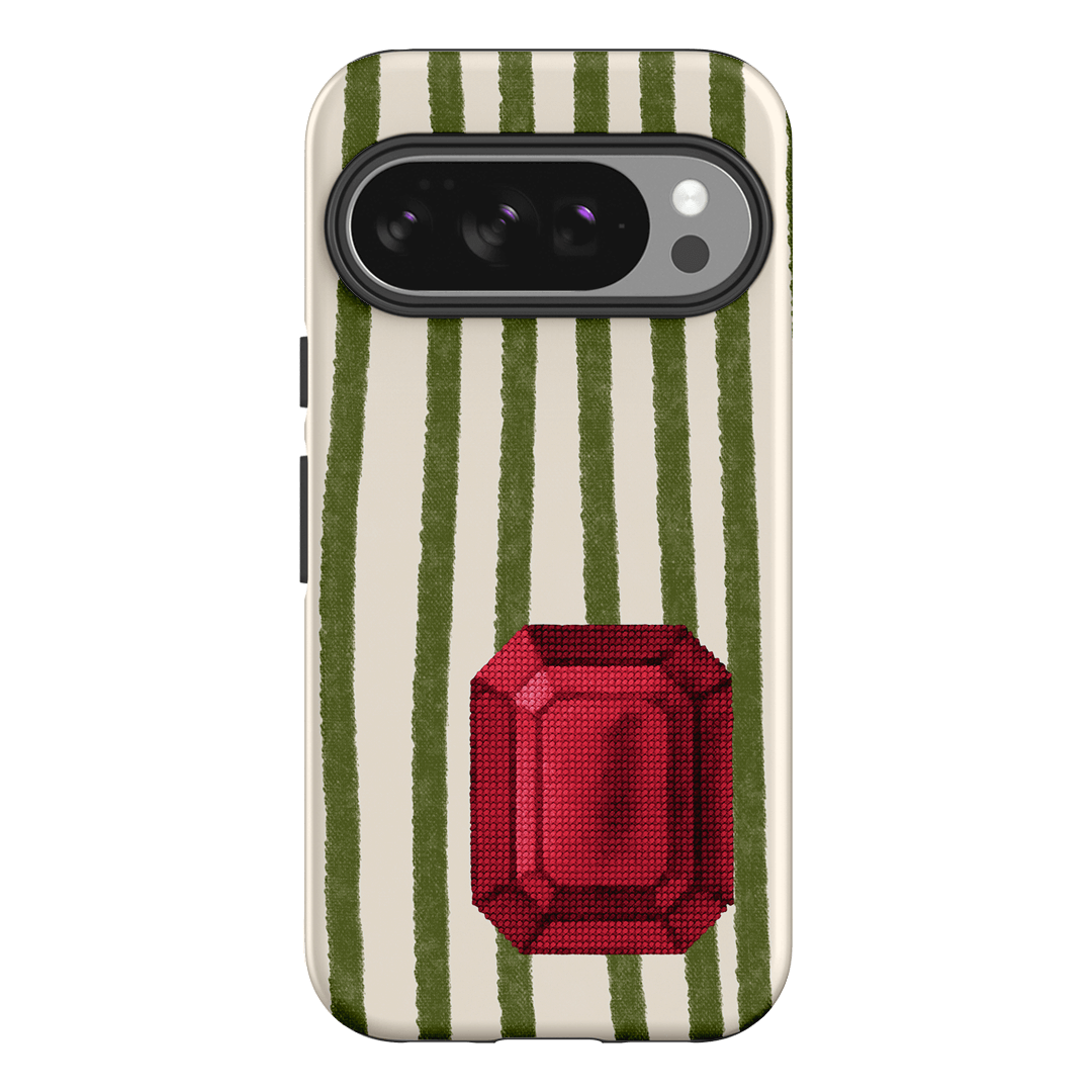 Part of the Birthstone Phone Case Collection, this design is made to celebrate your month, your mood, or simply your impeccable taste. Featuring a bold green striped background and a vibrant illustrated Ruby front and centre, it’s the perfect mix of passion and polish, like a summer fling that never ends.