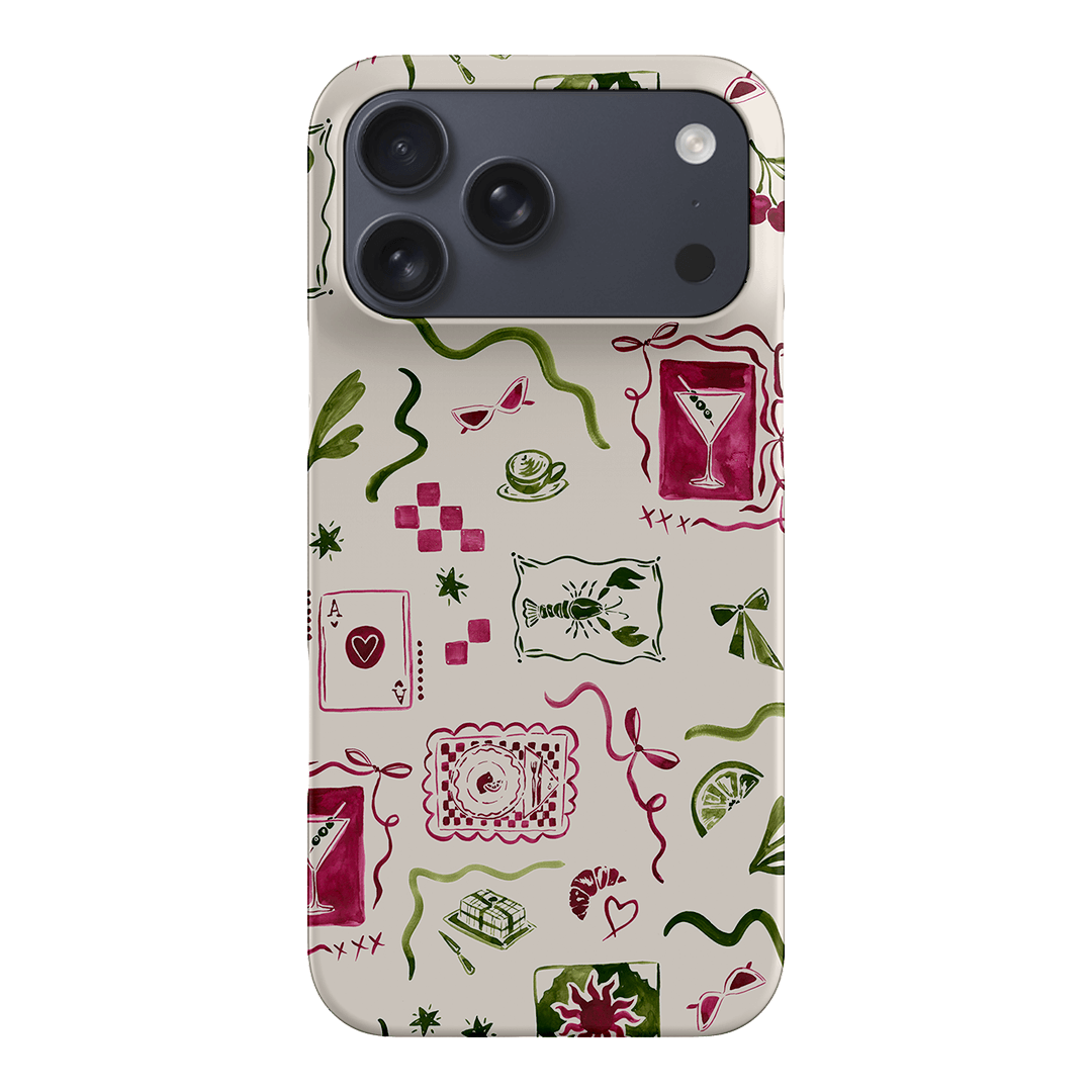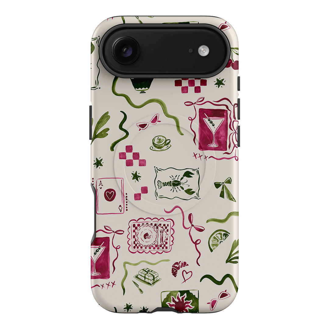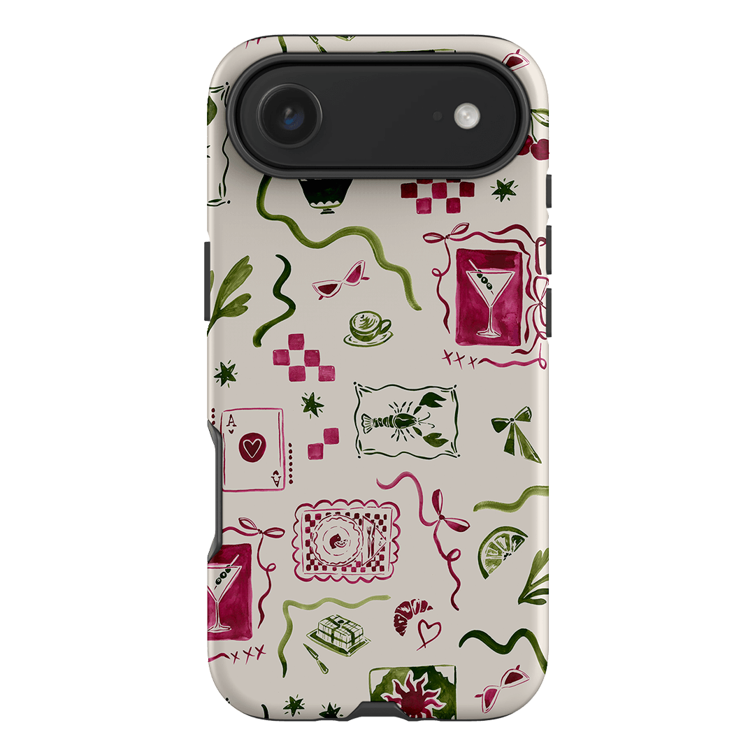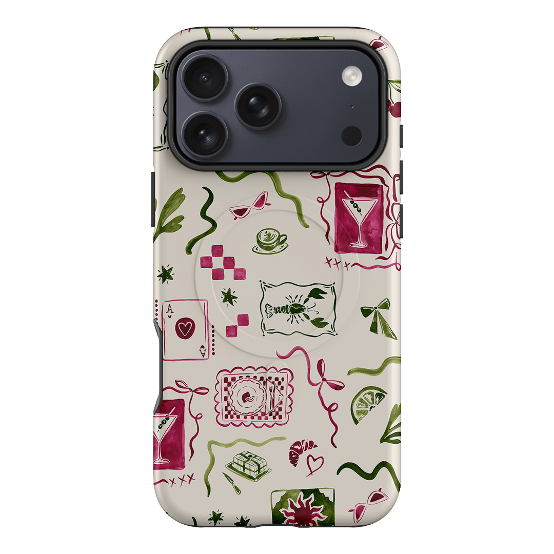 Say cheers to style with our Martini Gal phone case! This playful design features a whimsical mix of martinis, croissants, ribbons, and cards (to name a few), all illustrated in vibrant tones of deep red wine and rich greens against a chic beige backdrop. Perfect for anyone with a taste for the finer (and fun) things in life, this case offers a blend of personality and protection. Made from durable materials, Martini Gal keeps your phone safe while adding a dash of flair. Please note: reds may print darker than they appear on-screen, enhancing the mood of this unique design.