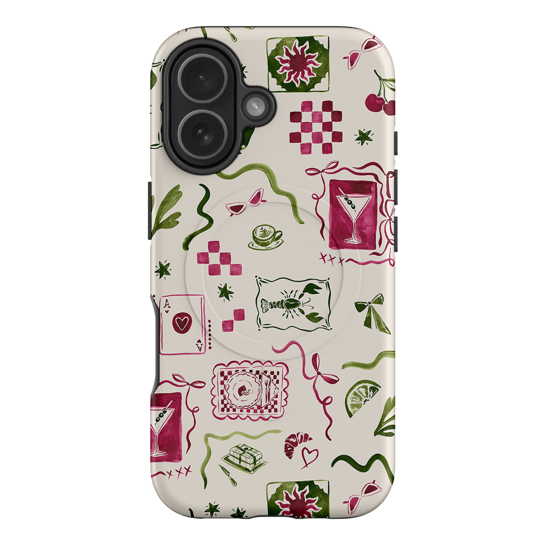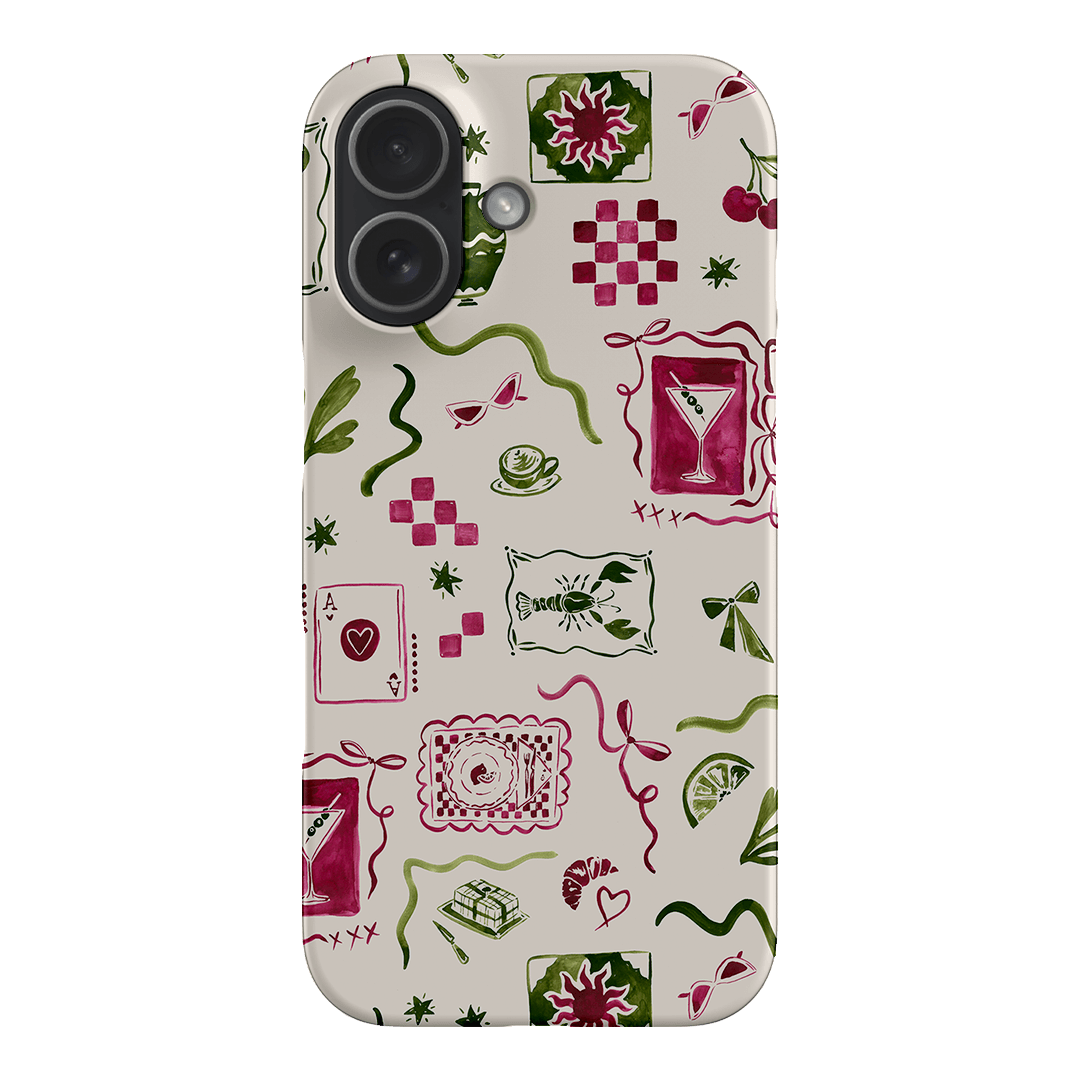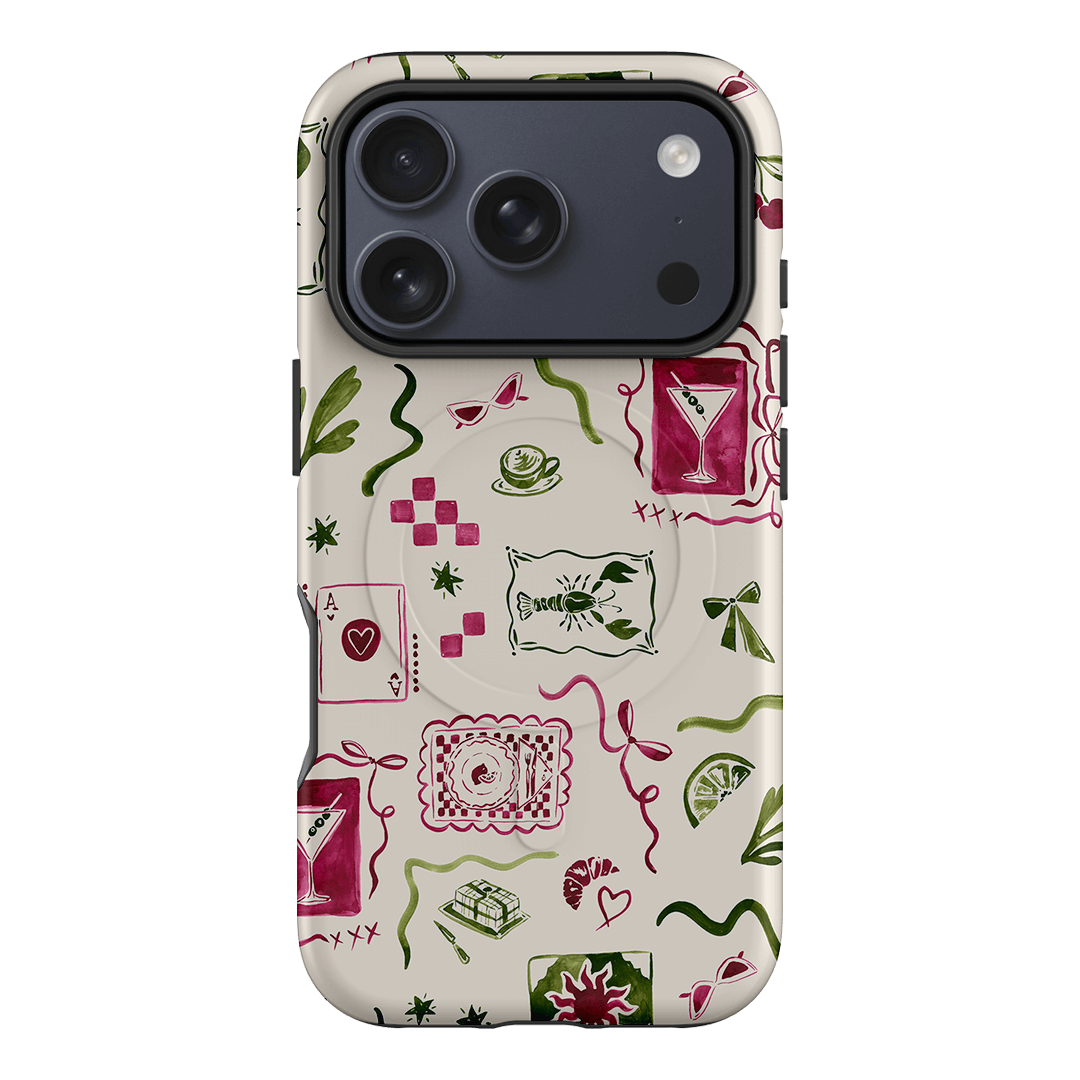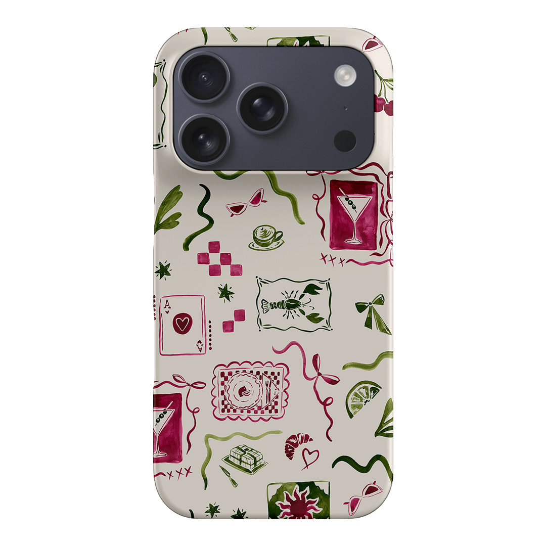 Say cheers to style with our Martini Gal phone case! This playful design features a whimsical mix of martinis, croissants, ribbons, and cards (to name a few), all illustrated in vibrant tones of deep red wine and rich greens against a chic beige backdrop. Perfect for anyone with a taste for the finer (and fun) things in life, this case offers a blend of personality and protection. Made from durable materials, Martini Gal keeps your phone safe while adding a dash of flair. Please note: reds may print darker than they appear on-screen, enhancing the mood of this unique design.
