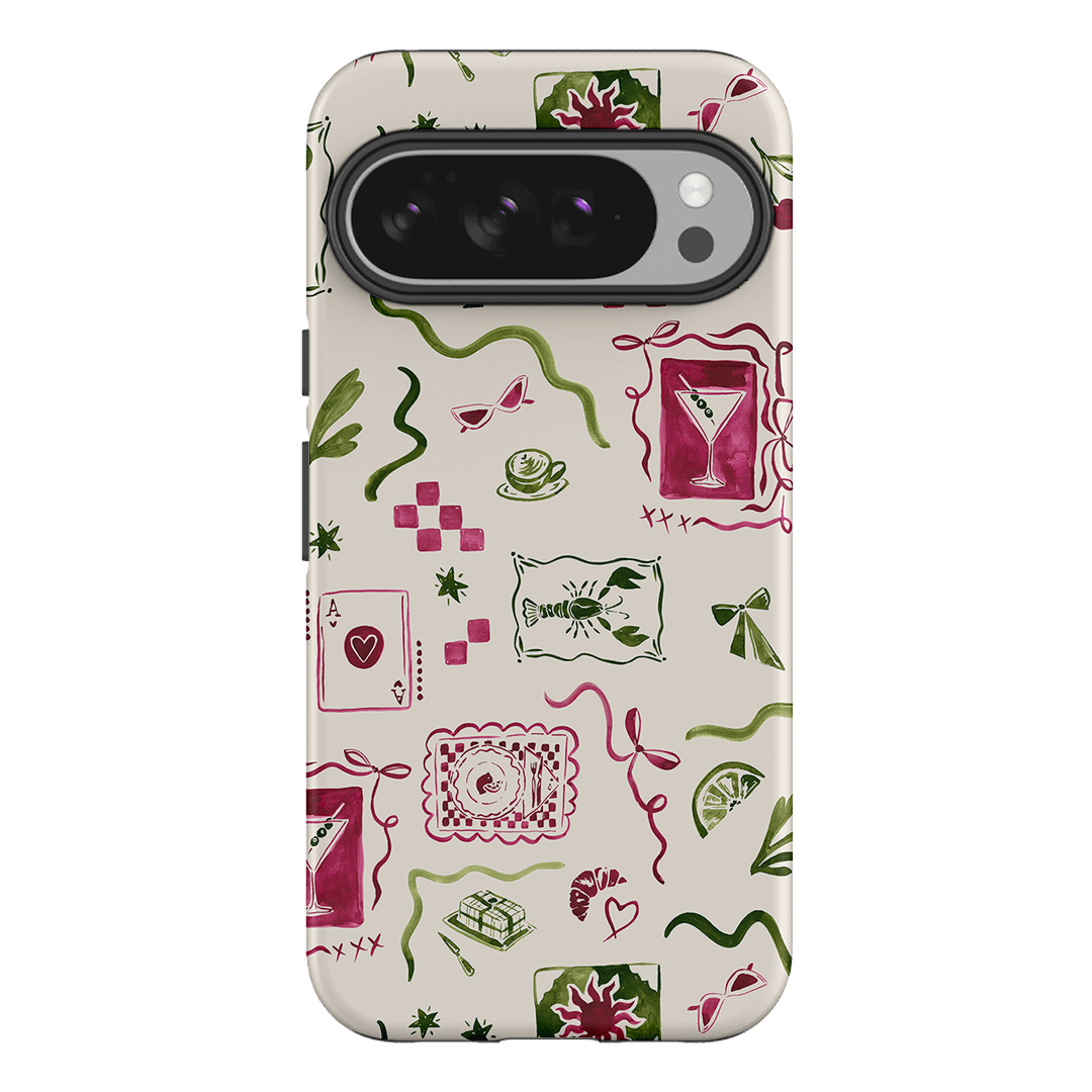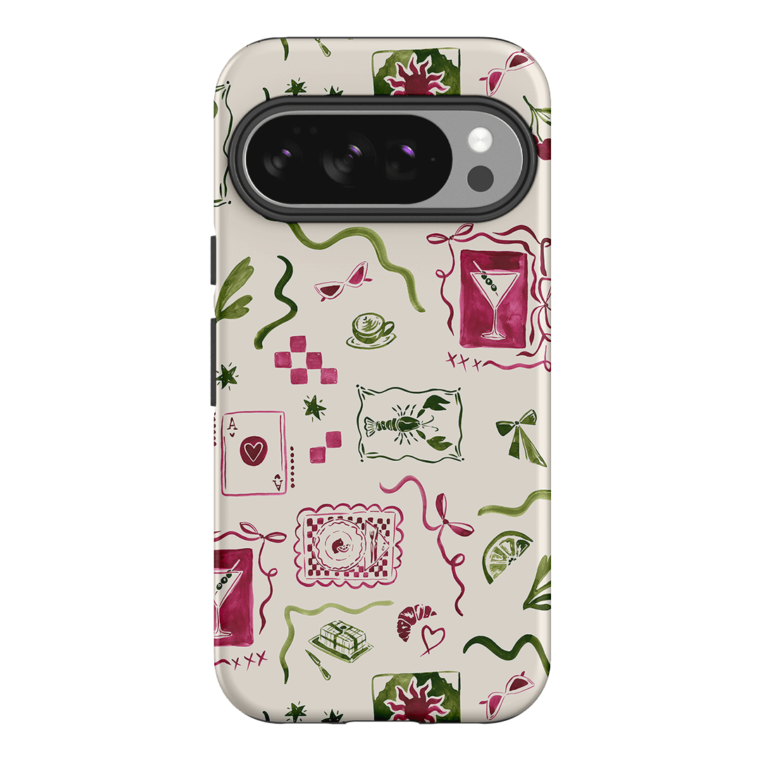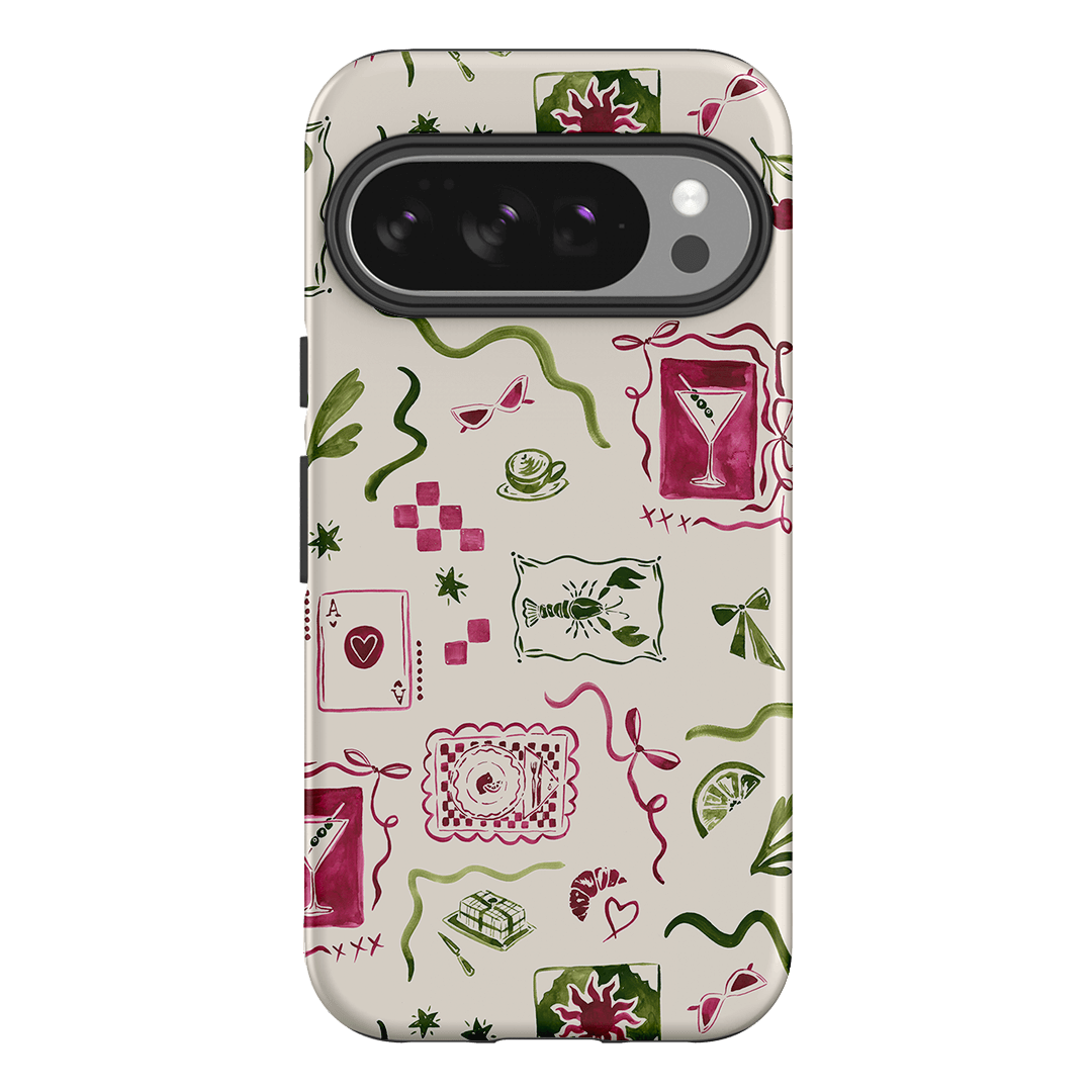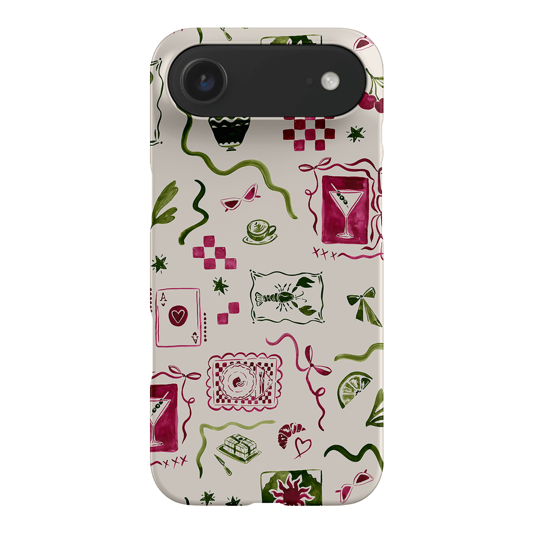 Say cheers to style with our Martini Gal phone case! This playful design features a whimsical mix of martinis, croissants, ribbons, and cards (to name a few), all illustrated in vibrant tones of deep red wine and rich greens against a chic beige backdrop. Perfect for anyone with a taste for the finer (and fun) things in life, this case offers a blend of personality and protection. Made from durable materials, Martini Gal keeps your phone safe while adding a dash of flair. Please note: reds may print darker than they appear on-screen, enhancing the mood of this unique design.