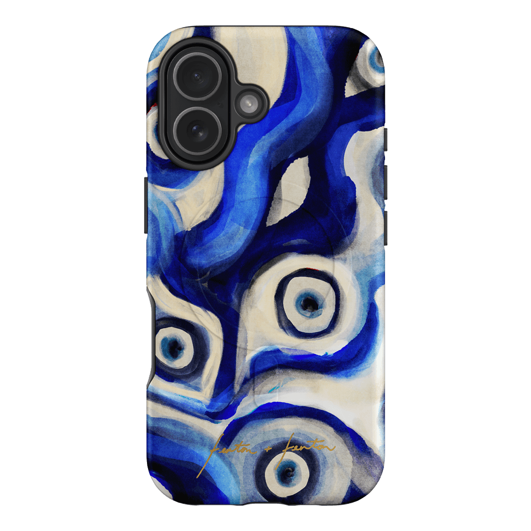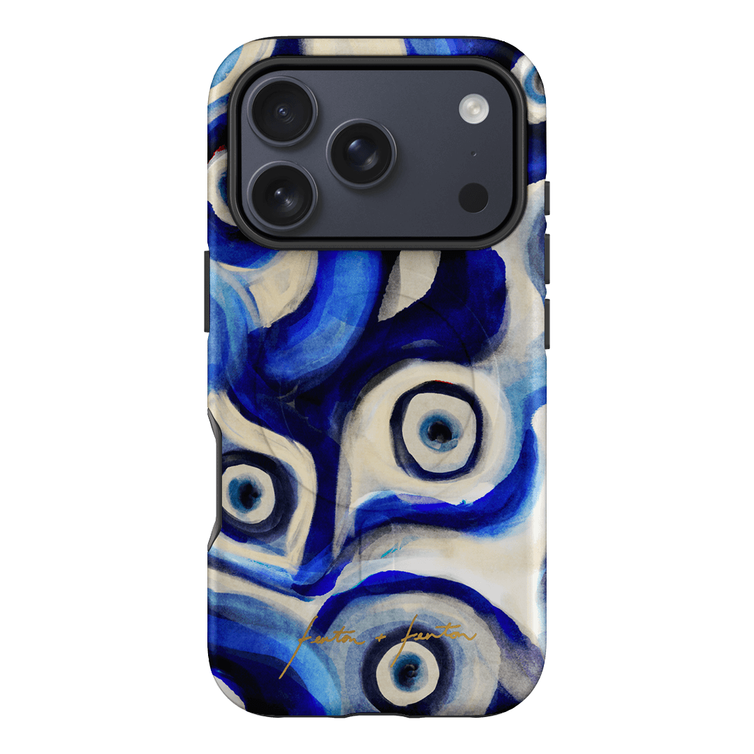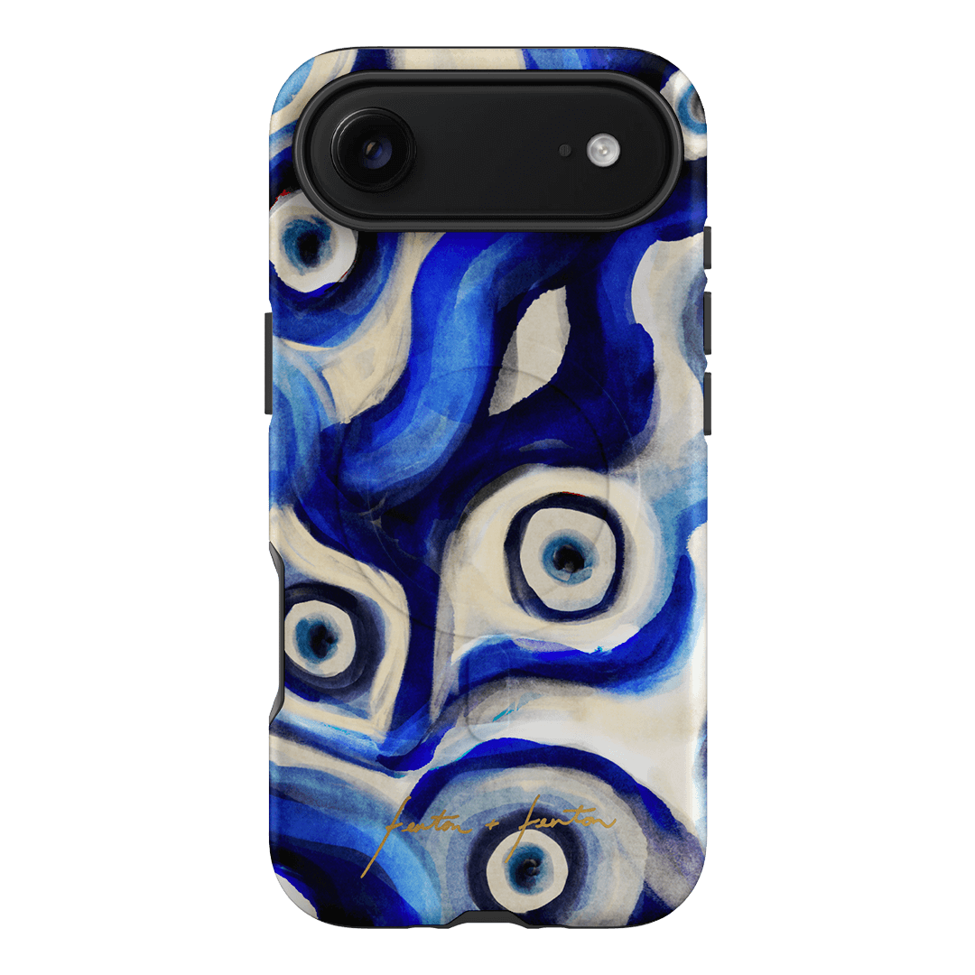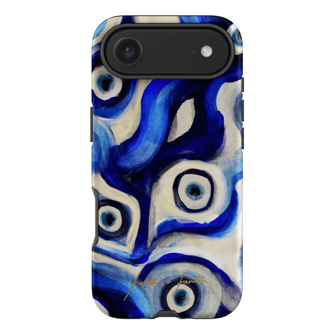 Introducing the Mati phone case, a blue evil eye pattern case that's perfect for your iPhone, Samsung Galaxy or Google Pixel phone. Crafted using our patented printing process, we've seamlessly embedded this striking design into the layers of a robust polycarbonate case. Choose between the lightweight and chic Snap case for a fashion-forward look or opt for the ultra-durable and protective Armoured case to safeguard your device with flair. Elevate your phone's aesthetics while ensuring top-notch protection with this unique accessory.