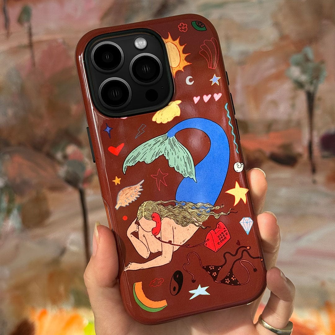 Swim into something a little richer, a little moodier, and just as delightfully odd with Mermaid Salad Chocolate, the decadent colourway from Easty Beasty that turns your phone into a piece of pocket-sized surrealism. Its retro beach nostalgia meets Easty Beasty’s signature coastal psychedelia, all wrapped up in rich brown hues that feel like a sunset melting into the ocean. The design is playful yet mysterious, like a vintage postcard from a seaside universe that only exists in your weirdest dreams. Whether you’re poolside, desk-bound or deep in existential conversation with your phone on speaker, Mermaid Salad Chocolate is the stylish sea siren sidekick you didn’t know you needed.