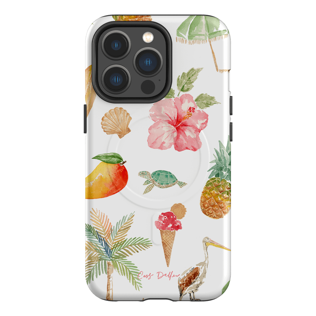 The Noosa cute phone case design is inspired by the lively, tropical vibes of Cass's coastal lifestyle. From juicy mangos to colourful hibiscus, dreamy palm trees to ripe pineapples, and even sea shells and beach umbrellas, this pattern captures the essence of summer in a playful and illustrative way. Perfect for any iPhone, Samsung Galaxy, or Google Pixel phone. We suggest opting for the armoured for extra peace of mind and protection.