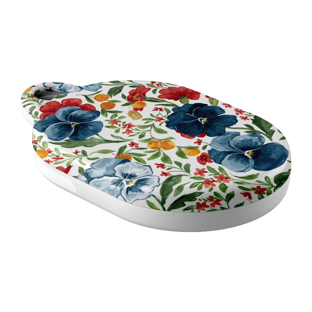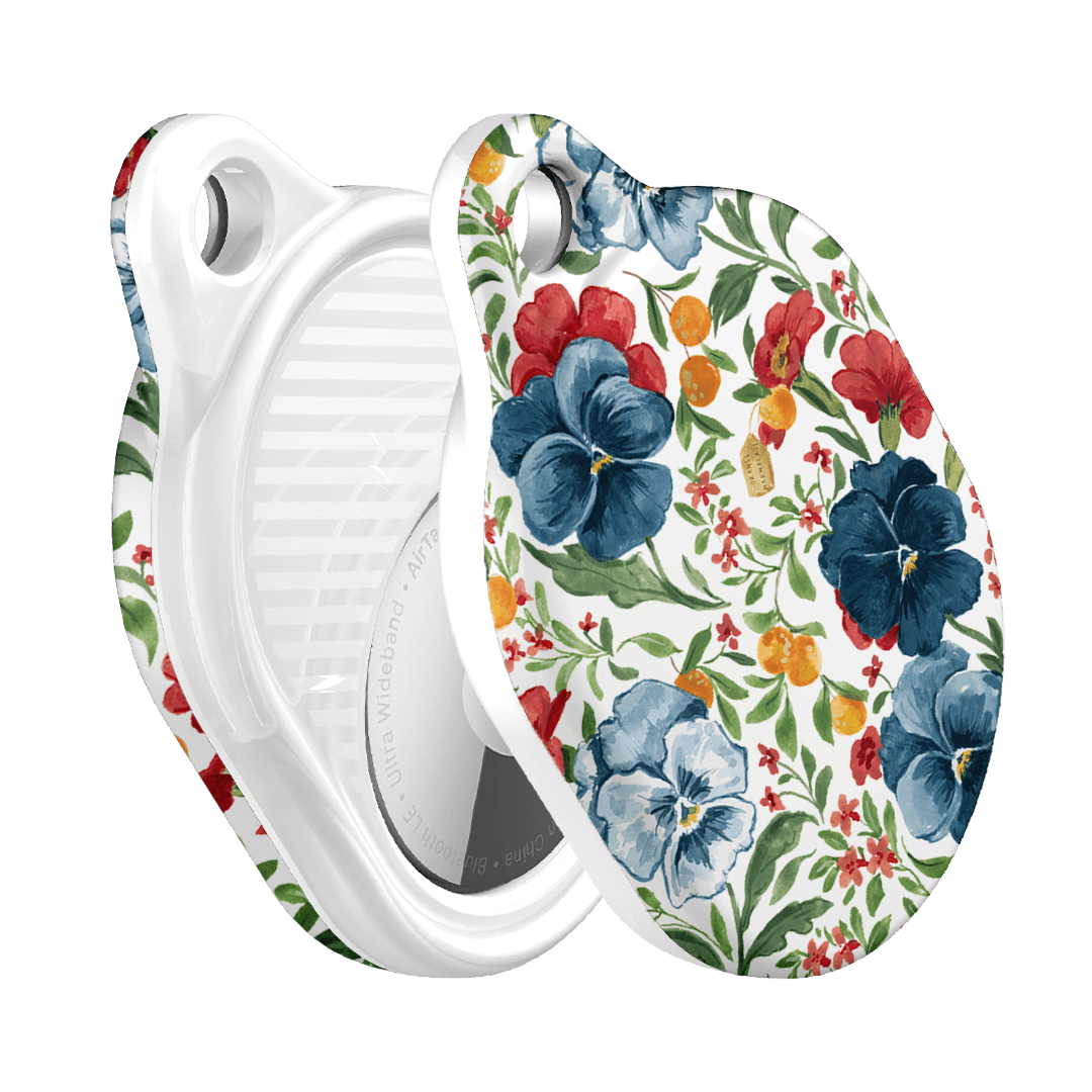 The Orange Marmalade design, part of Ellie’s Hidden Muse collection, features vibrant blue flowers, along with rich red and orange blossoms, creating a lively, botanical masterpiece. The bold colours and intricate details of this design capture the essence of nature’s hidden wonders, blending warmth and elegance in a way that is uniquely Ellie’s. Every element is carefully hand-painted, ensuring that each AirTag case is a one-of-a-kind work of art.