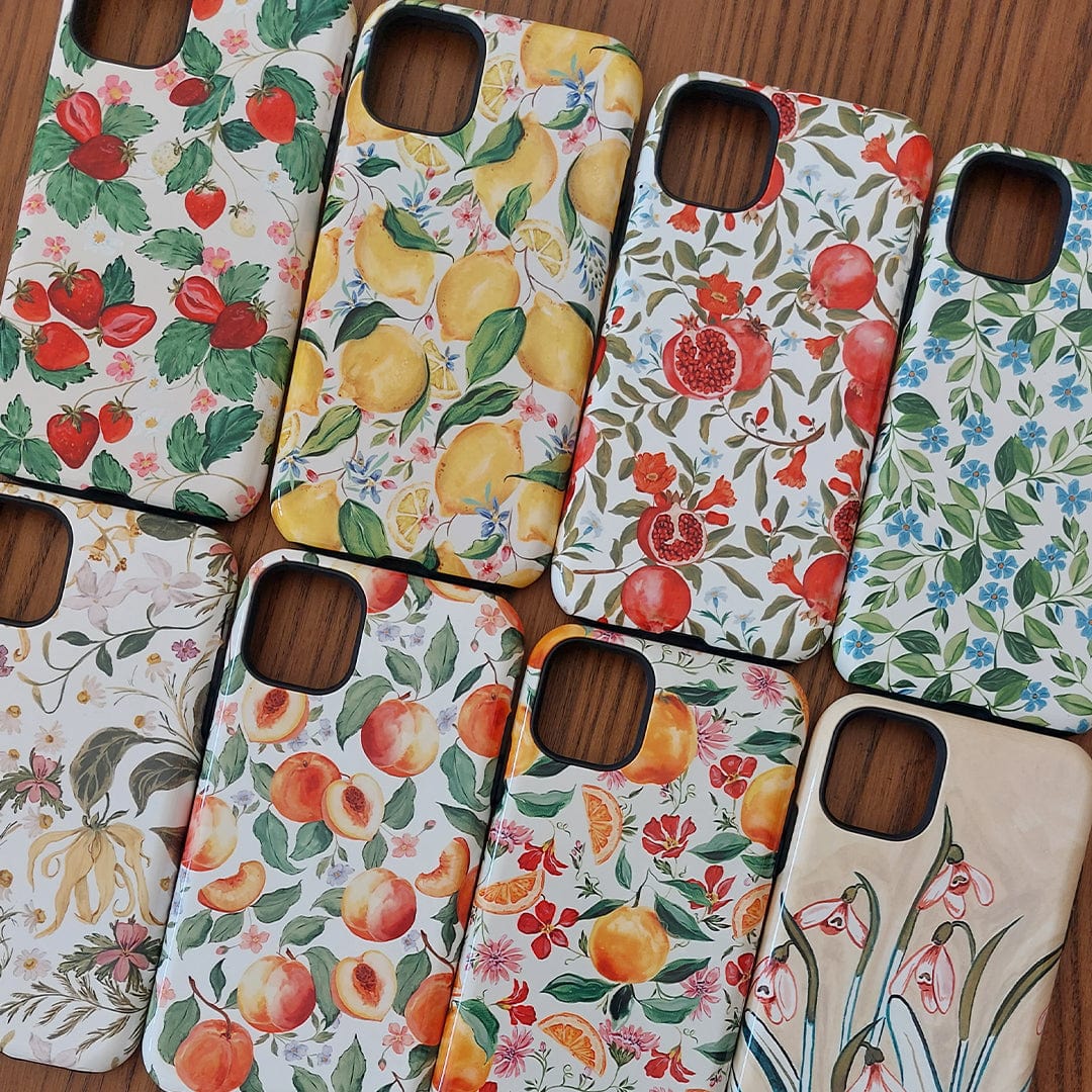 Bring a fresh, fruity charm to your everyday with the Peach Blossom phone case, a hand-painted design by British artist Ellie Mae. Known for her delicate, nature-inspired artwork, Ellie creates each piece in her idyllic countryside studio, drawing inspiration from flora, fruit, and the simple pleasures of rural life.