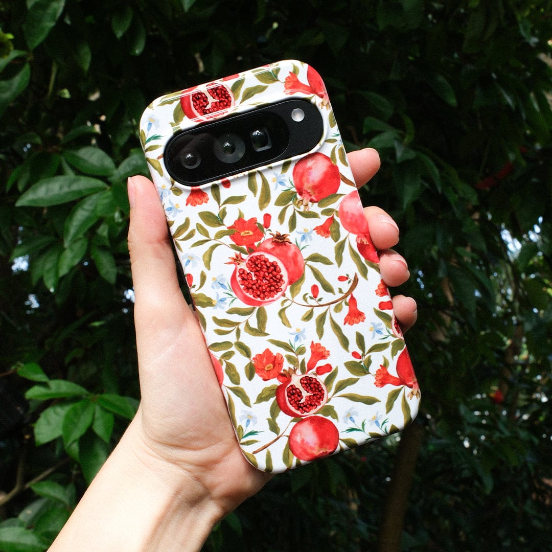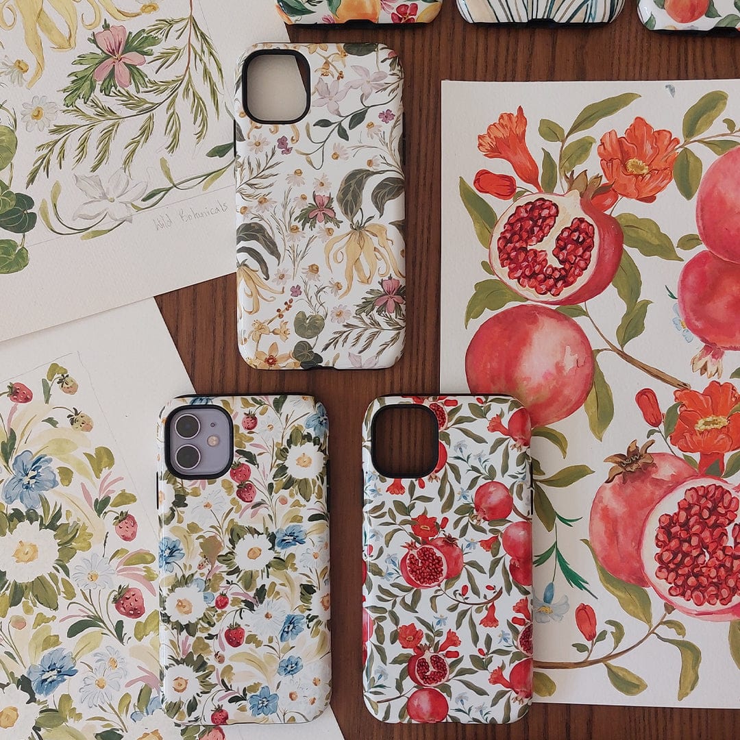 Celebrate the beauty of nature with the Pomegranate phone case, a vintage-inspired botanical design hand-painted by British artist Ellie Mae. Known for her timeless, nature-driven artwork, Ellie creates each piece in her charming studio nestled in the English countryside, drawing inspiration from flora, fruit, and life’s quiet joys.