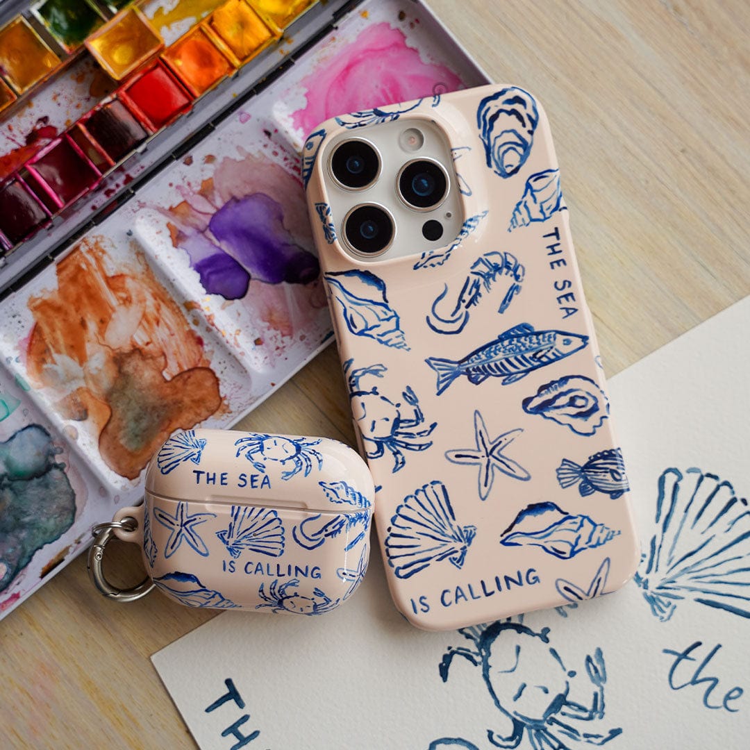 Answer the call of the ocean with the Sea Call AirPods case by artist Cass Deller. This mesmerising design showcases a collection of charming watercolour sea creatures, with the hand-painted phrase “the sea is calling” adding a poetic touch that evokes the allure of the deep blue.