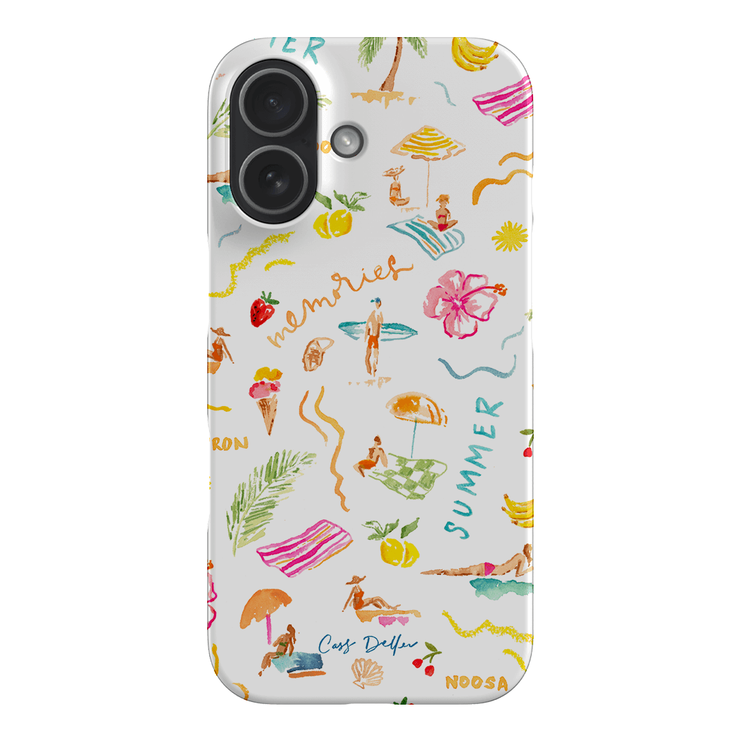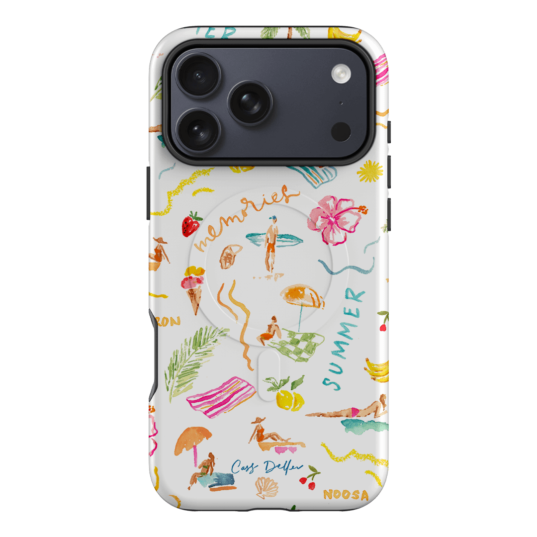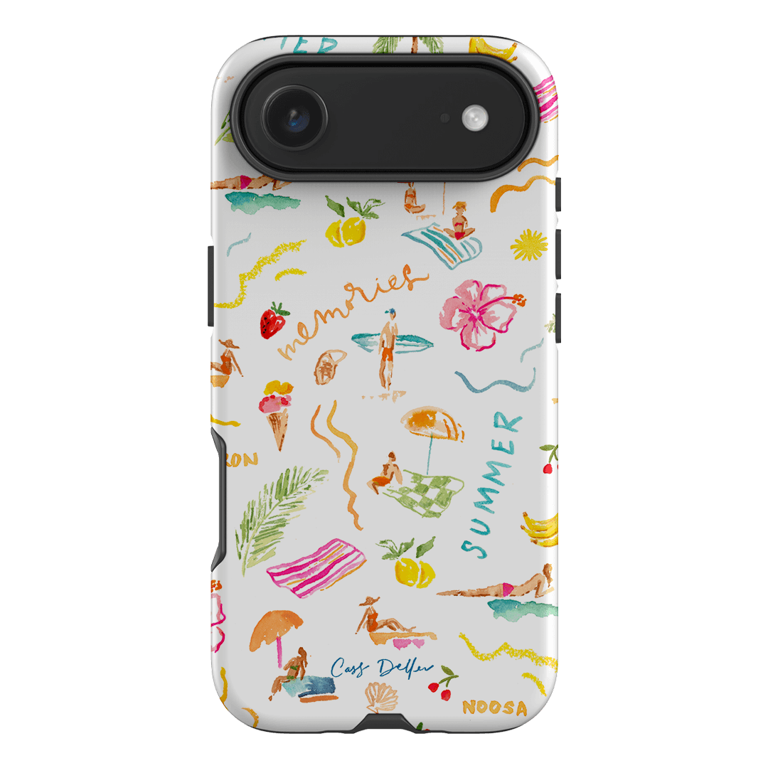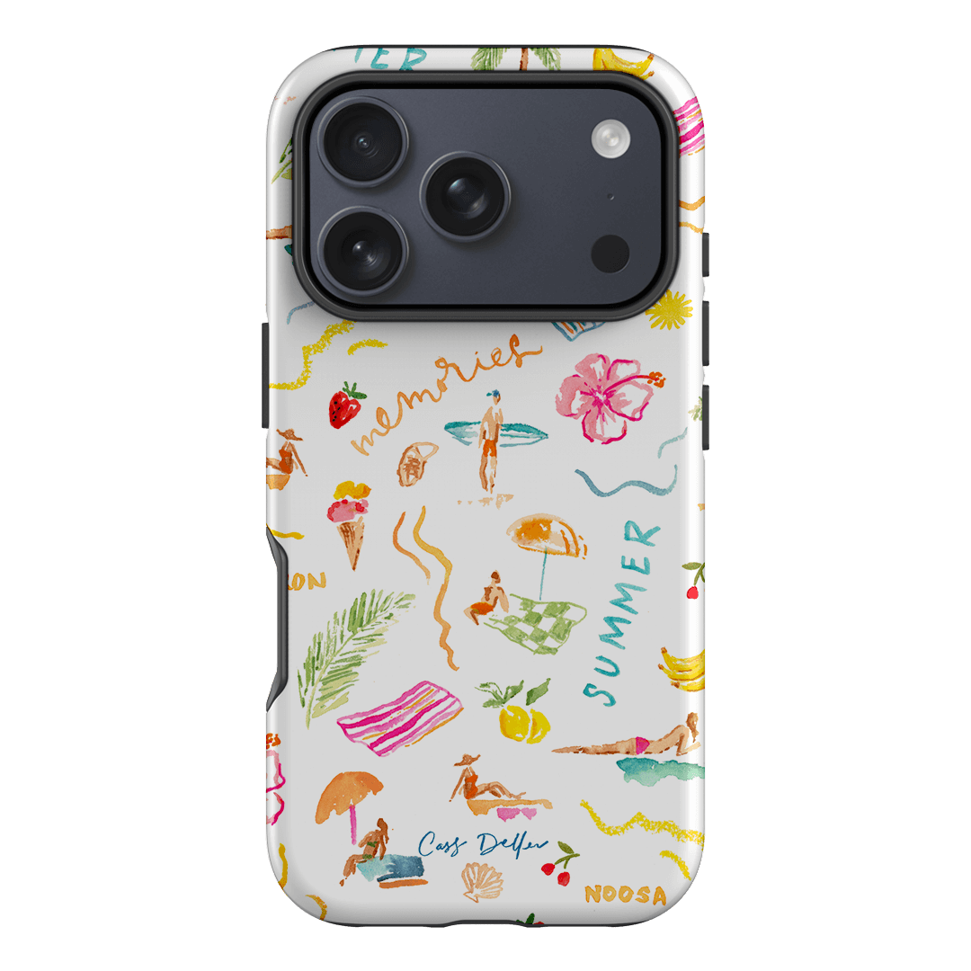Add a touch of summer fun to your daily routine with this whimsical phone case by Cass Deller. Its quirky design boasts citrus drinks, palms, beach scenes, pineapples, hibiscus, and shells, creating a lighthearted and sunny atmosphere. Available for iPhone, Samsung Galaxy and Google Pixel phones.