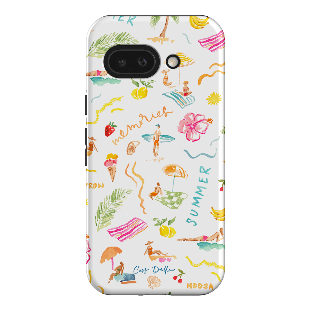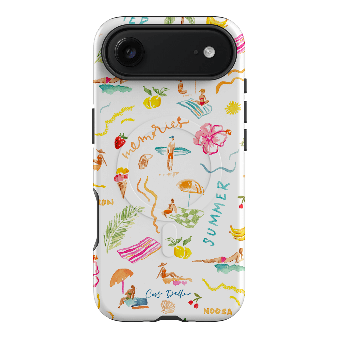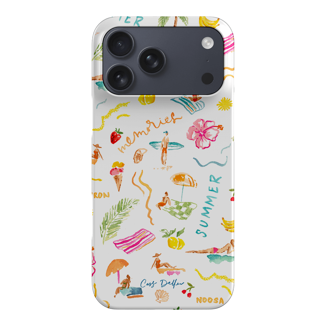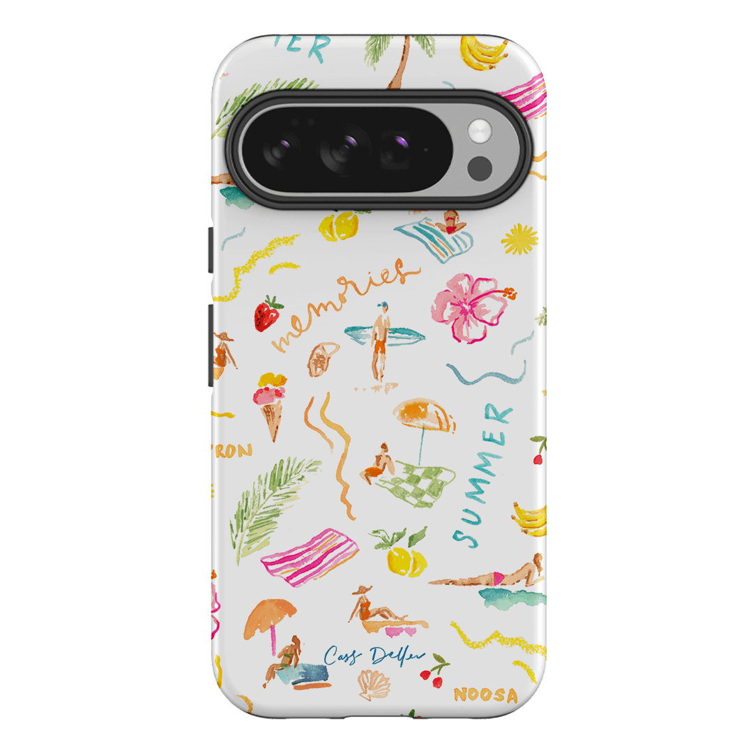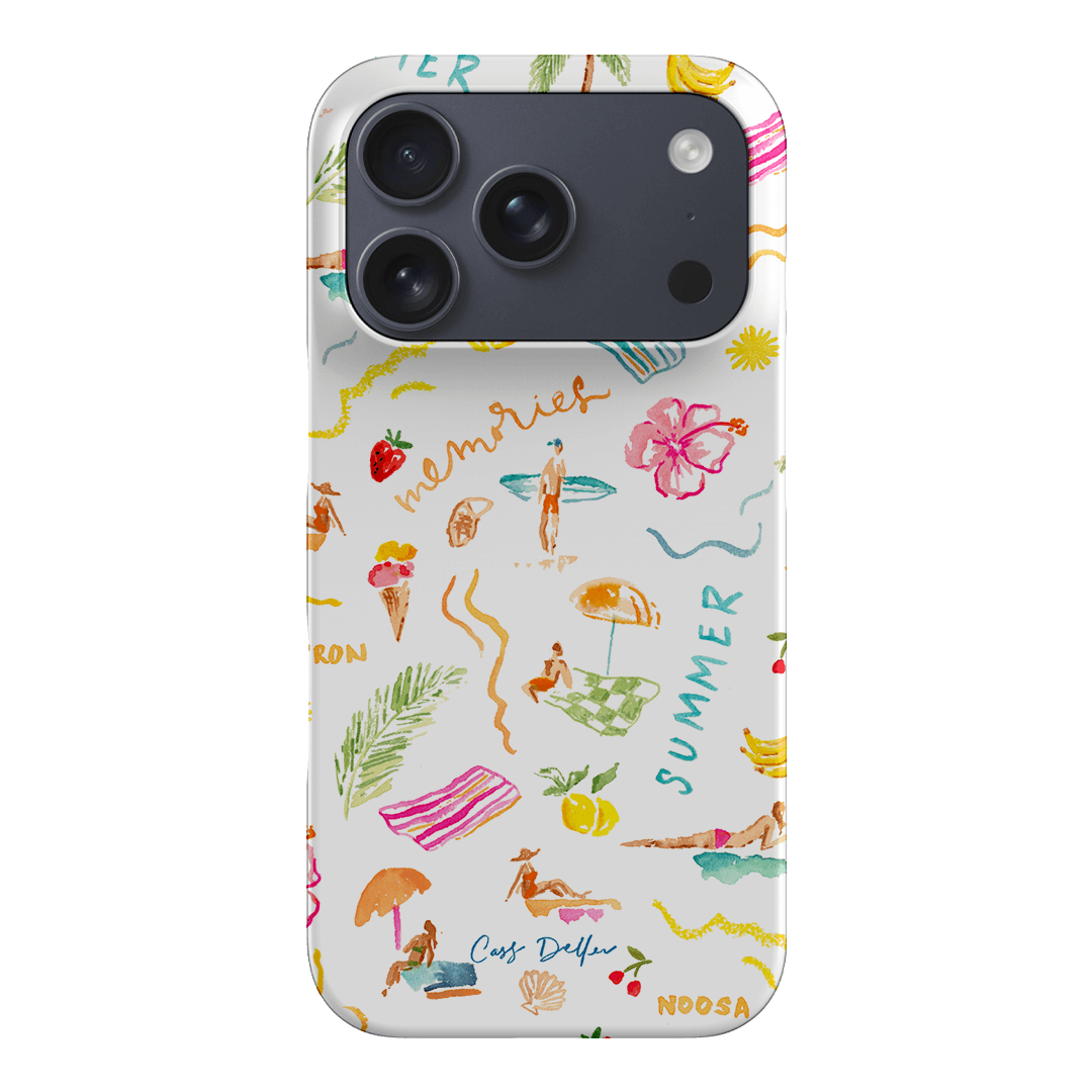 Add a touch of summer fun to your daily routine with this whimsical phone case by Cass Deller. Its quirky design boasts citrus drinks, palms, beach scenes, pineapples, hibiscus, and shells, creating a lighthearted and sunny atmosphere. Available for iPhone, Samsung Galaxy and Google Pixel phones.