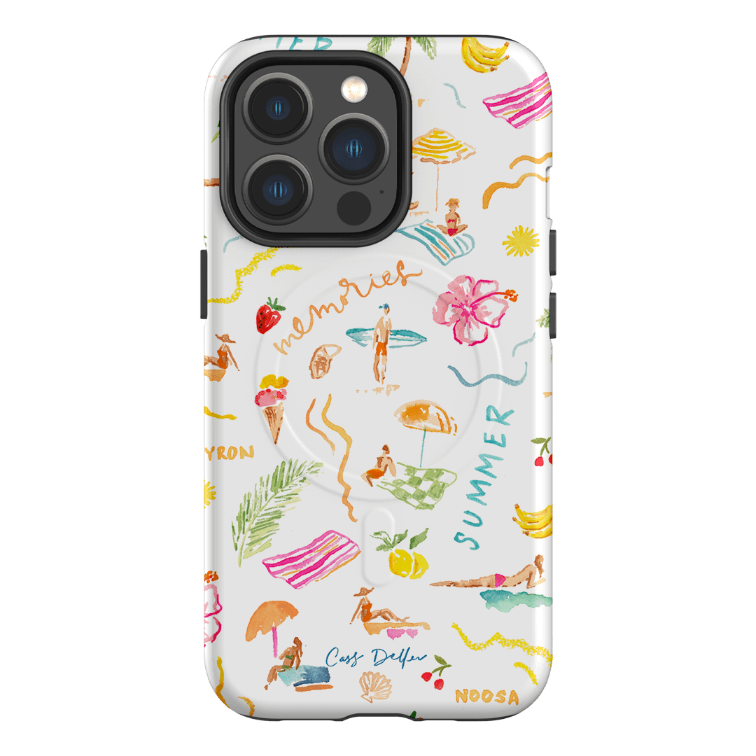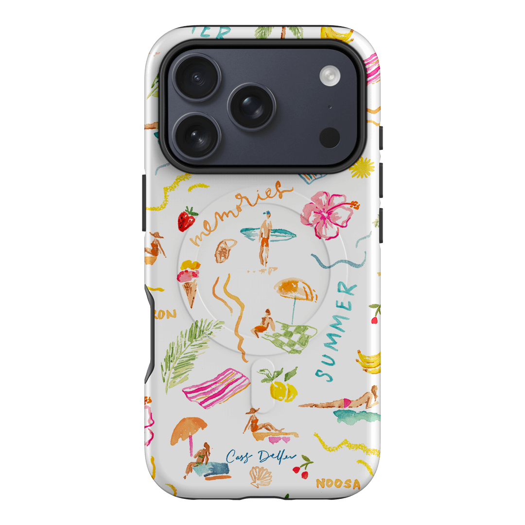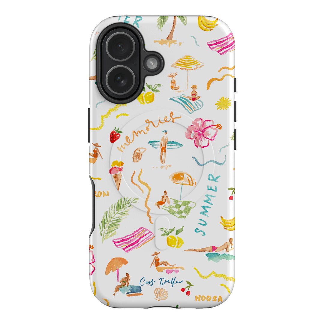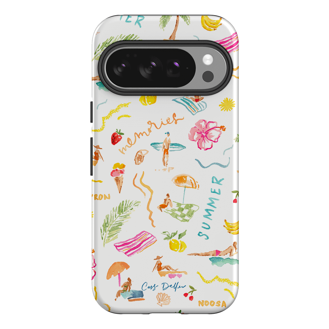 Add a touch of summer fun to your daily routine with this whimsical phone case by Cass Deller. Its quirky design boasts citrus drinks, palms, beach scenes, pineapples, hibiscus, and shells, creating a lighthearted and sunny atmosphere. Available for iPhone, Samsung Galaxy and Google Pixel phones.
