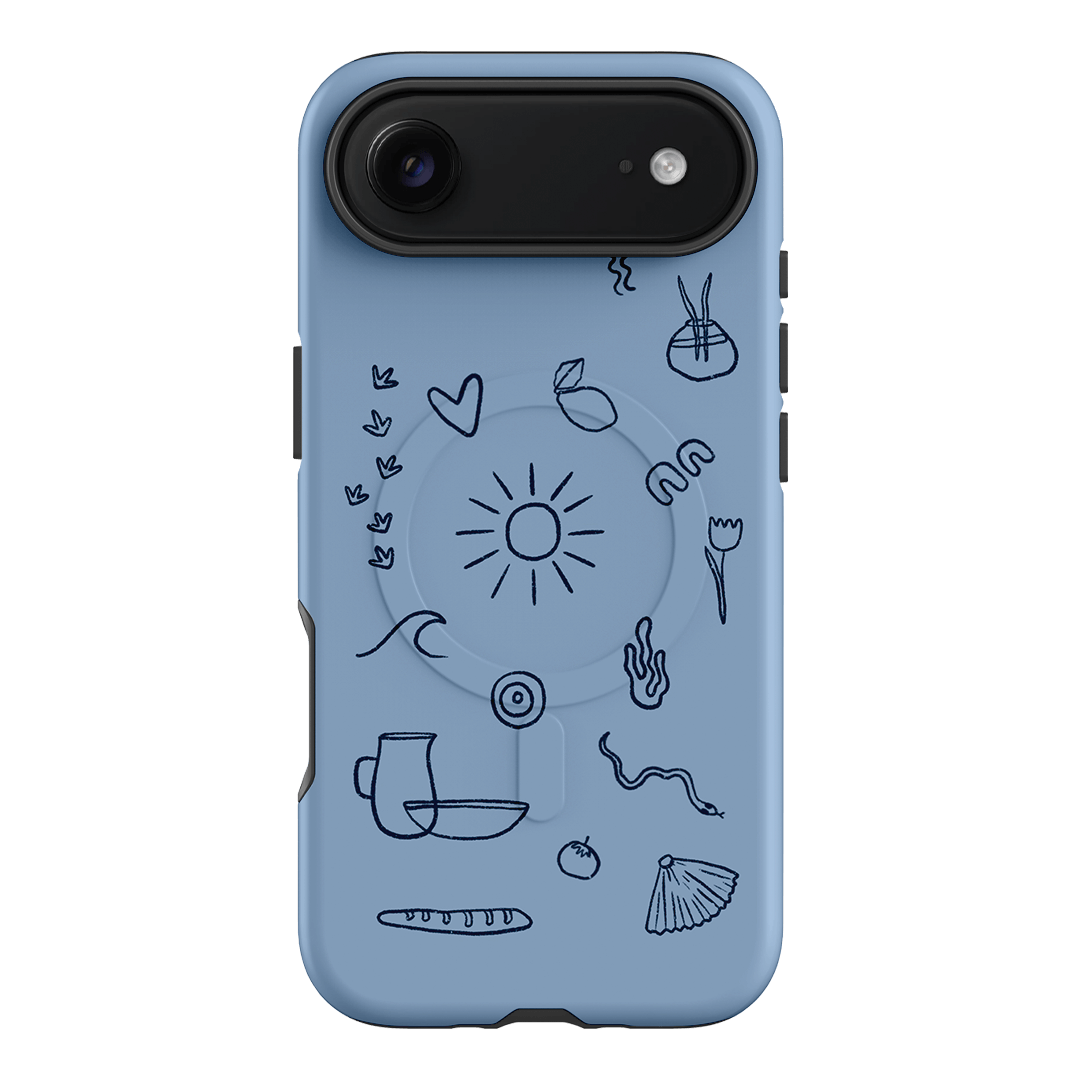 Celebrate the beauty of connection with this light blue phone case featuring unique illustrations by artist Ryhia. Adorned with various symbols and motifs, this design holds a heartfelt story, it represents the artist's parents, who come from different backgrounds yet complement each other perfectly.