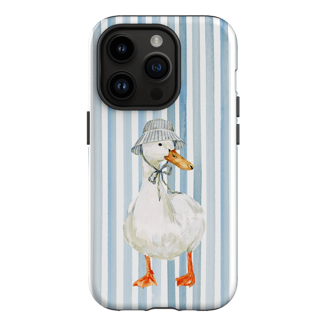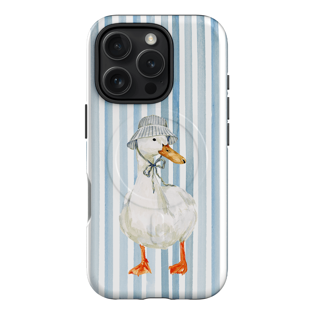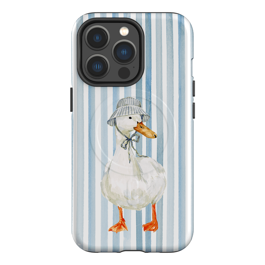 Say hello to Sunny Days by artist Ellie Mae. Featuring a confident white goose rocking a striped bucket hat against a crisp blue and white striped background, this design feels like summer in accessory form. It’s cheerful, a little cheeky, and exactly the kind of phone case that makes scrolling feel sunnier.