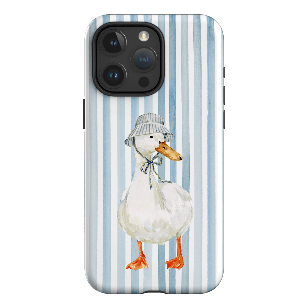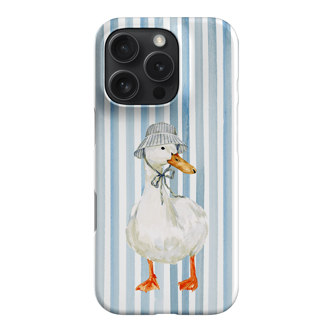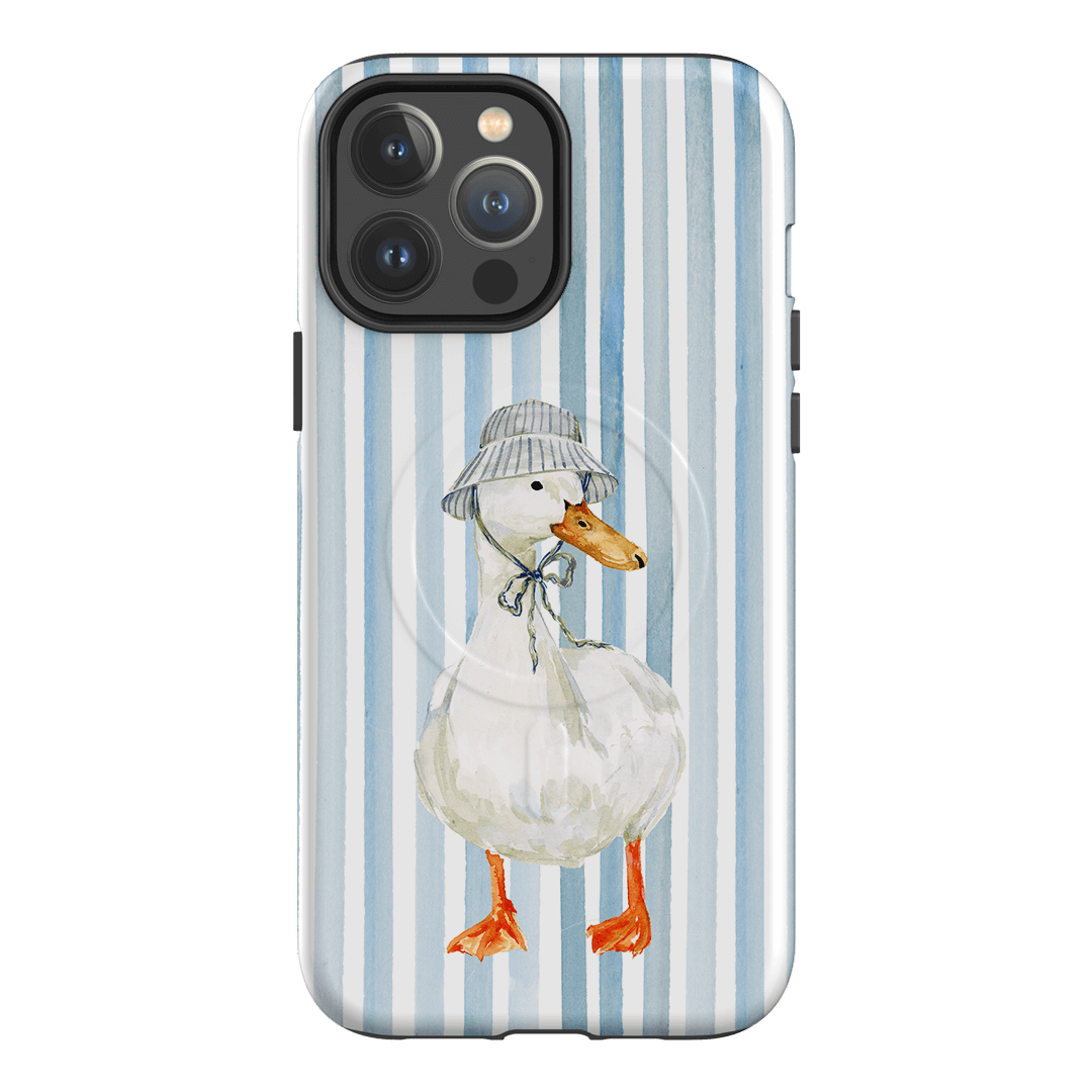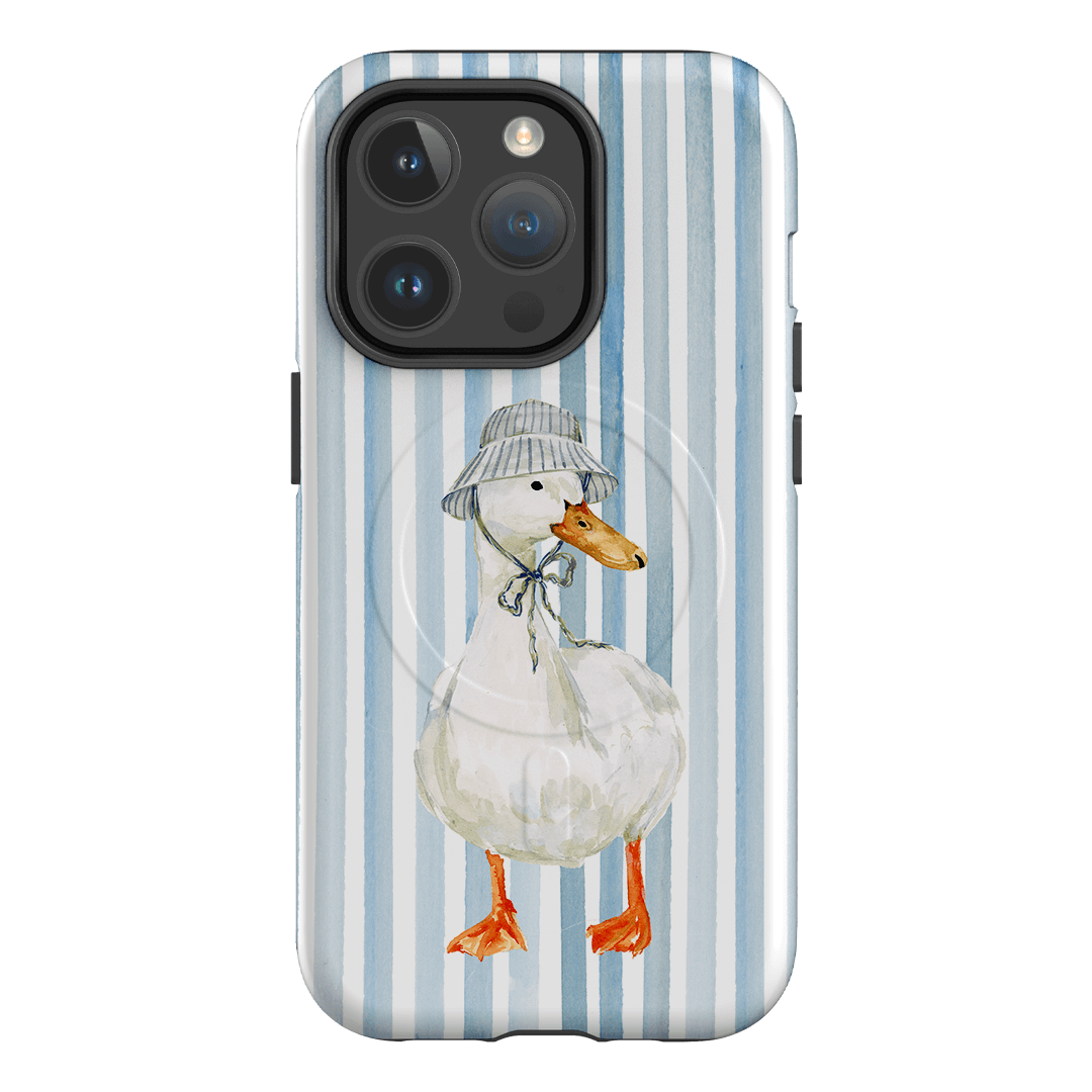 Say hello to Sunny Days by artist Ellie Mae. Featuring a confident white goose rocking a striped bucket hat against a crisp blue and white striped background, this design feels like summer in accessory form. It’s cheerful, a little cheeky, and exactly the kind of phone case that makes scrolling feel sunnier.