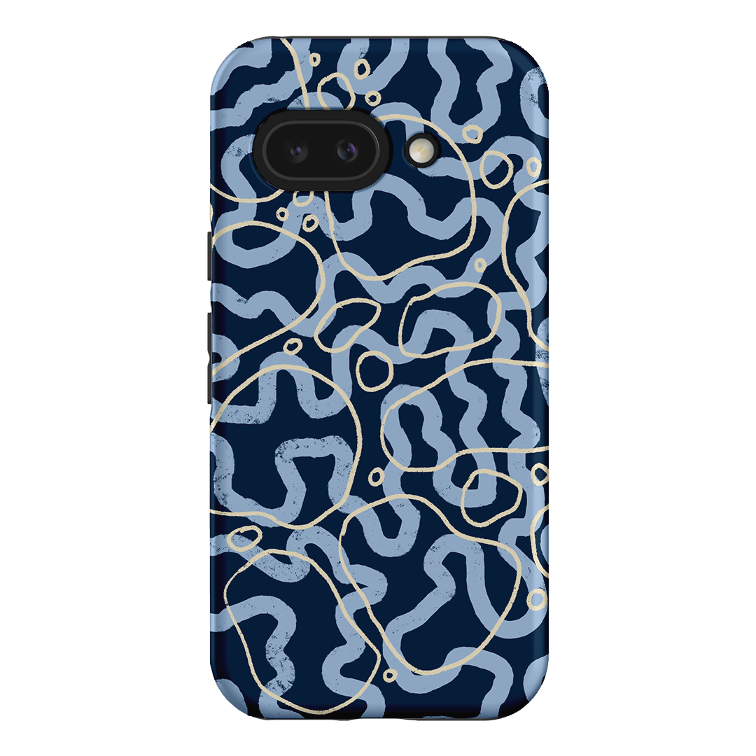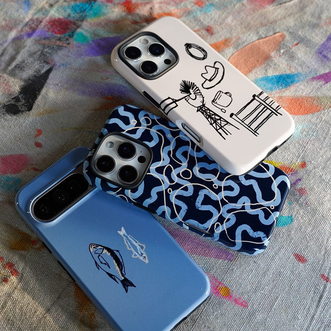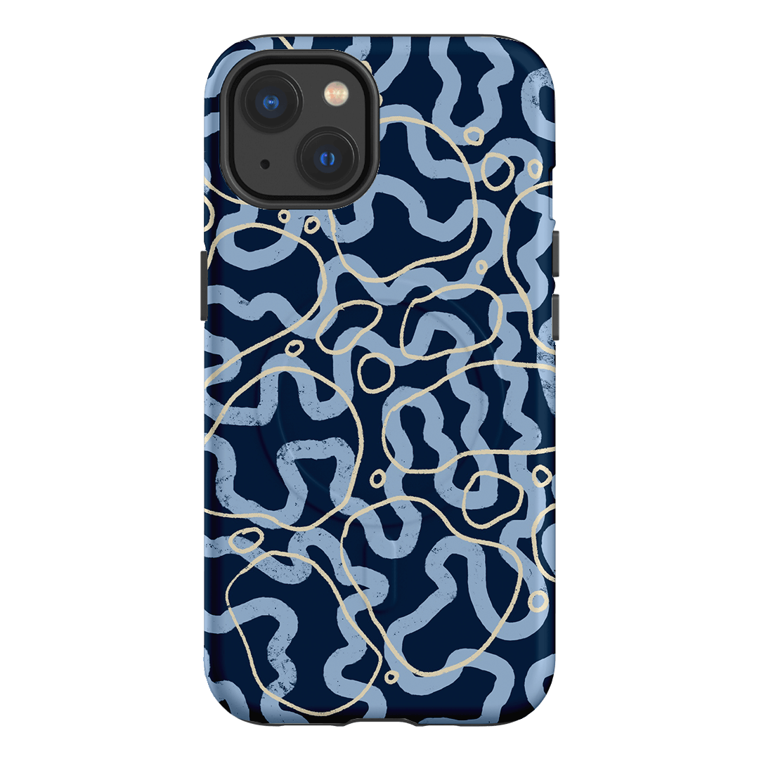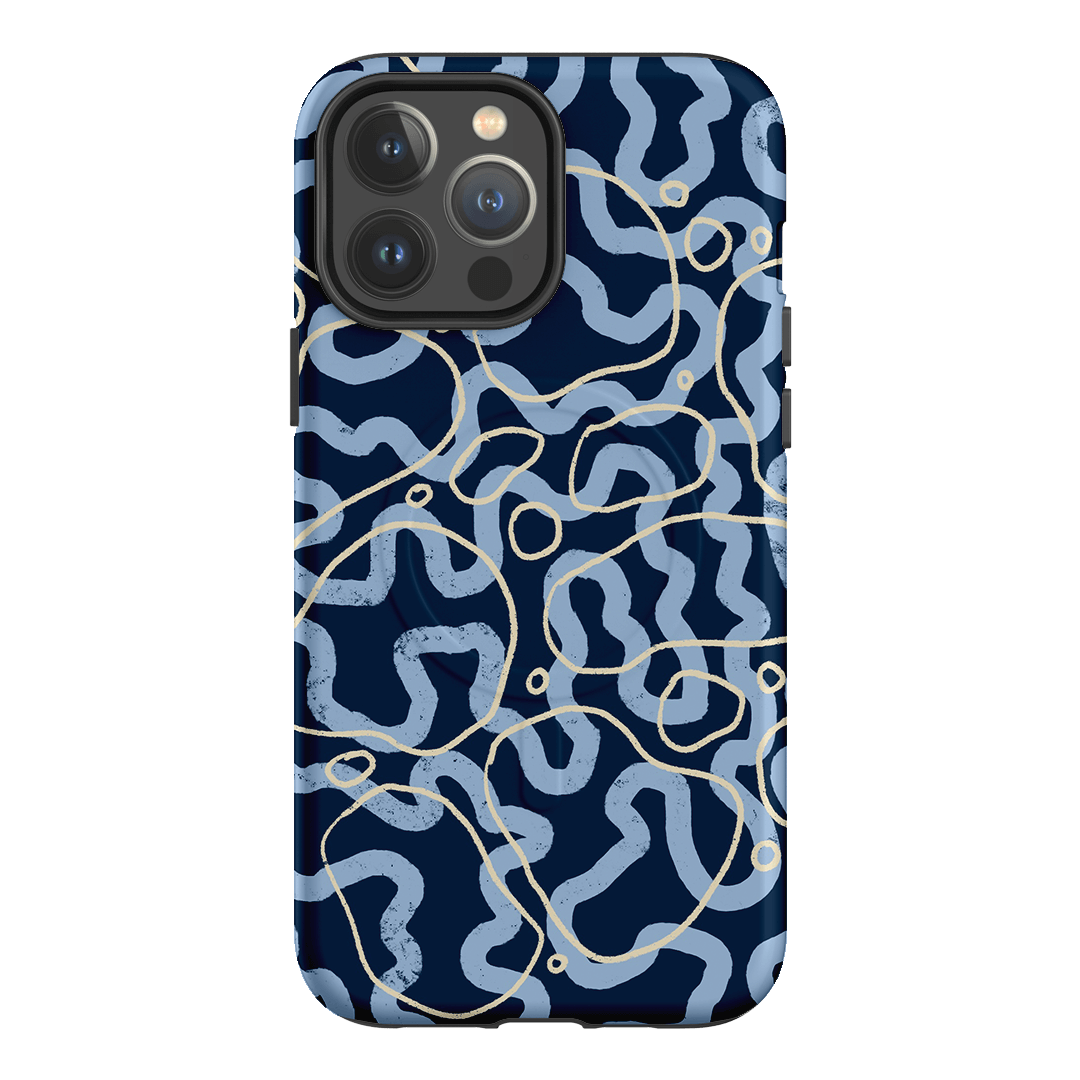 Protect your phone in style with this stunning phone case featuring original artwork by Ryhia Dank. This captivating design blends dark and light blue abstract lines and shapes, representing the harmonious meeting of saltwater and freshwater. Cream-thin line details add a delicate touch, enhancing the flowing composition that evokes the beauty of nature's contrasts.