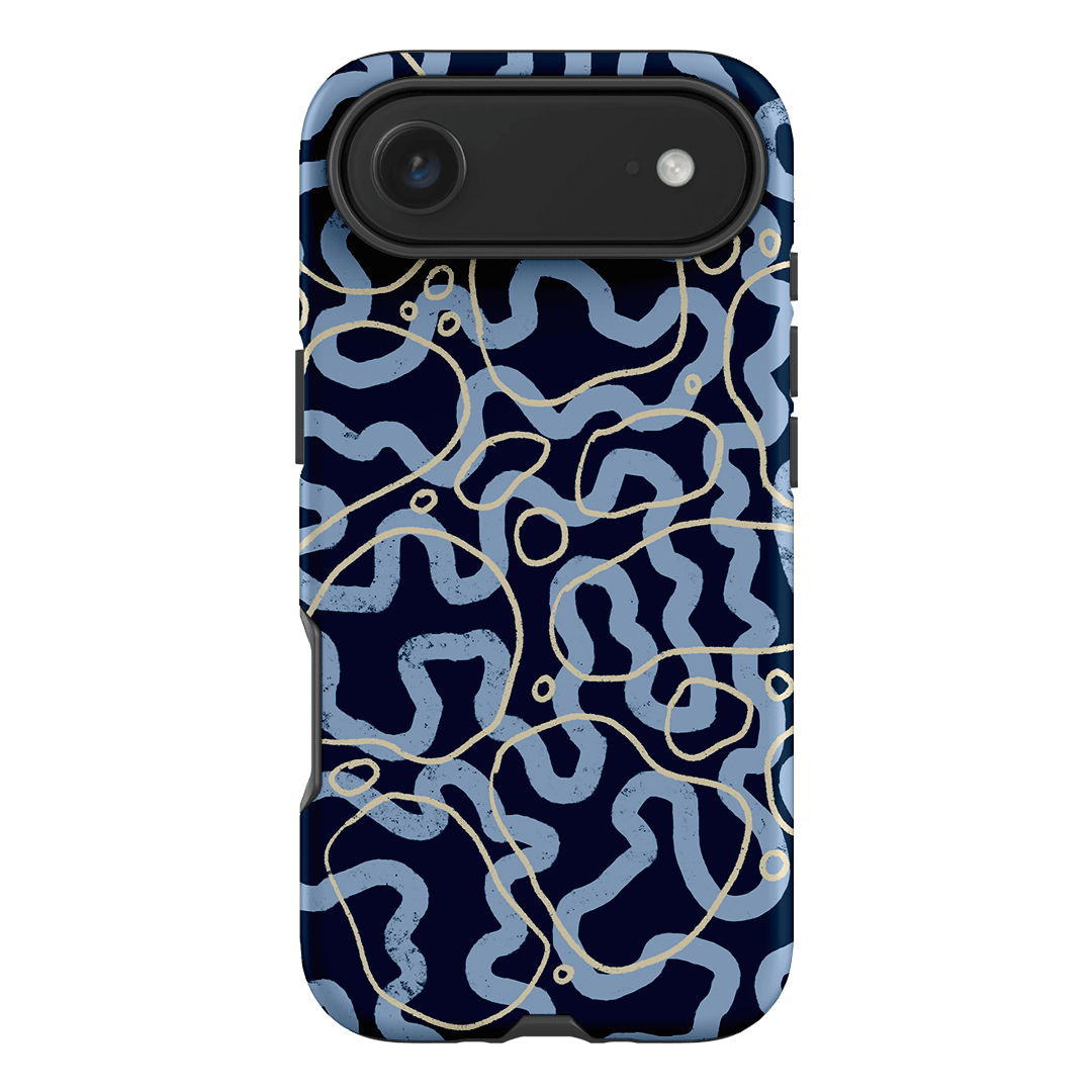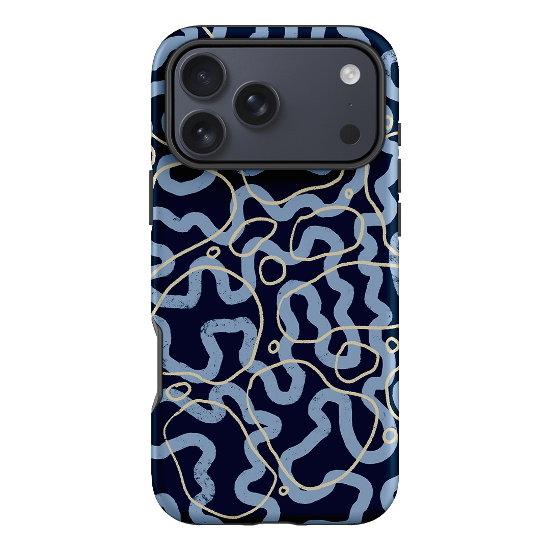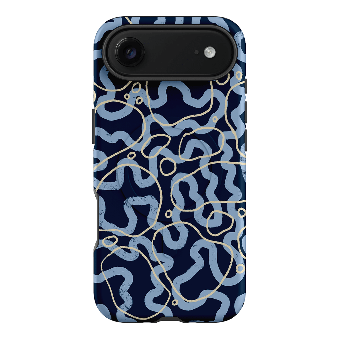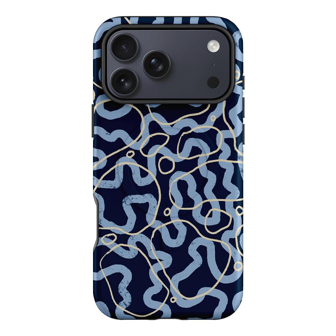 Protect your phone in style with this stunning phone case featuring original artwork by Ryhia Dank. This captivating design blends dark and light blue abstract lines and shapes, representing the harmonious meeting of saltwater and freshwater. Cream-thin line details add a delicate touch, enhancing the flowing composition that evokes the beauty of nature's contrasts.